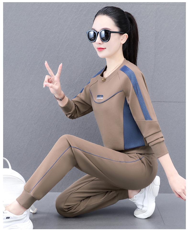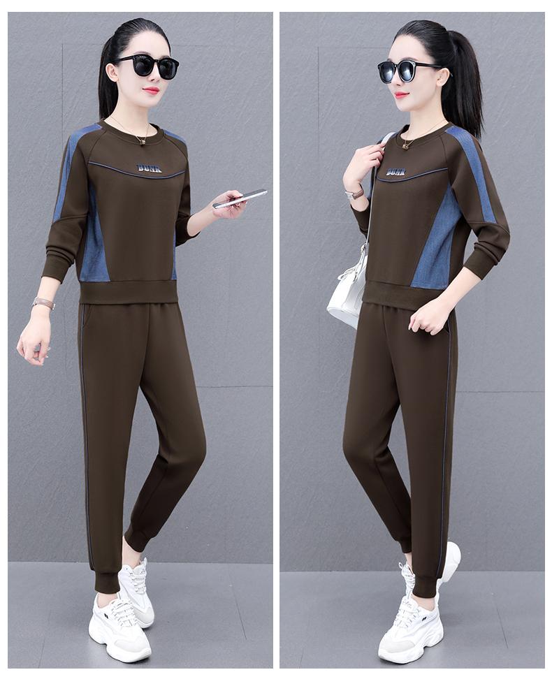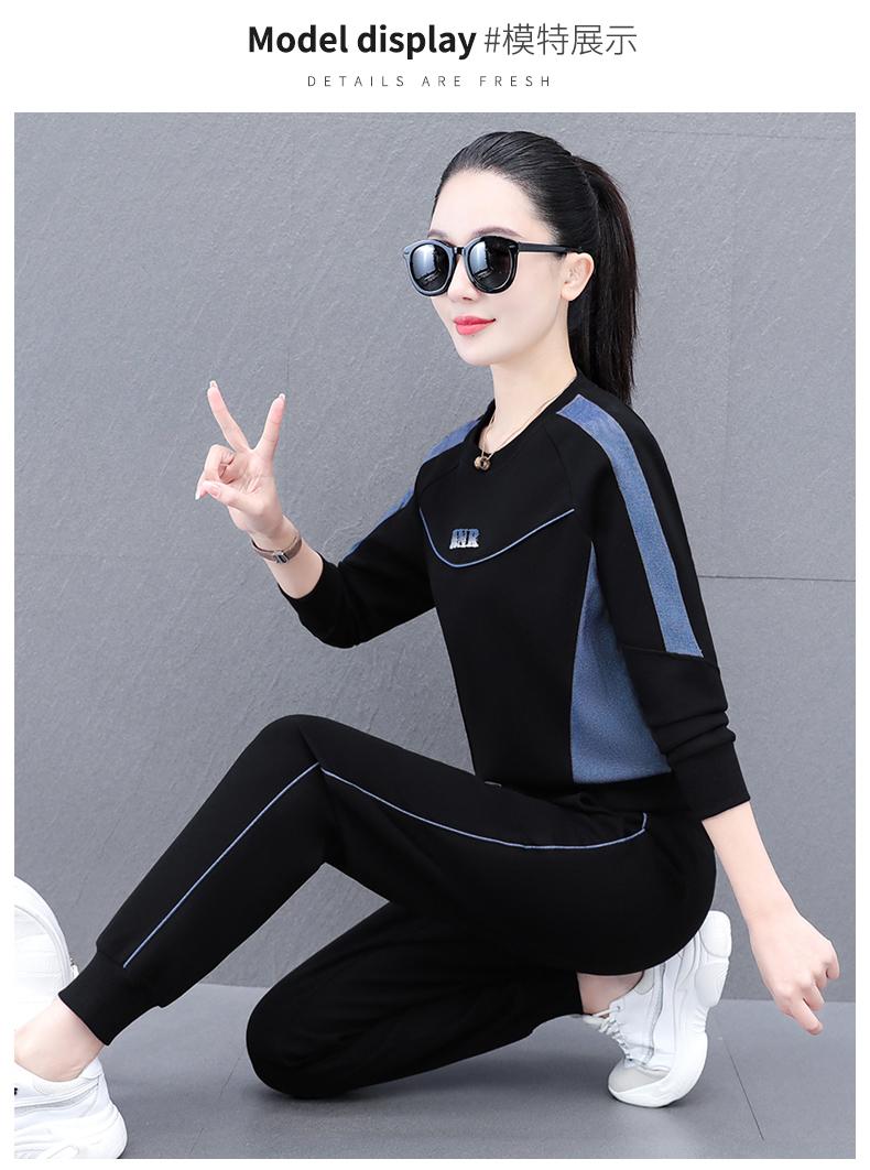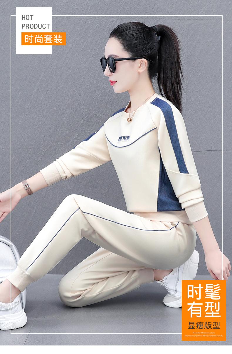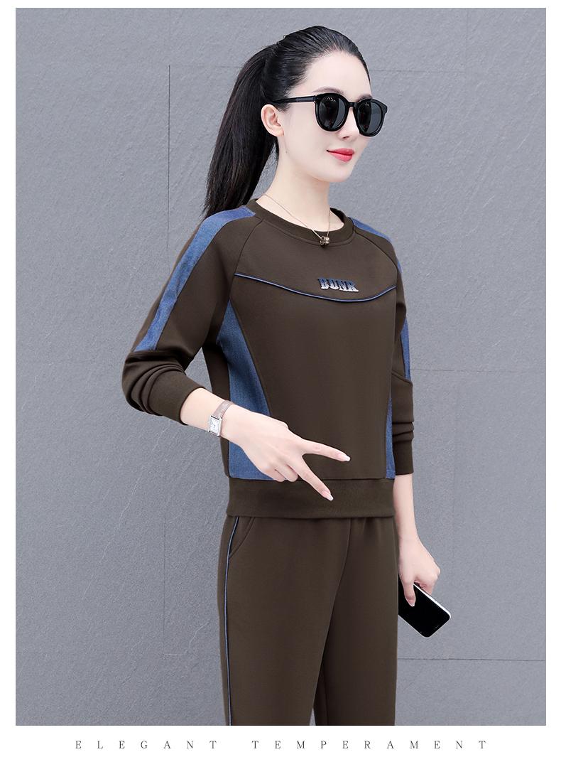 Traje deportivo de ocio Primavera y Otoño Estilo occidental Reductor de edad Suelto Perezoso Cuello redondo Sudadera Traje de running de alta gama Conjunto de dos piezas