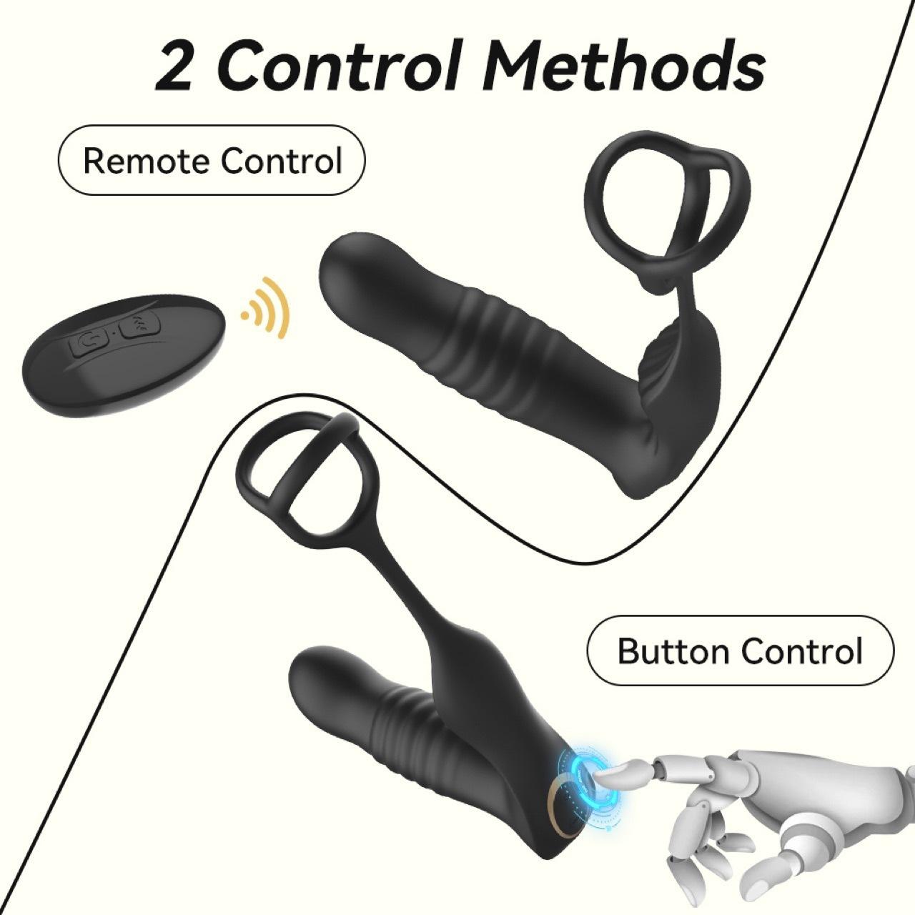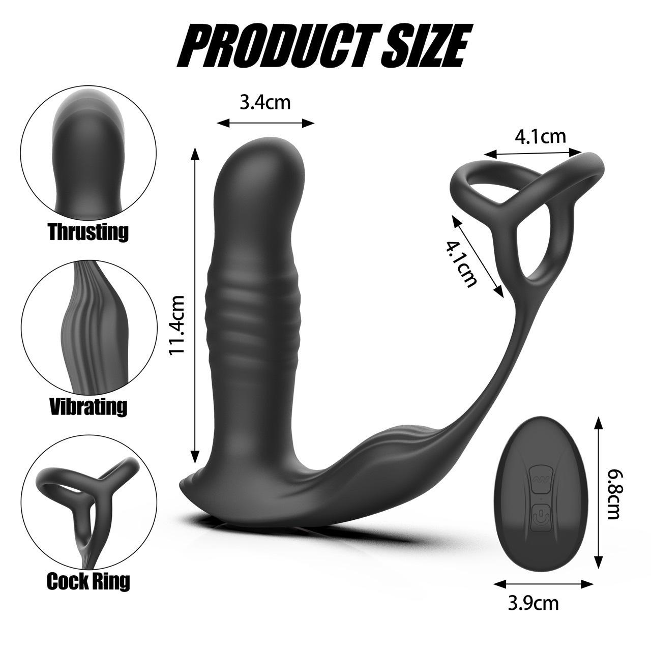 Plug Anal Telescópico de Tres Anillos, Masajeador de Próstata, Dispositivo de Masturbación Masculina, Juguete Sexual para Adultos, Anillo Vibratorio para Bloquear el Semen