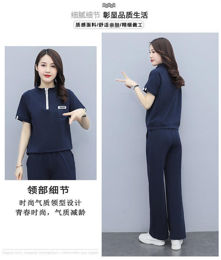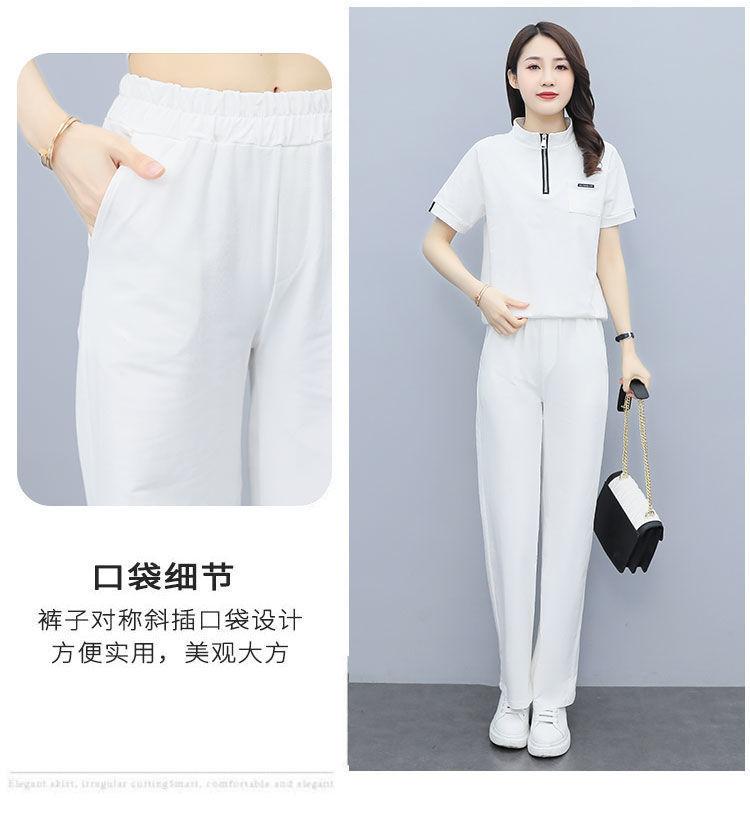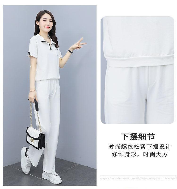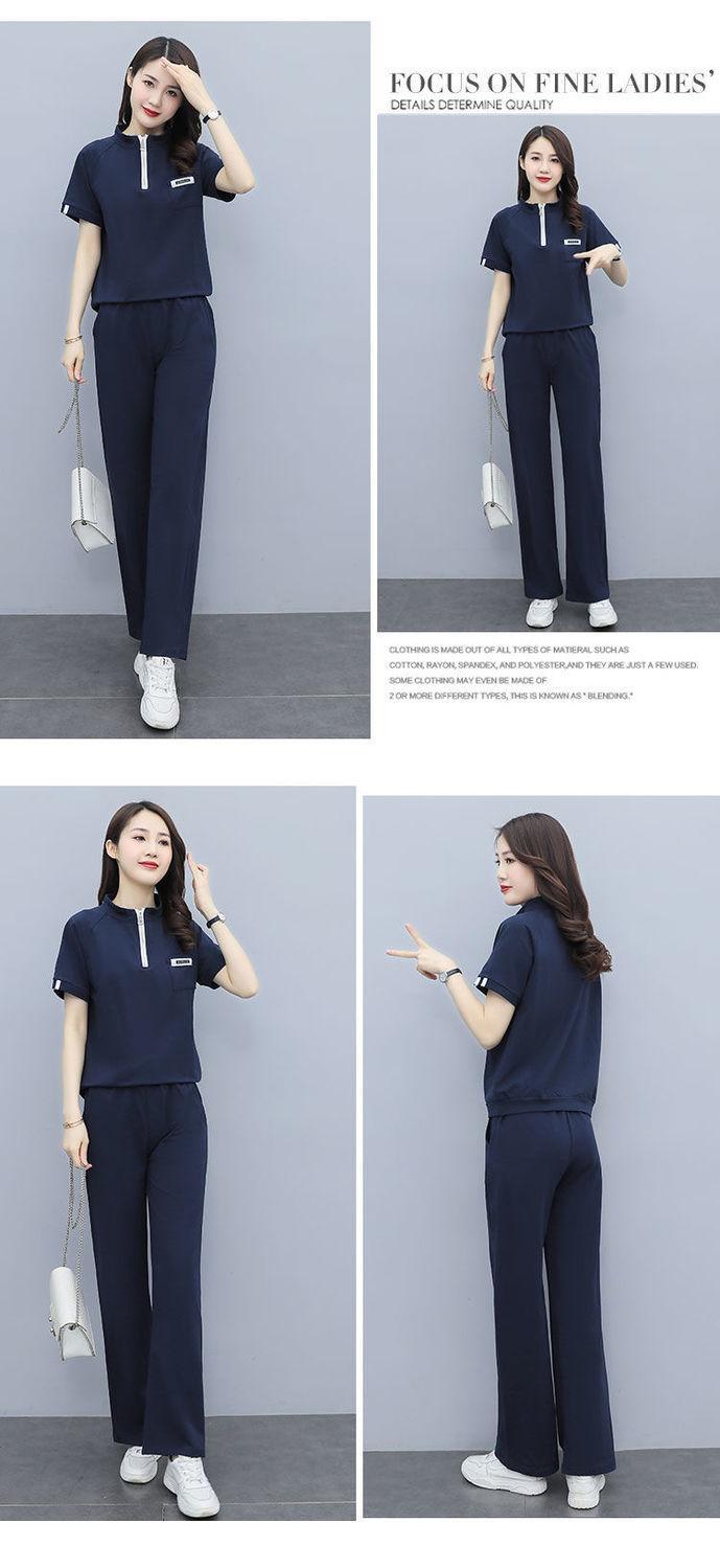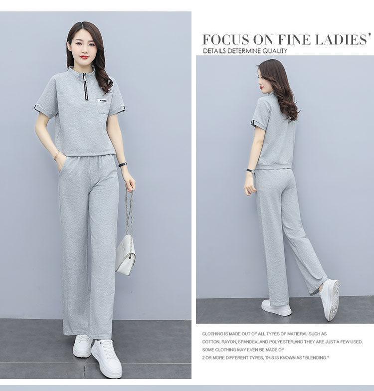 Traje Casual para Mujer Verano Manga Corta Nuevo Moderno para Mujer Trendy Pantalones Anchos Sueltos Ropa Deportiva Conjunto de Dos Piezas