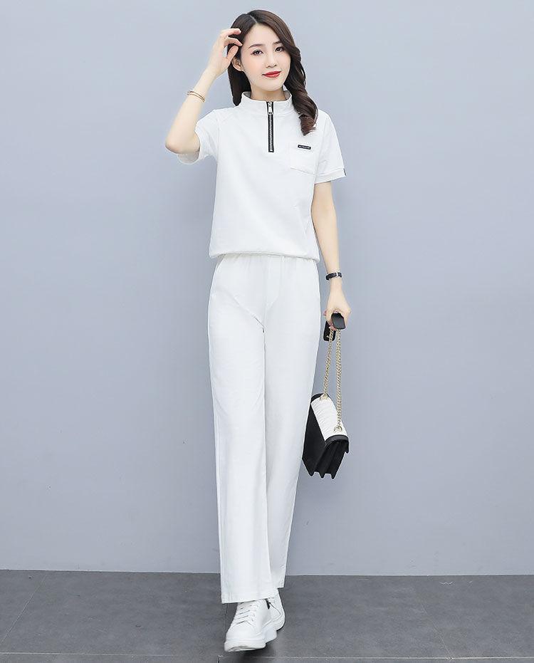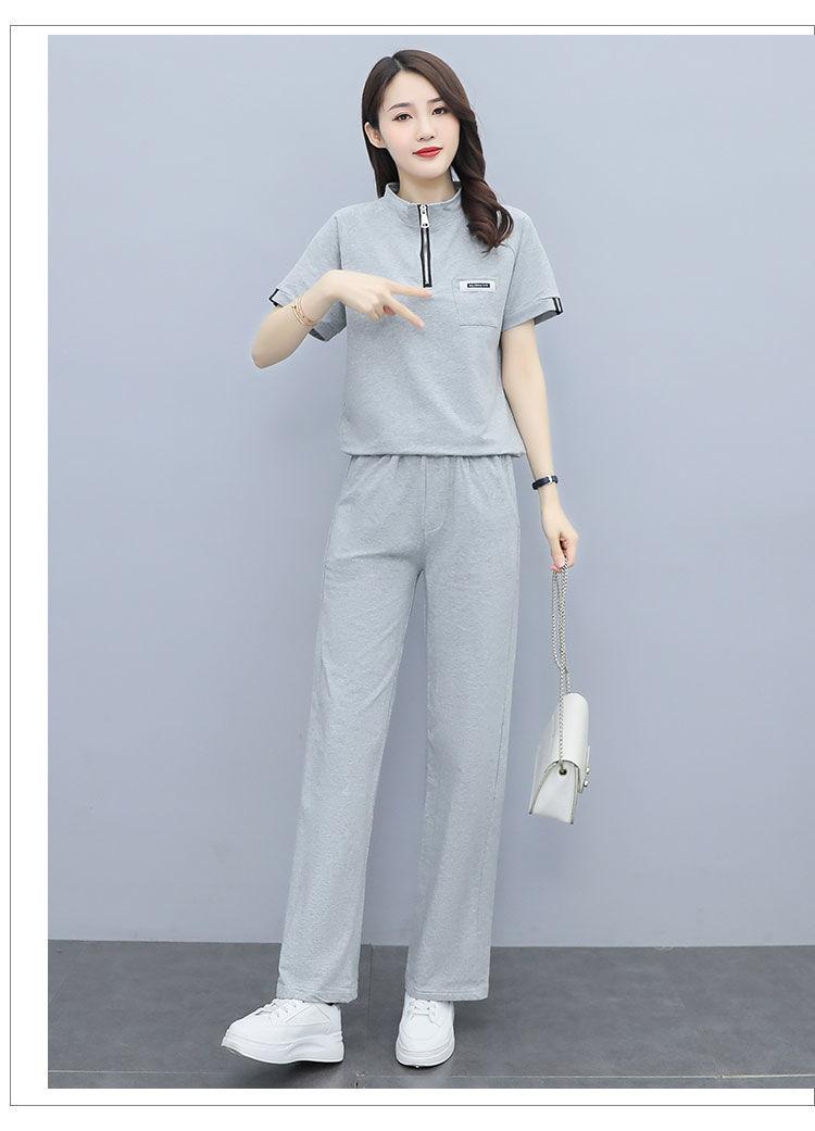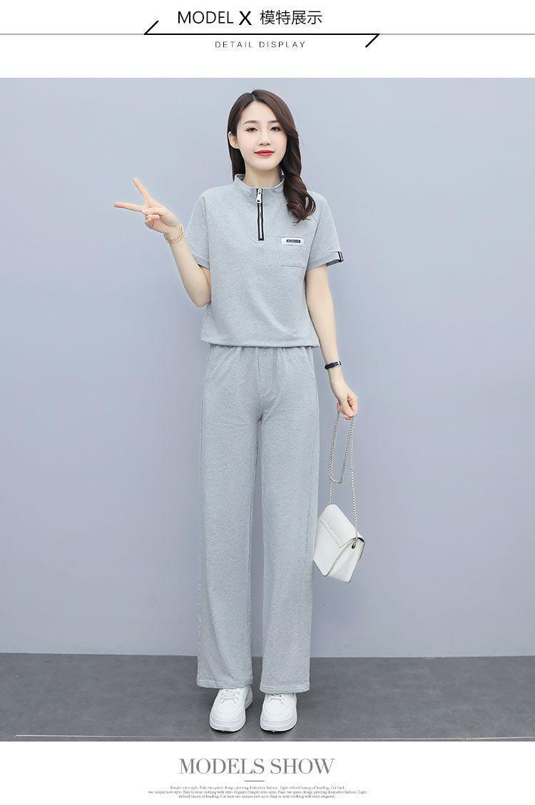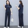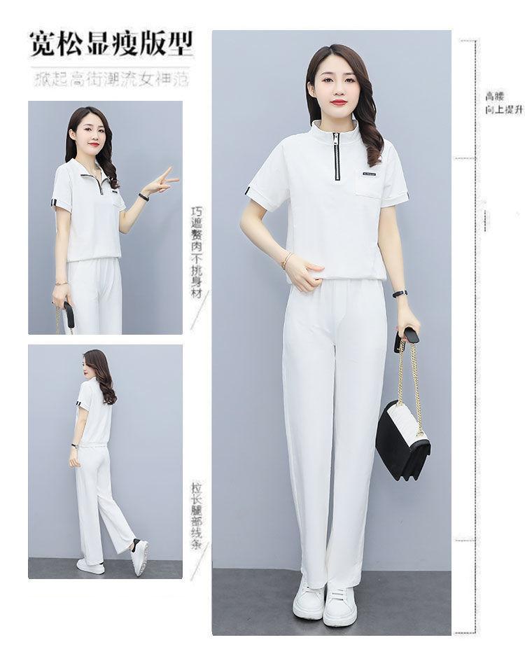 Traje Casual para Mujer Verano Manga Corta Nuevo Moderno para Mujer Trendy Pantalones Anchos Sueltos Ropa Deportiva Conjunto de Dos Piezas