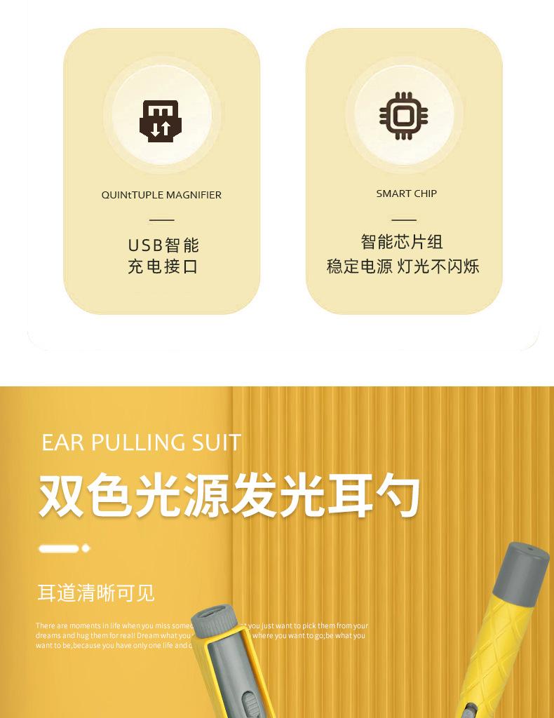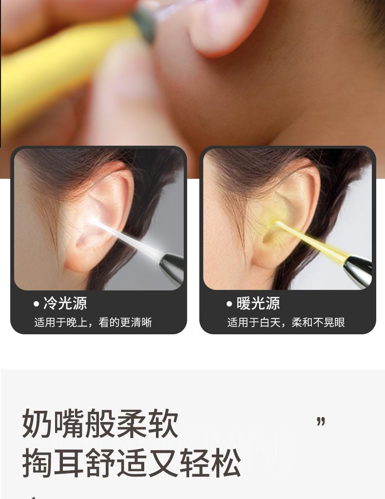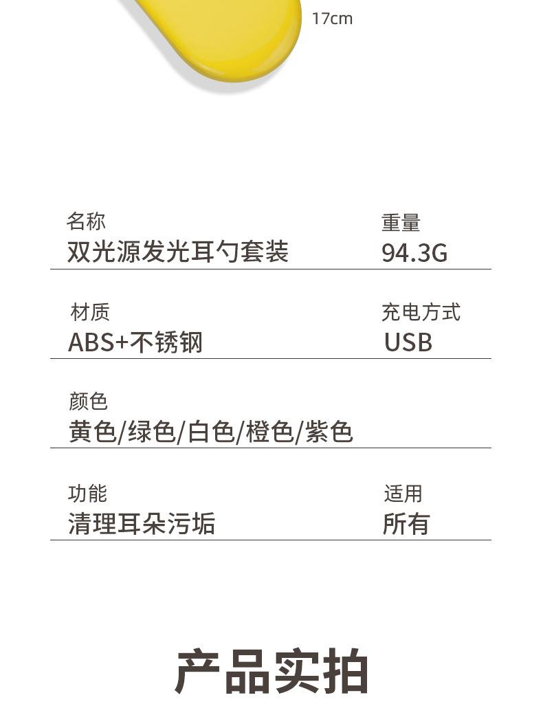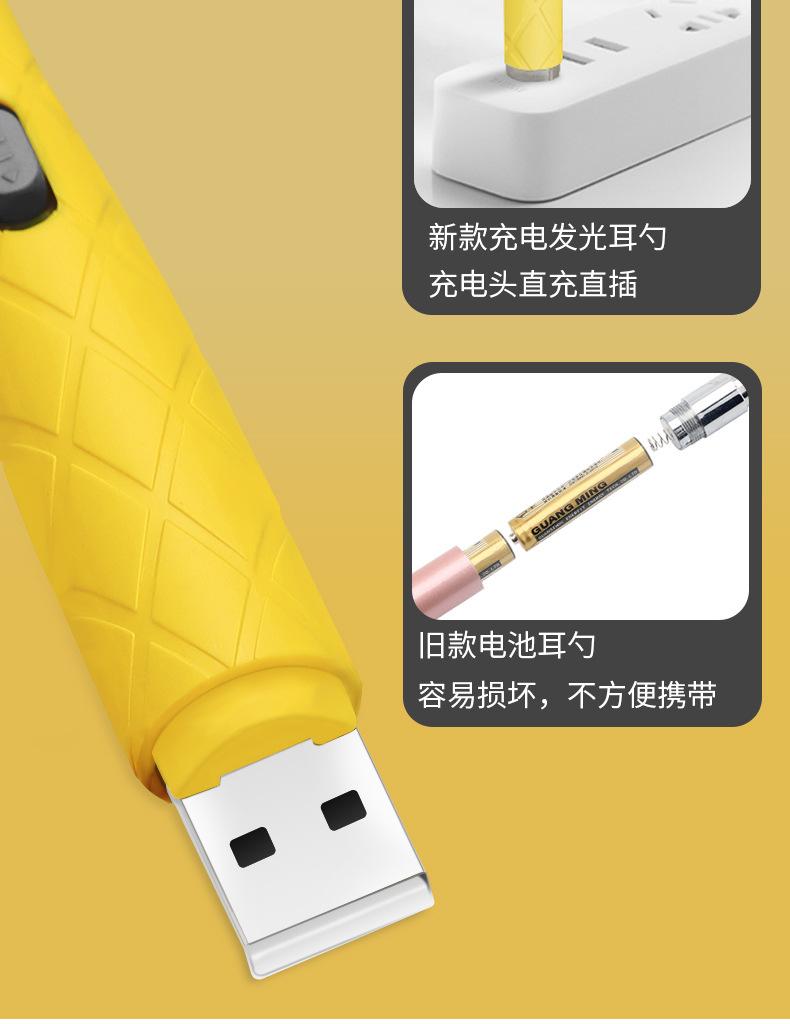 Cucharilla para Oídos Luminosa con Luz de Dos Colores Inalámbrica USB Cucharilla para Oídos para Niños Herramienta Visible para la Limpieza de Oídos