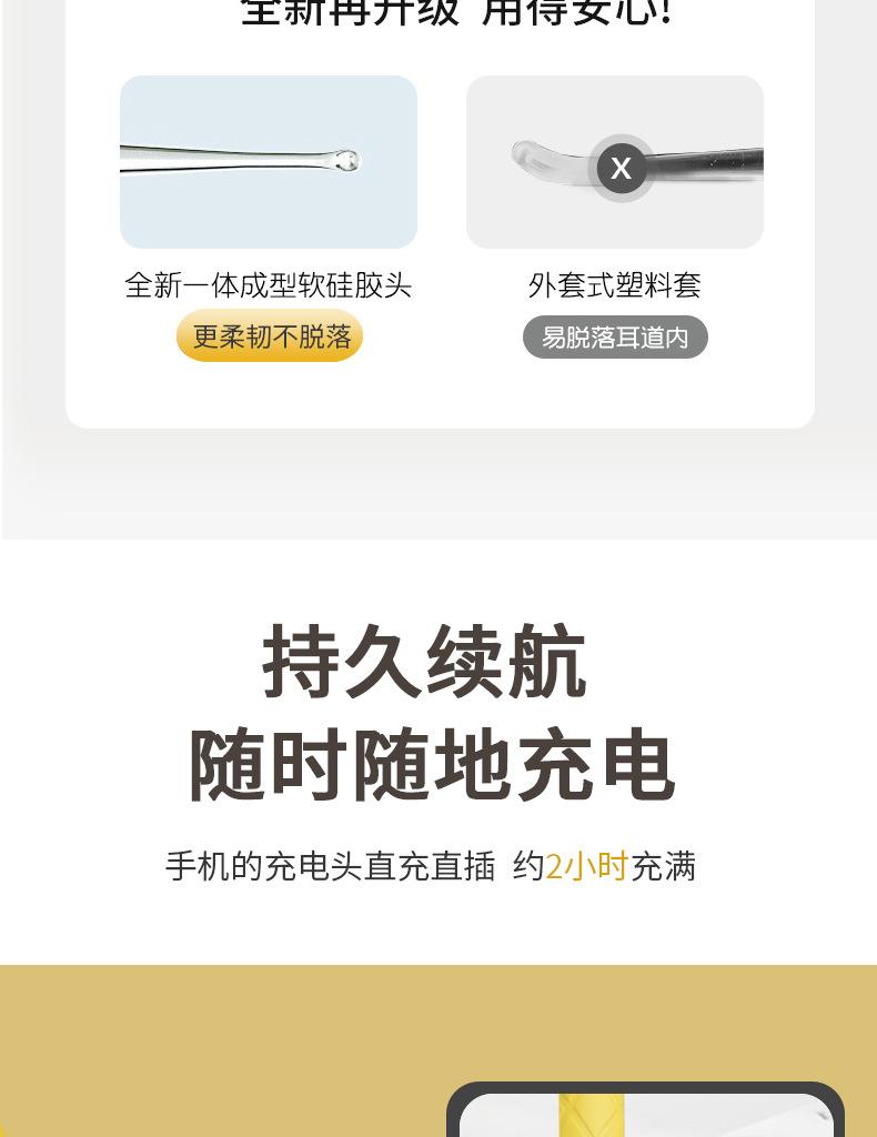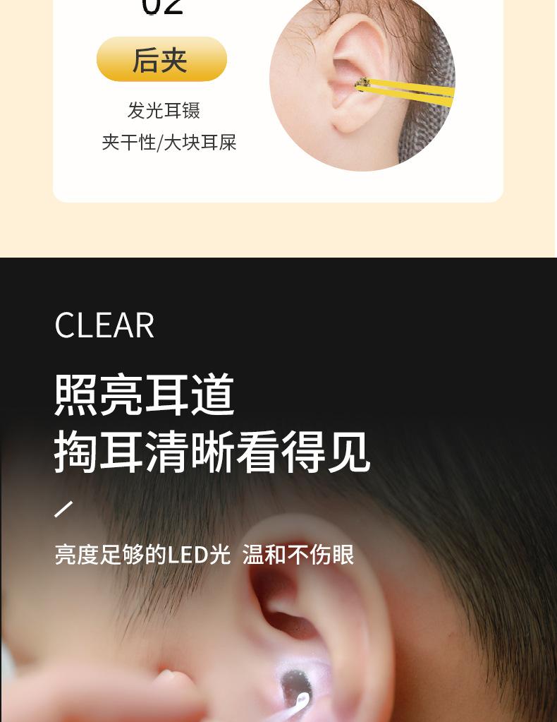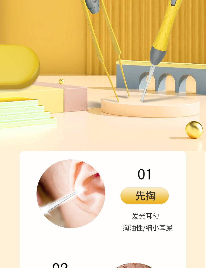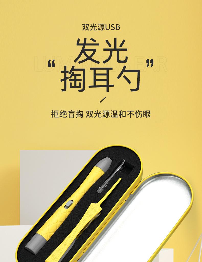 Cucharilla para Oídos Luminosa con Luz de Dos Colores Inalámbrica USB Cucharilla para Oídos para Niños Herramienta Visible para la Limpieza de Oídos
