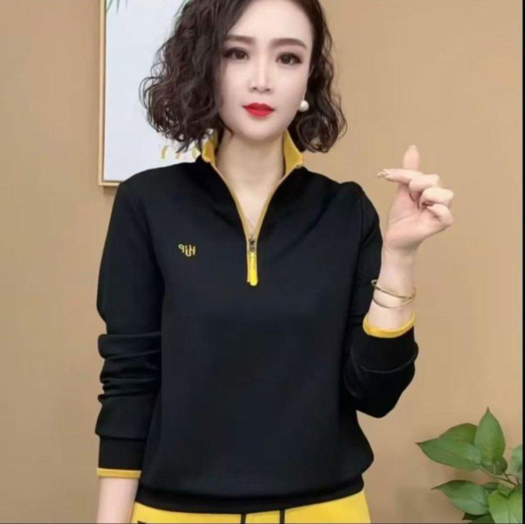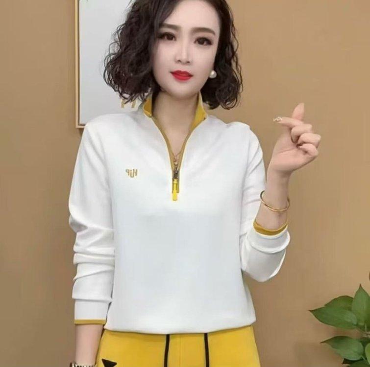 En Vivo Primavera 2025 Nueva Moda Versátil Ajustado Adelgazante Diseño Sensorial Camiseta Elegante de Mujer con Media Cremallera