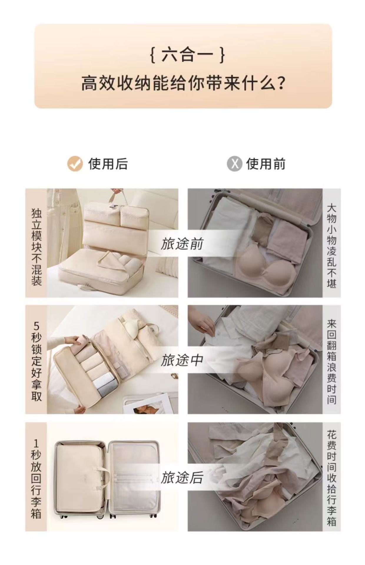 Bolsa de Almacenamiento de Viaje, Maleta de Ropa Multifuncional, Bolsa Organizadora Seis en Uno