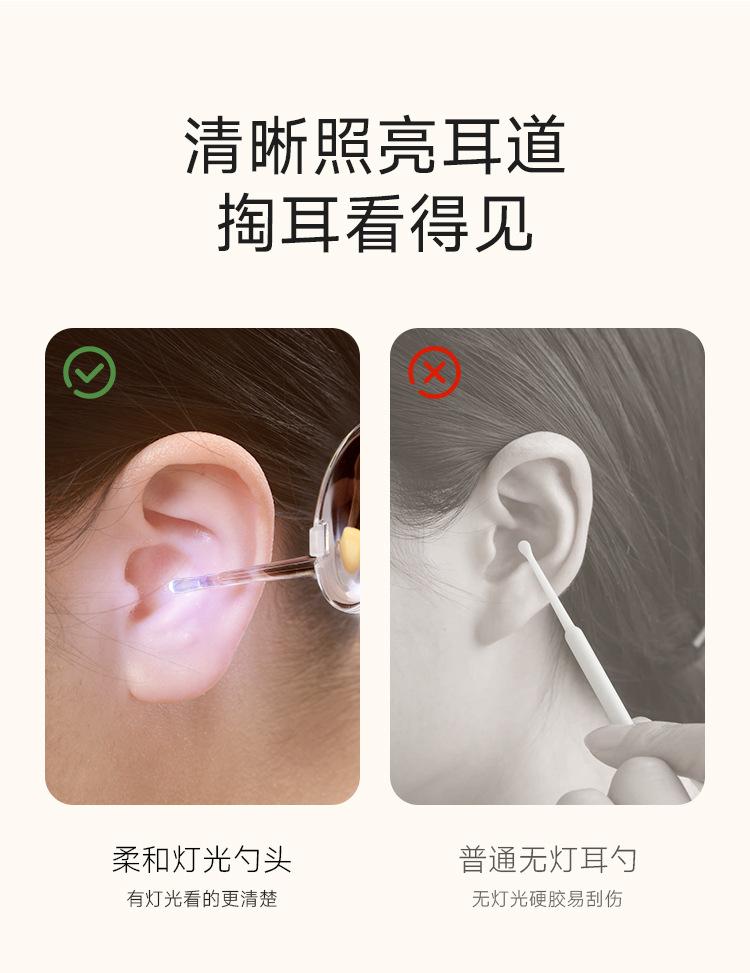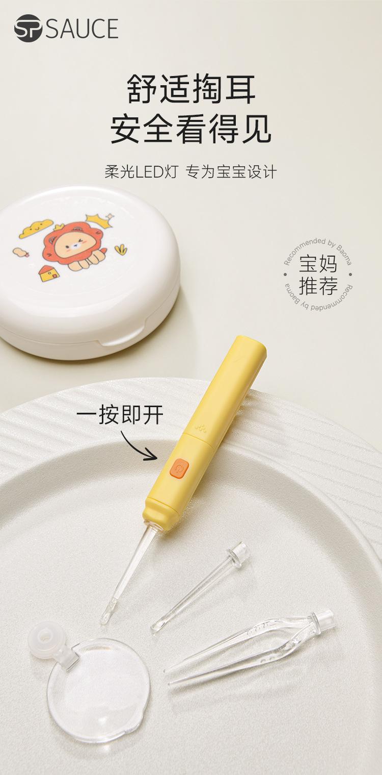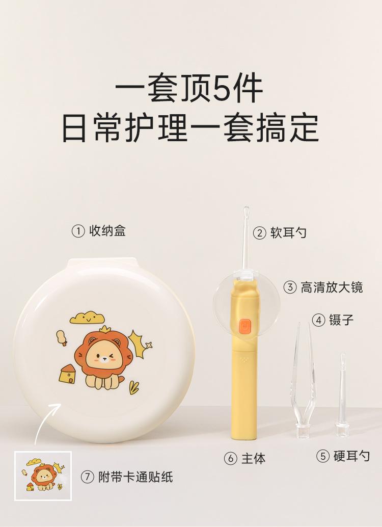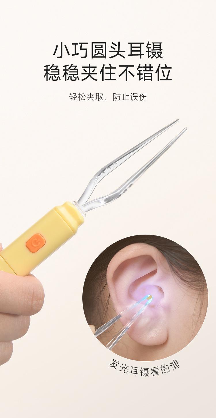 Cucharilla luminosa para oídos de niños con pinzas de lupa, juego de cinco piezas almacenables, herramienta para limpiar oídos de bebé, cucharilla visual para oídos