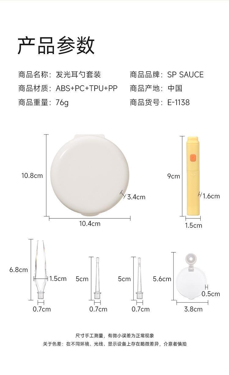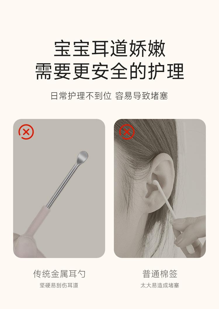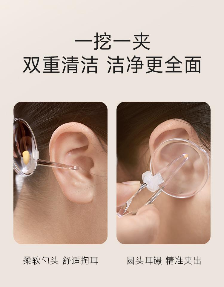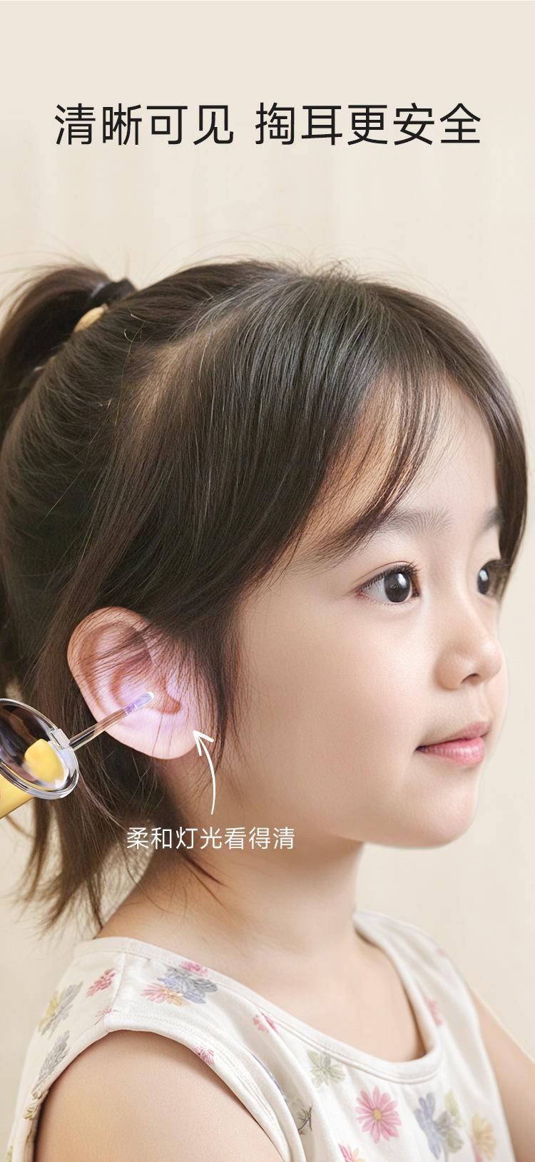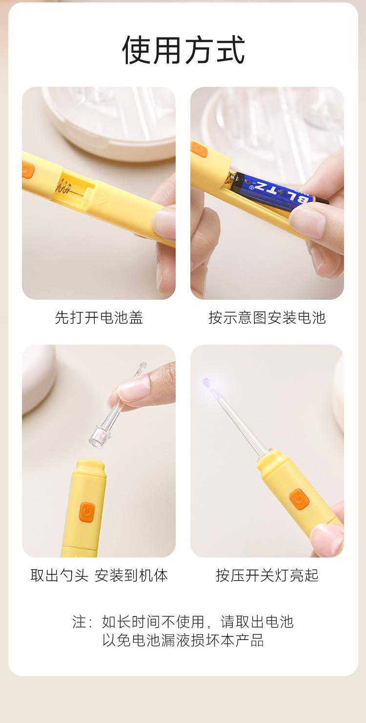 Cucharilla luminosa para oídos de niños con pinzas de lupa, juego de cinco piezas almacenables, herramienta para limpiar oídos de bebé, cucharilla visual para oídos