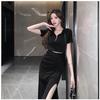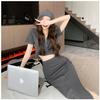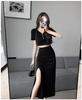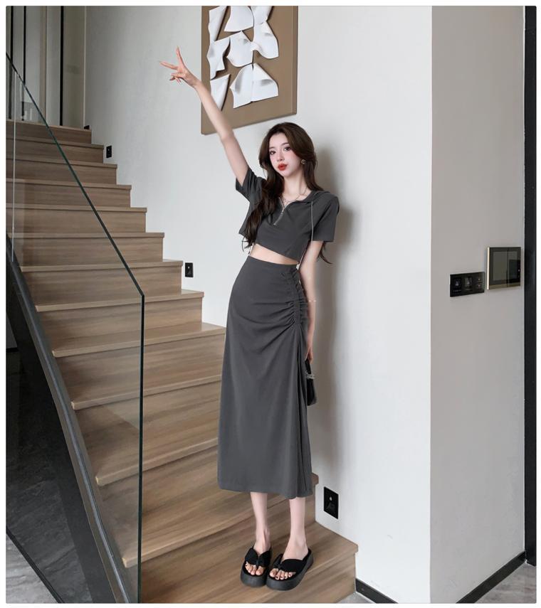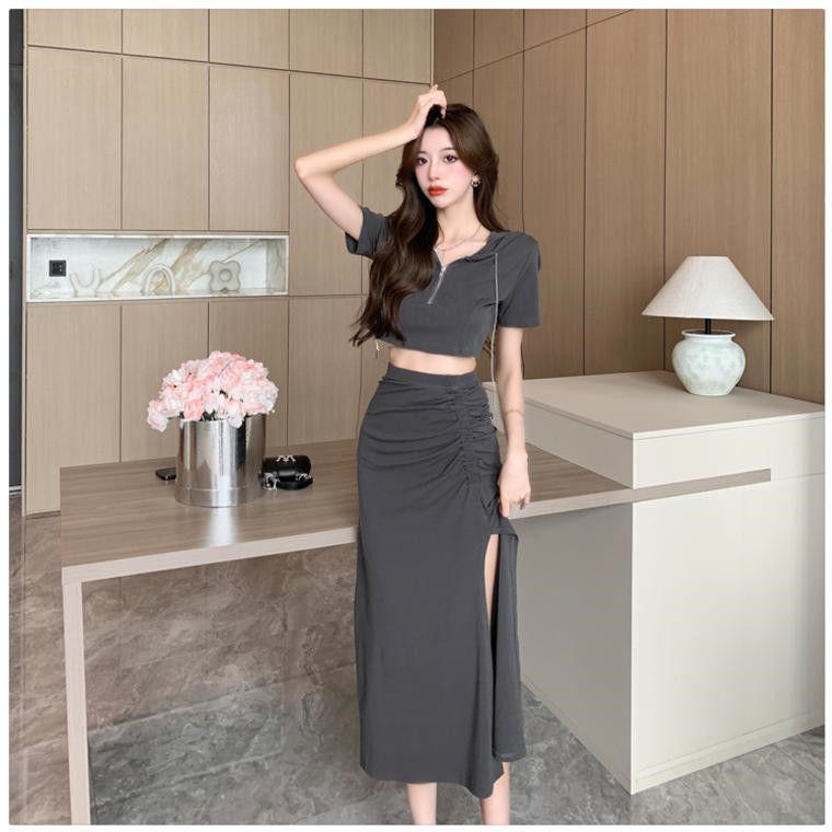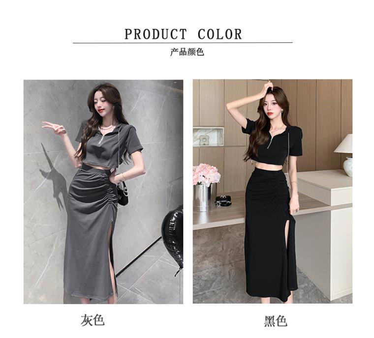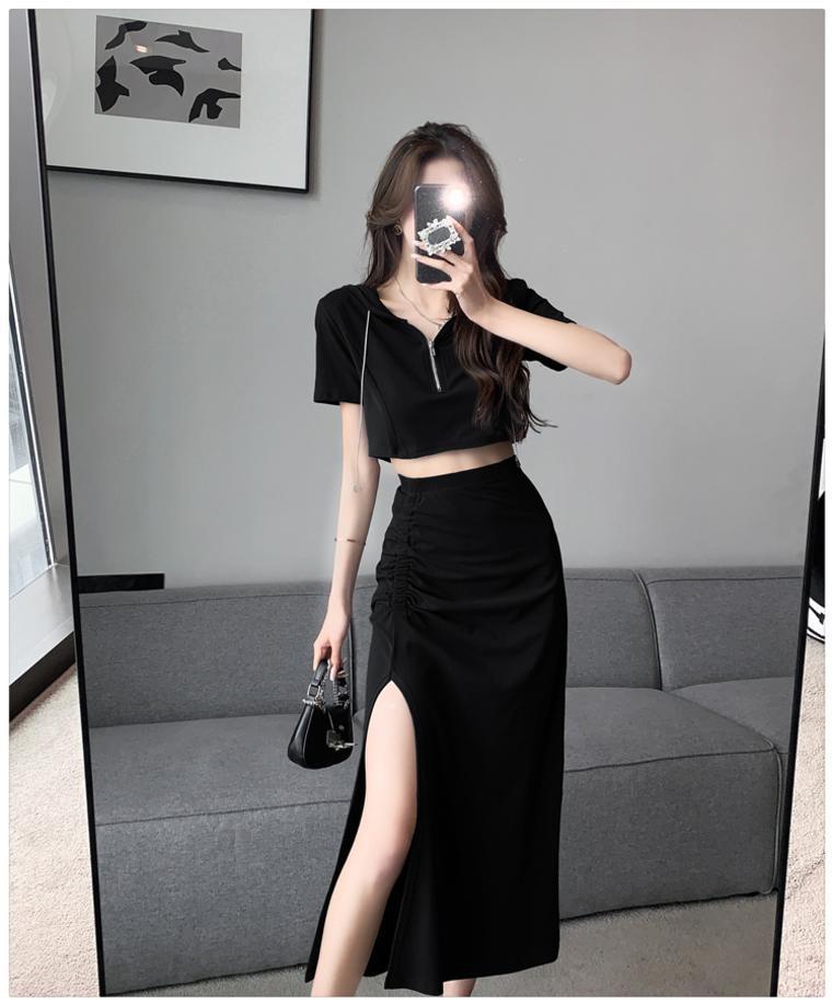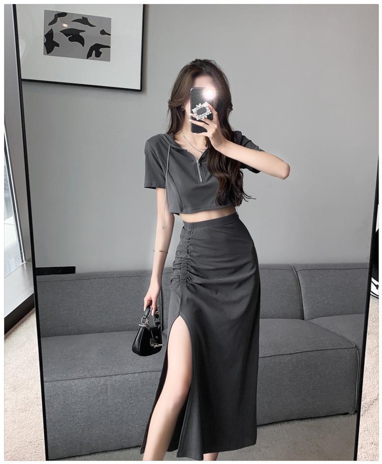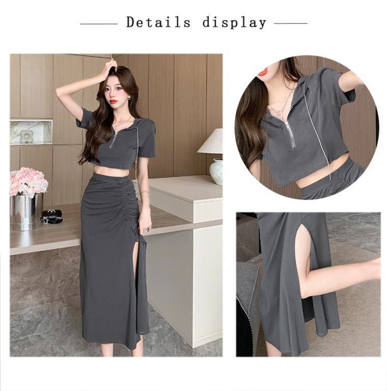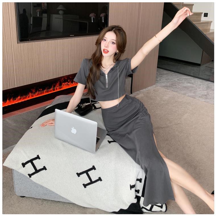 Nuevo Traje de Verano para Mujer Dulce Francés Hottie Deseo Puro con Capucha Manga Corta Celebridad de Internet Falda con Abertura Conjunto de Dos Piezas a la Moda