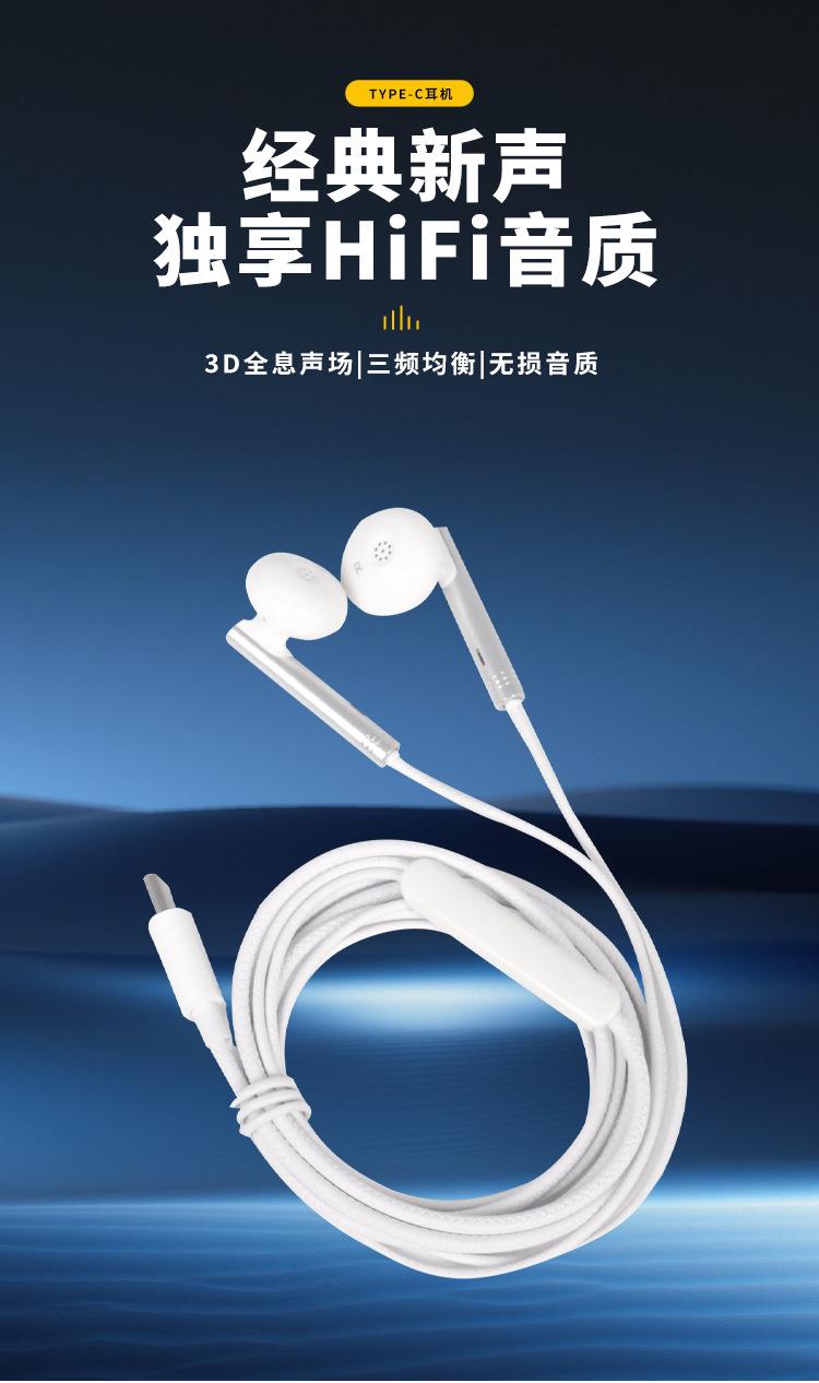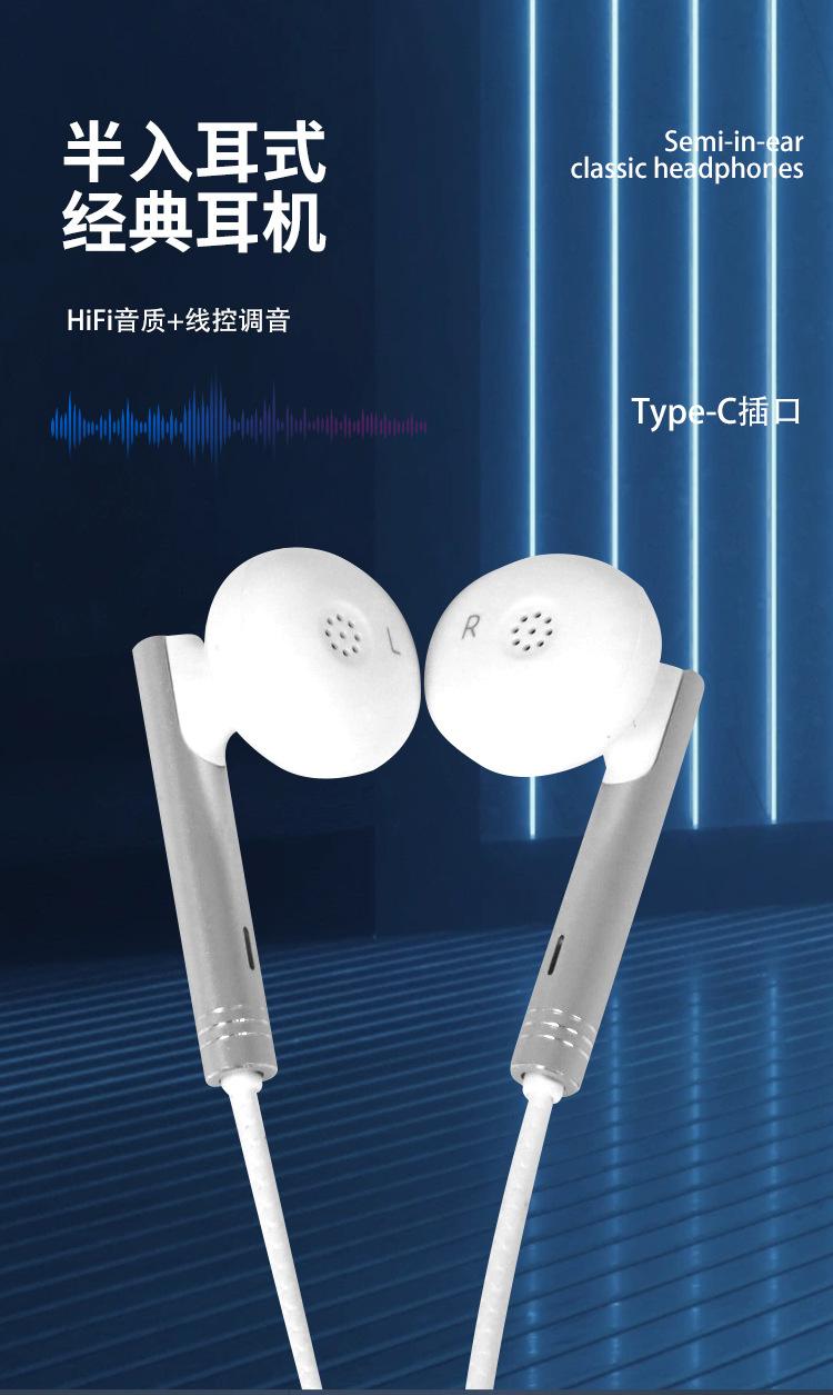 Audífonos clásicos tipo C universales con control por cable, audífonos semi-in-ear con cable, calidad de sonido de alta calidad en stock al por mayor
