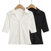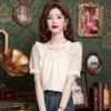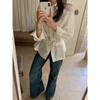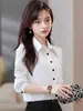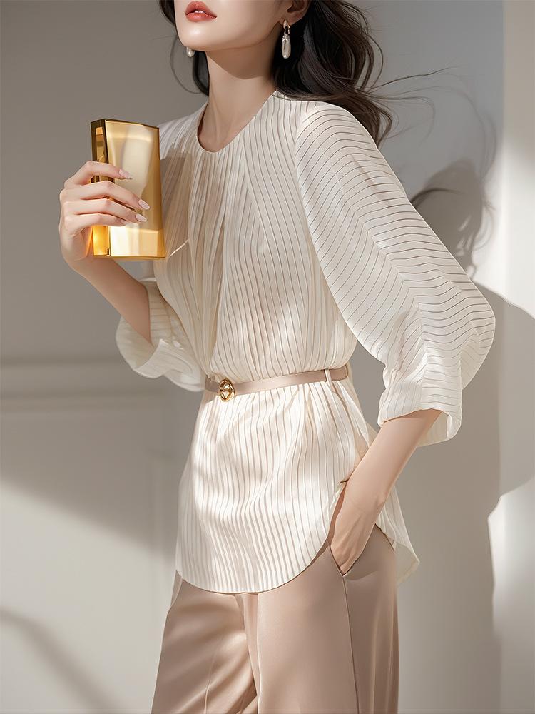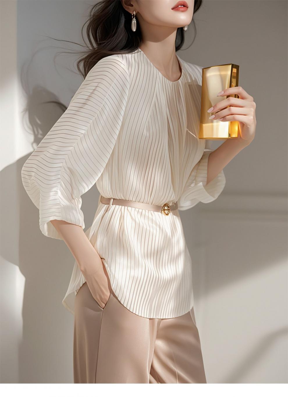 Nuevo Otoño Temprano Camisa Pequeña Única Hermosa Temperamento Francés Top de Cintura Ajustada Camisa a Rayas Blancas de Lujo Ligero y Alta Gama para Verano