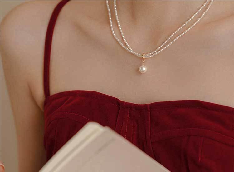 Collar Retro de Perlas Apiladas de Doble Capa para Mujer Lujo Accesible Nicho 2025 Nuevo Cadena de Clavícula de Alta Gama Collar Elegante para el Cuello