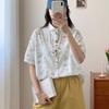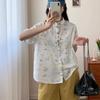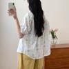 Verano Nuevo Estilo Fresco Estilo Universitario Dulce Camisa de Manga Corta con Estampado de Flores Suelta y Versátil Top Floral de Algodón