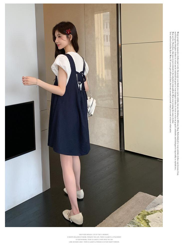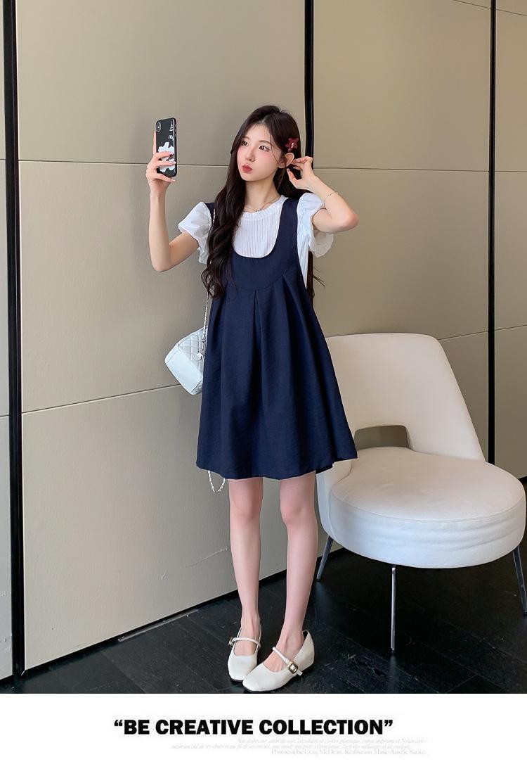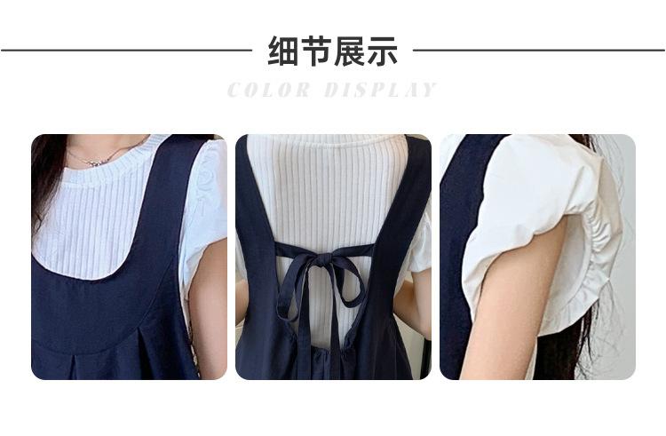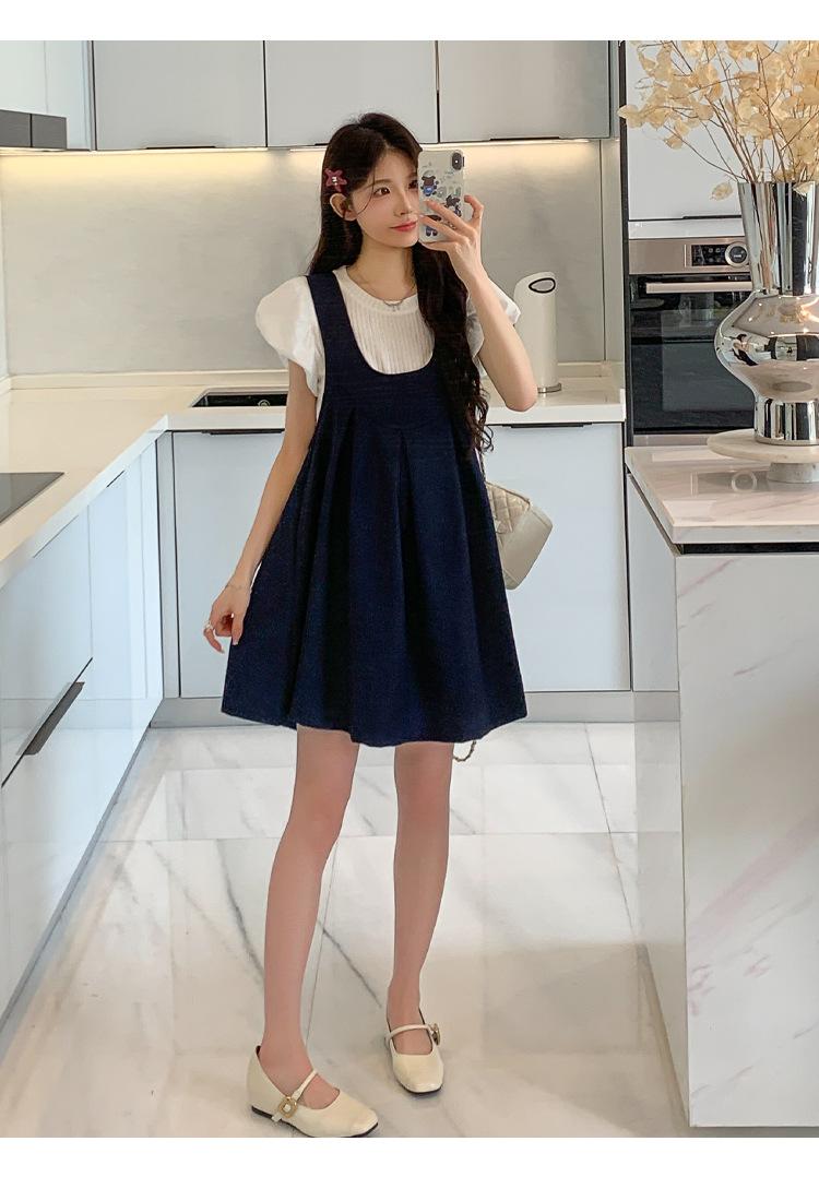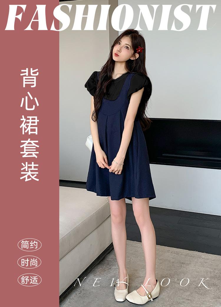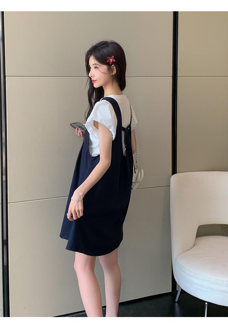 Traje de maternidad de verano 2025, nuevo, con falda de tirantes y mangas abullonadas, jersey de punto color hielo.