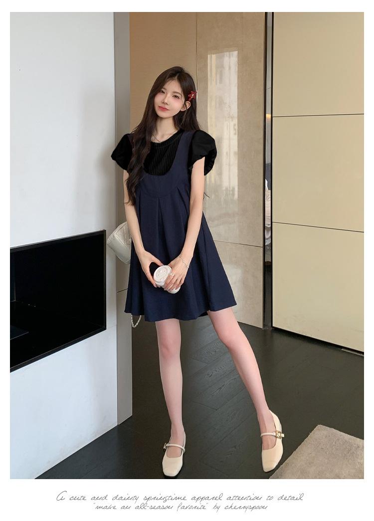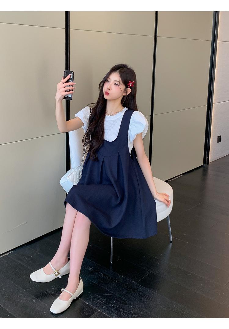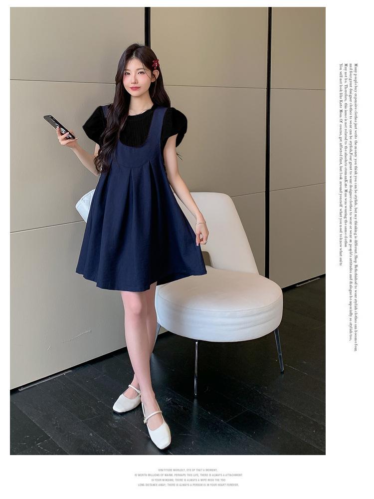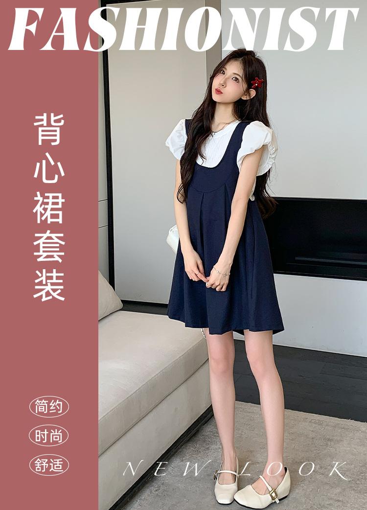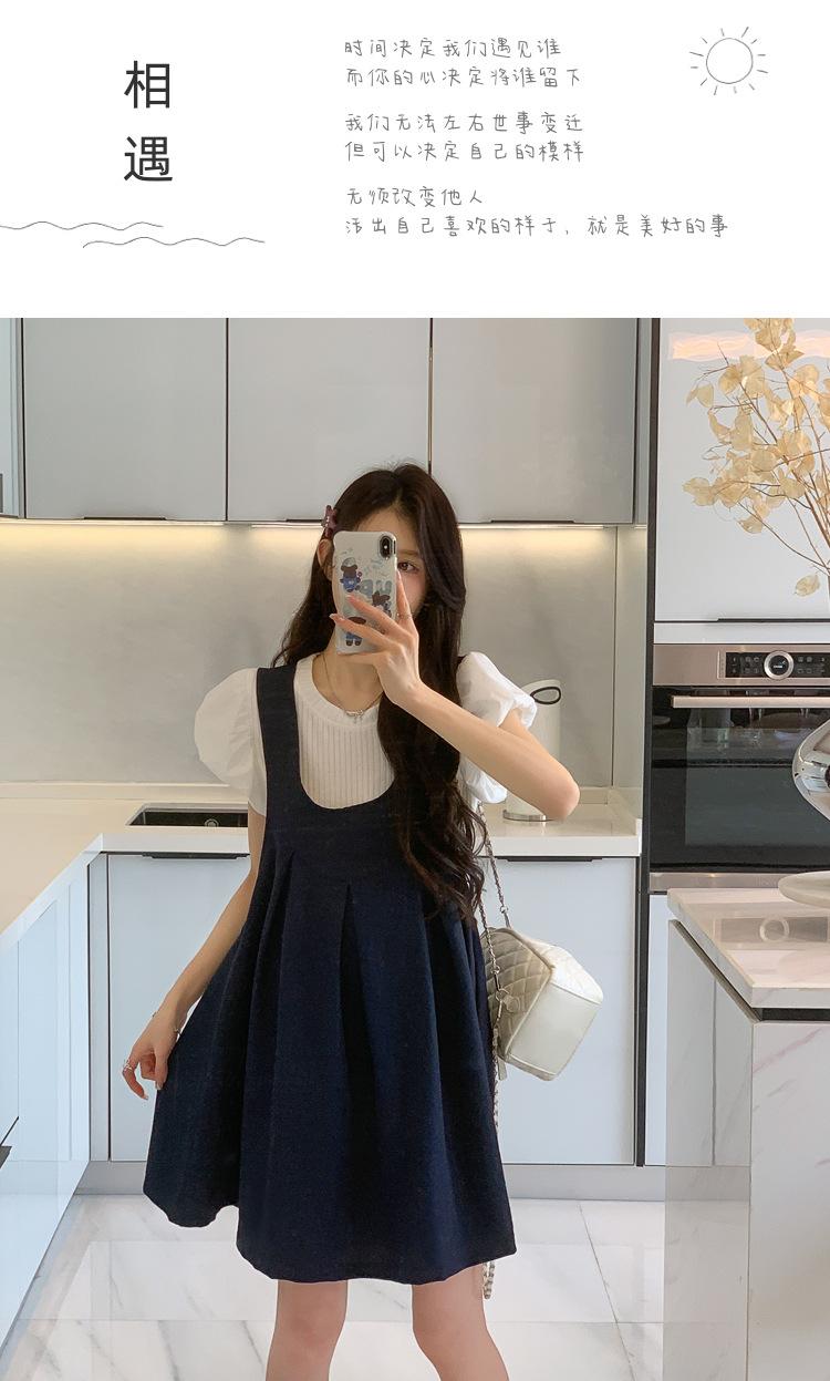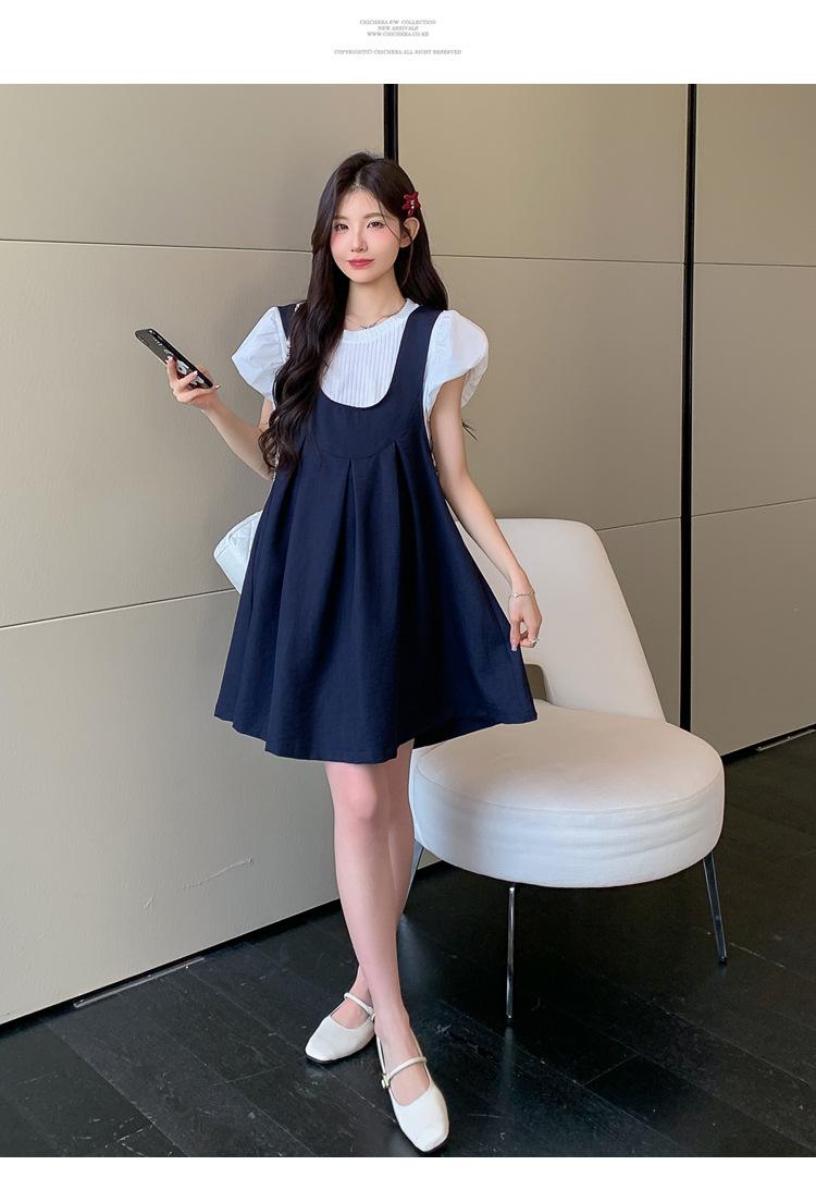 Traje de maternidad de verano 2025, nuevo, con falda de tirantes y mangas abullonadas, jersey de punto color hielo.