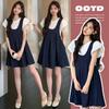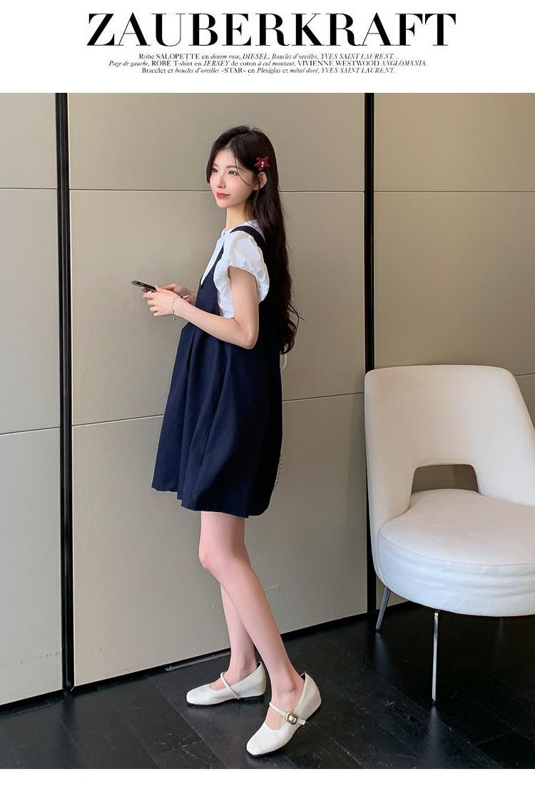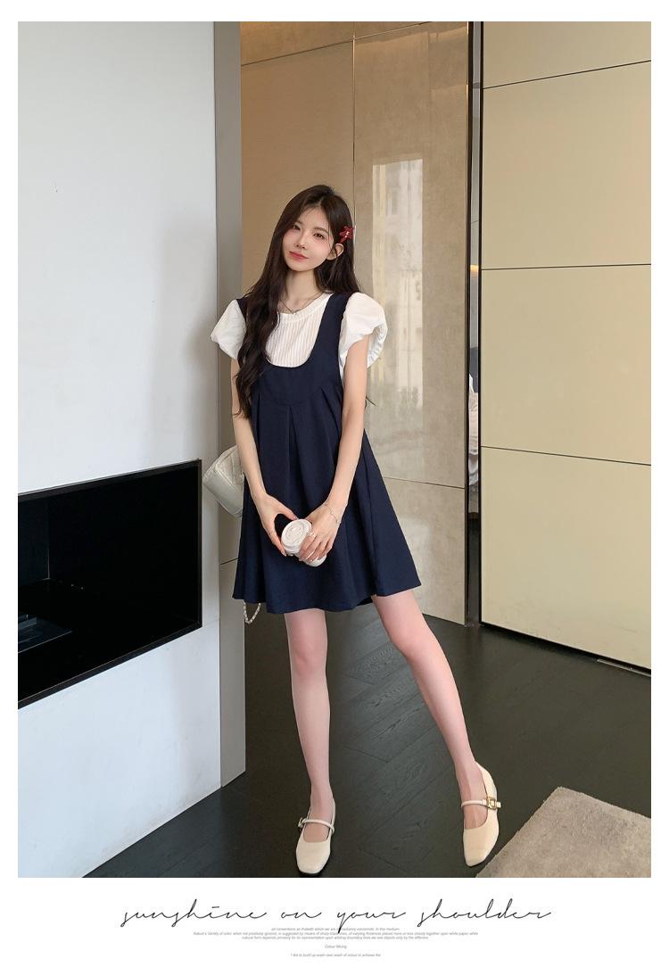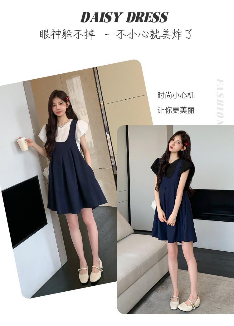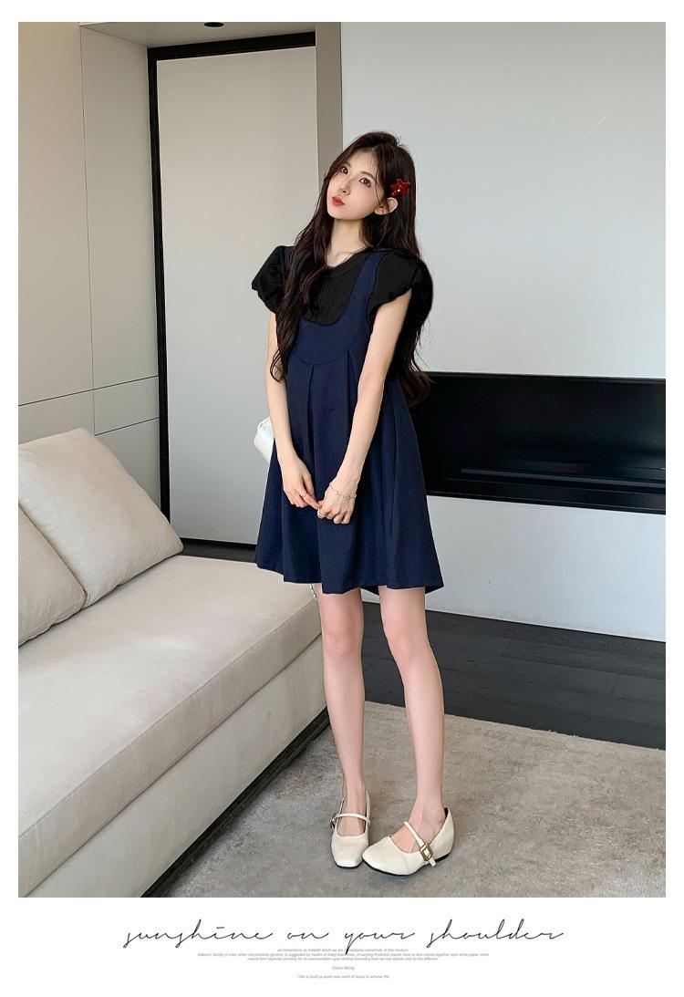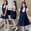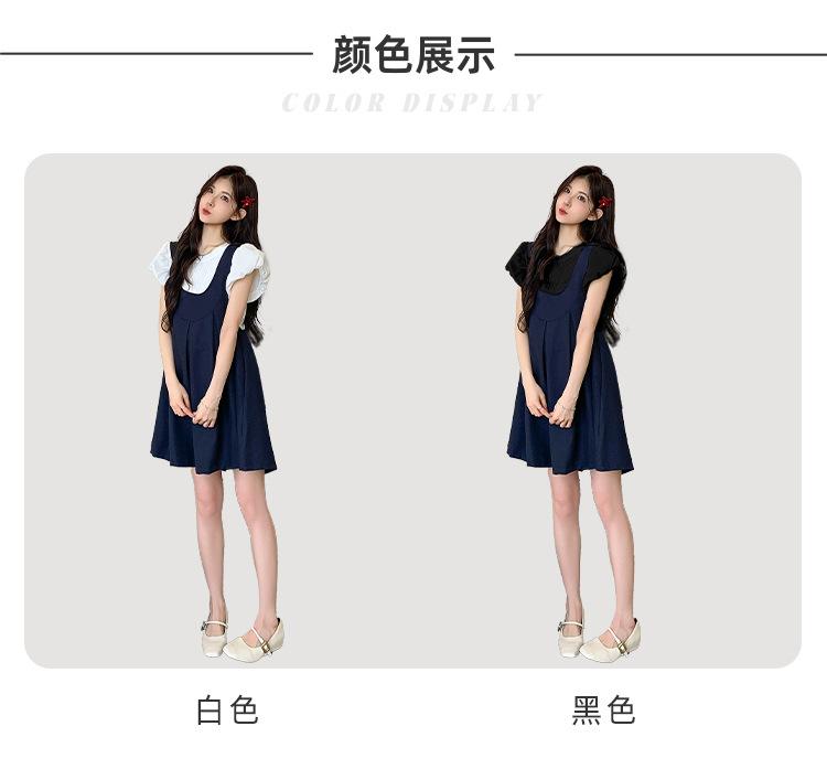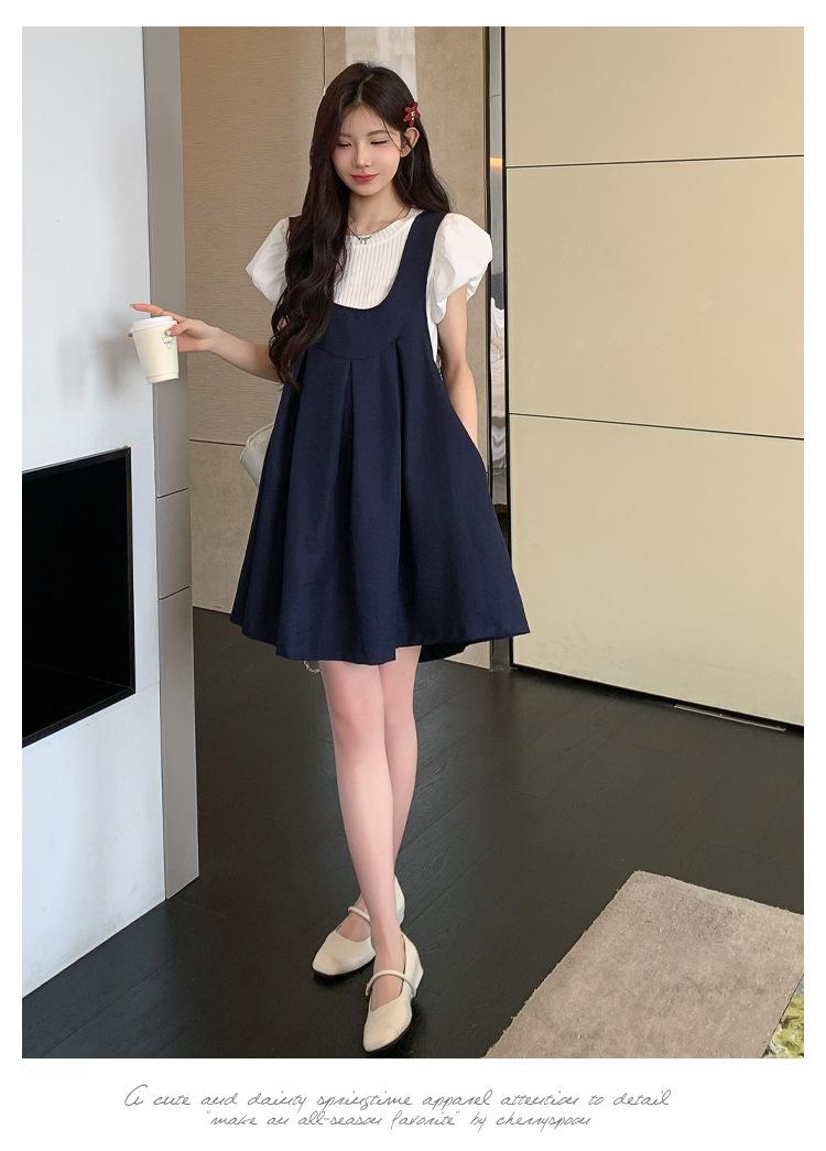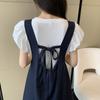 Traje de maternidad de verano 2025, nuevo, con falda de tirantes y mangas abullonadas, jersey de punto color hielo.