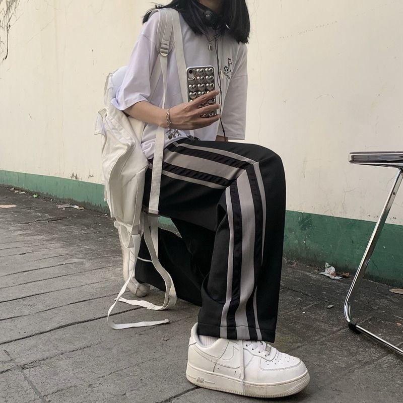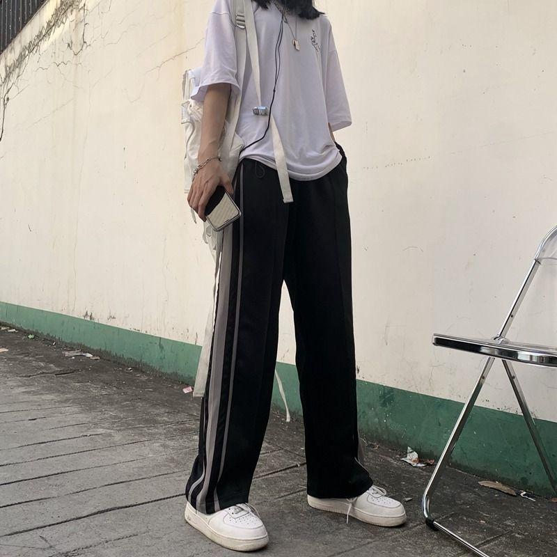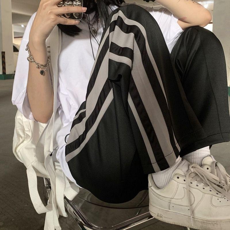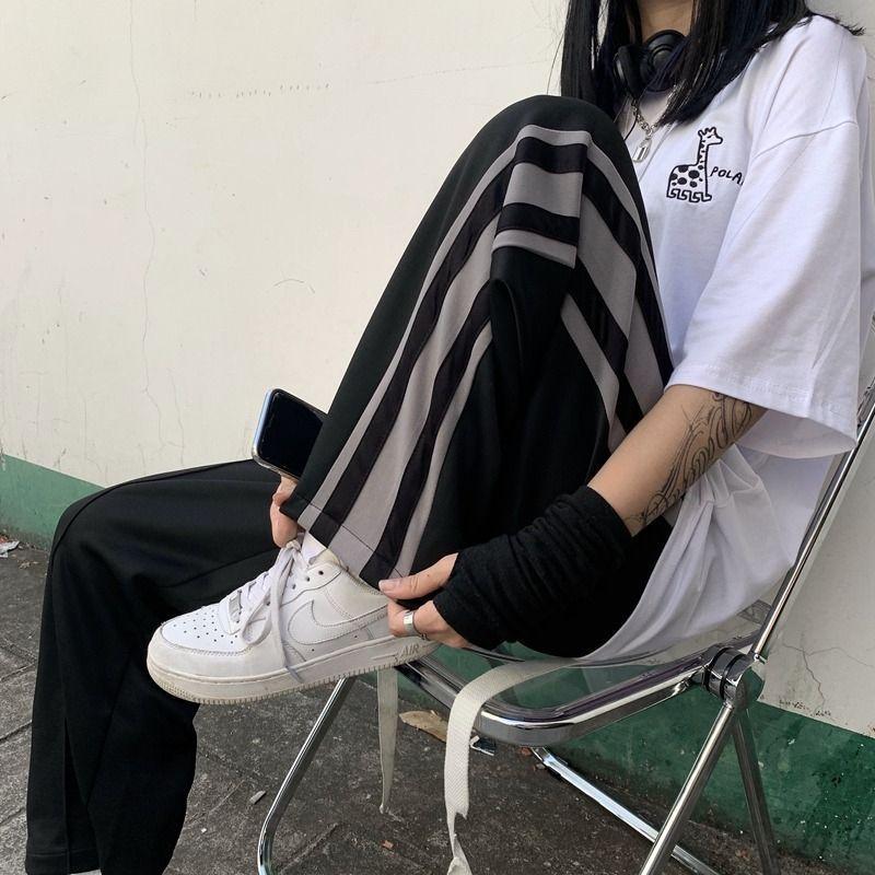 Pantalones largos rectos deportivos de ocio 2025 Primavera y Otoño Nueva Moda Sueltos con Costuras para Mujer Trendy