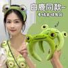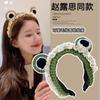 Haiyue nuevo estilo color macarrón lindo diadema de rana de felpa banda para el cabello femenina mascarilla facial caricatura divertida banda para el cabello