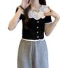 Suéter de manga corta suave con cuello de encaje en contraste para mujer, nuevo top corto ajustado y fino de verano para mujer