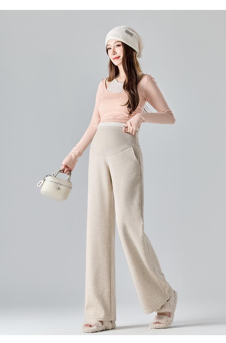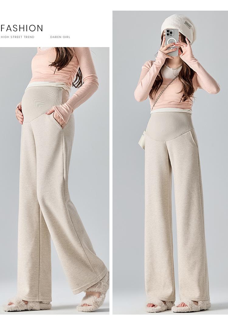 Pantalones de Pierna Ancha para Mujeres Embarazadas 2024 Otoño e Invierno Nueva Moda Ropa Exterior Pantalones Abdominales Ajustables Pantalones Holgados Rectos Adelgazantes para Mujeres Embarazadas
