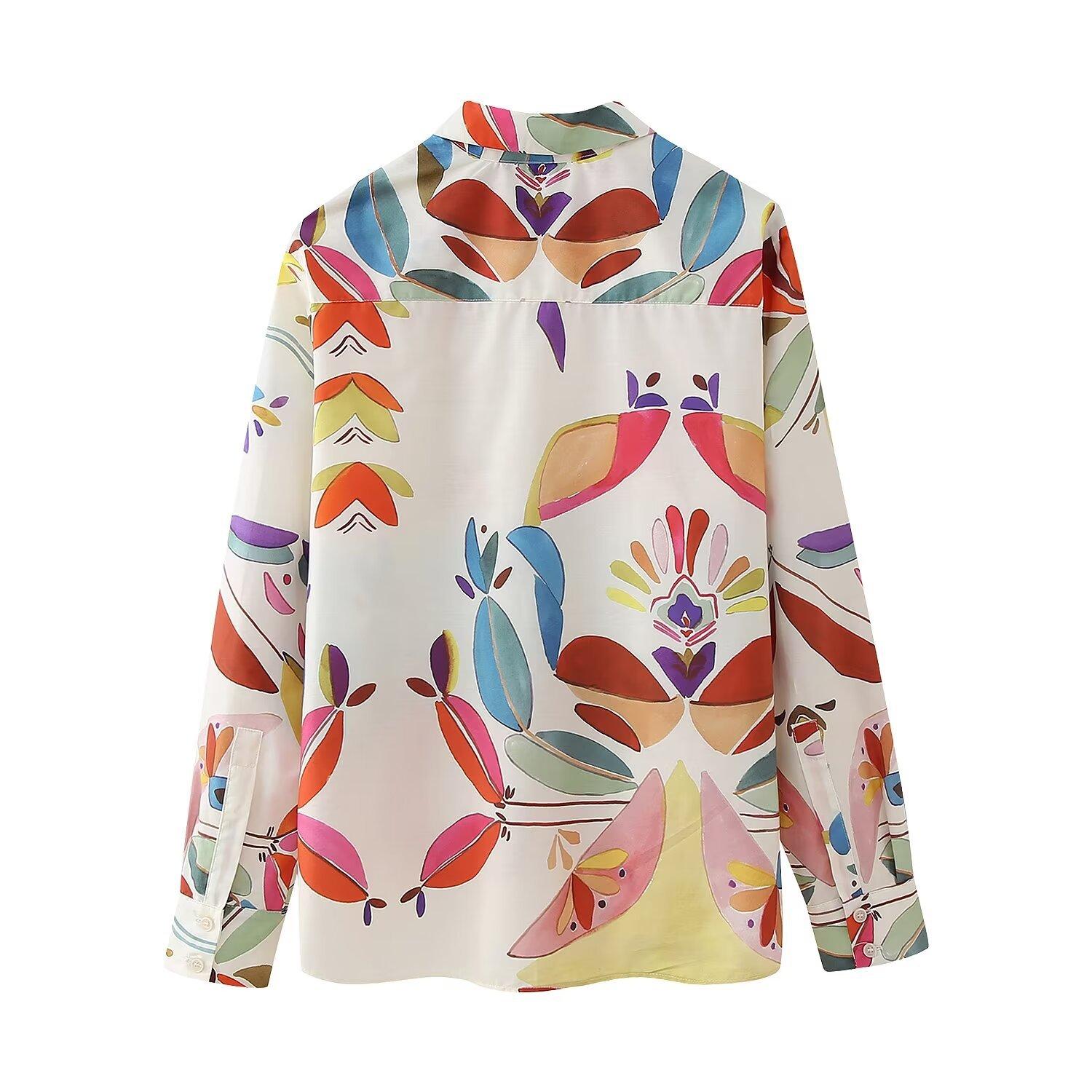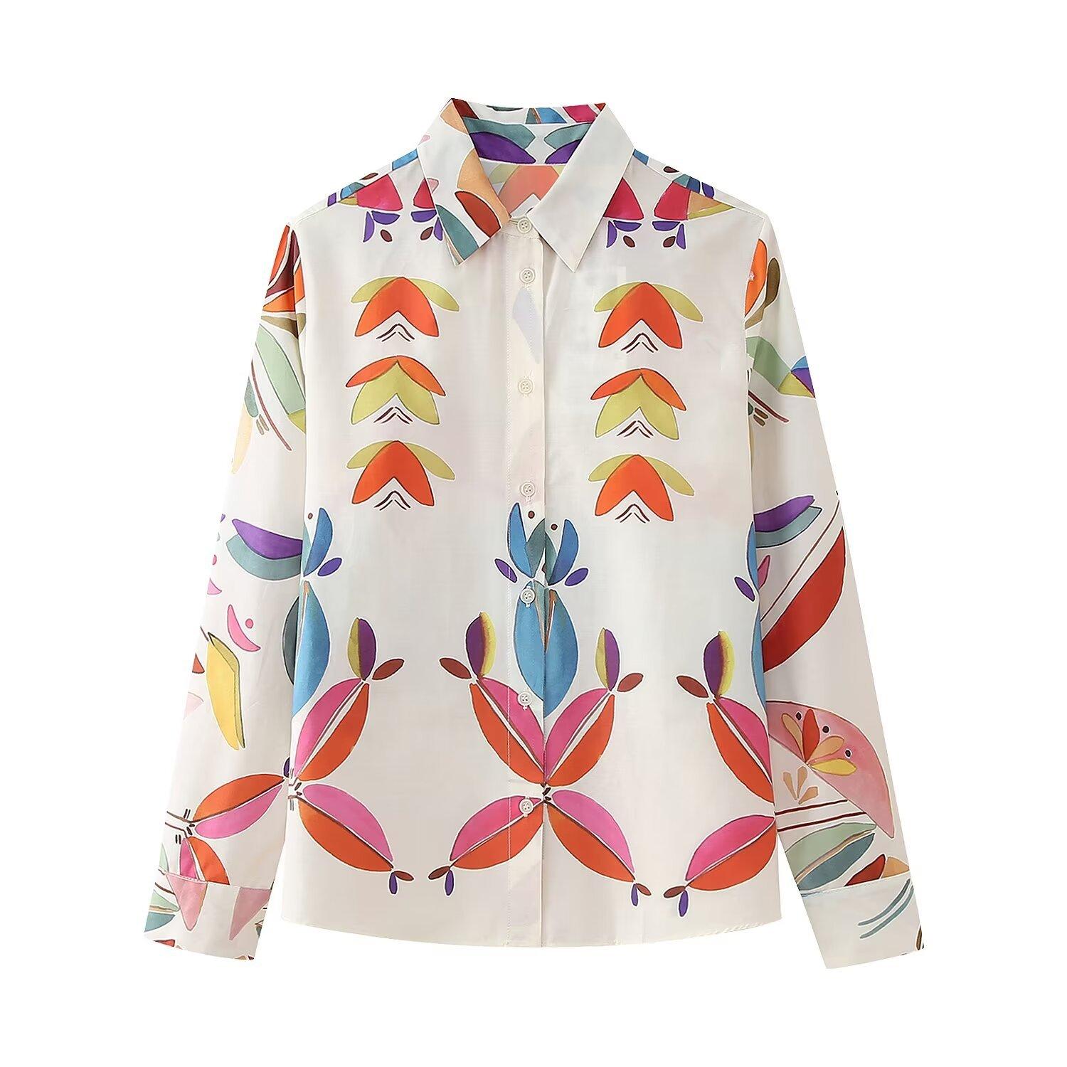 Venta al por mayor 2024 Primavera Nuevo Estilo Europeo Americano Camisa de Popelina Estampada Casual Holgada de Manga Larga para Mujer