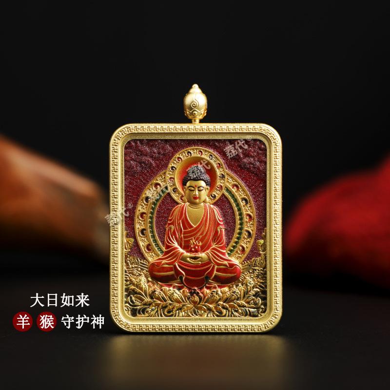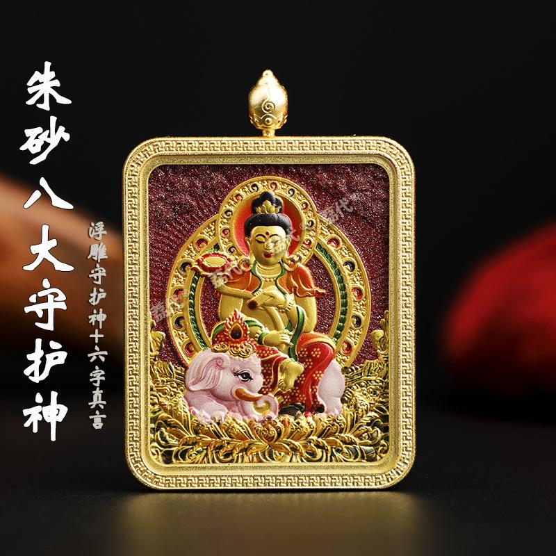 Colgante Buda Año de Nacimiento Thangka en Relieve Estilo Tibetano Cinabrio Mineral Original al por Mayor Colgante Ocho Deidades Guardianas Año de Nacimiento