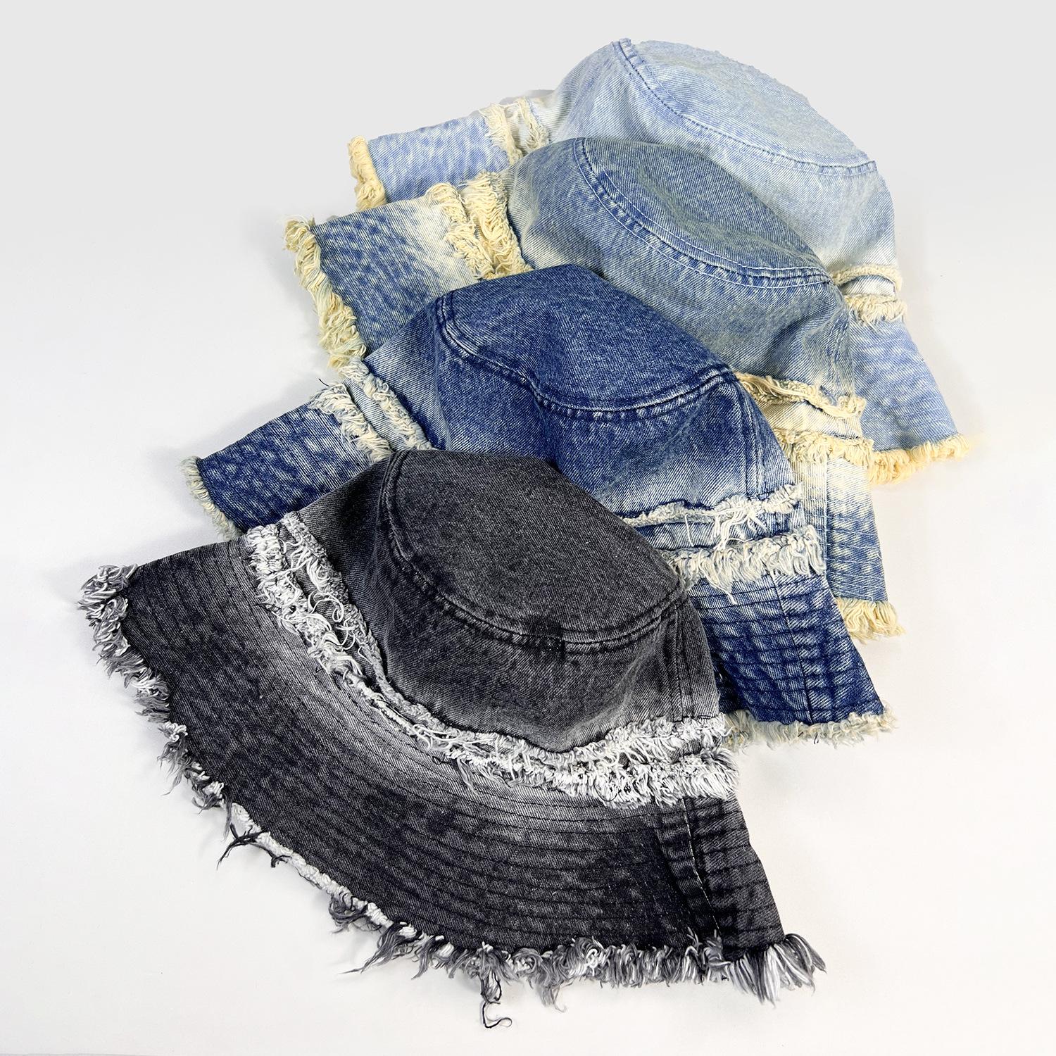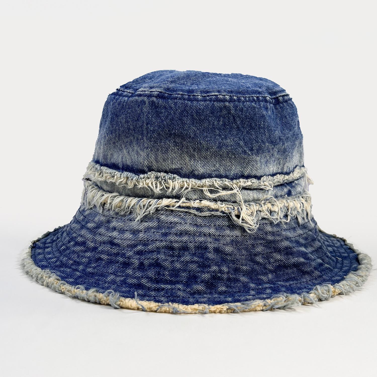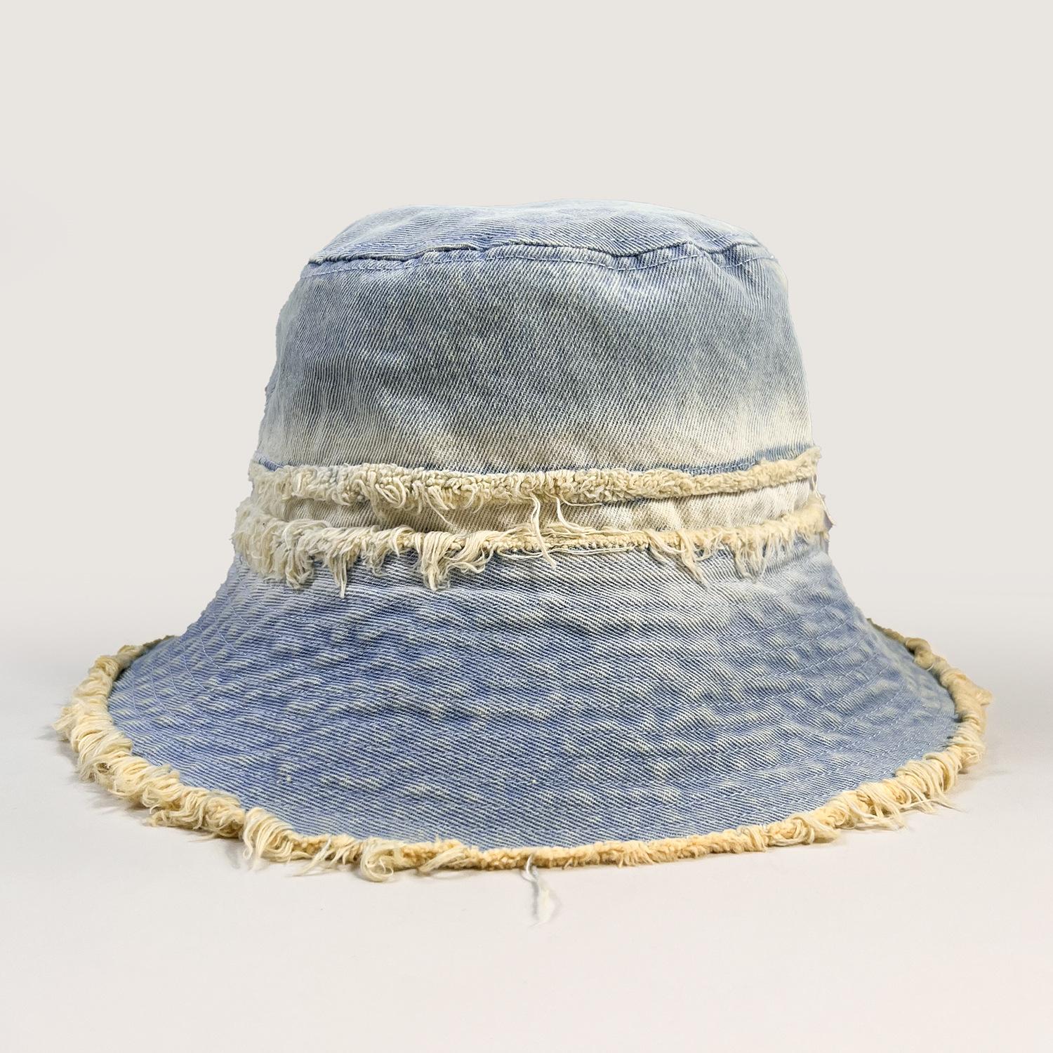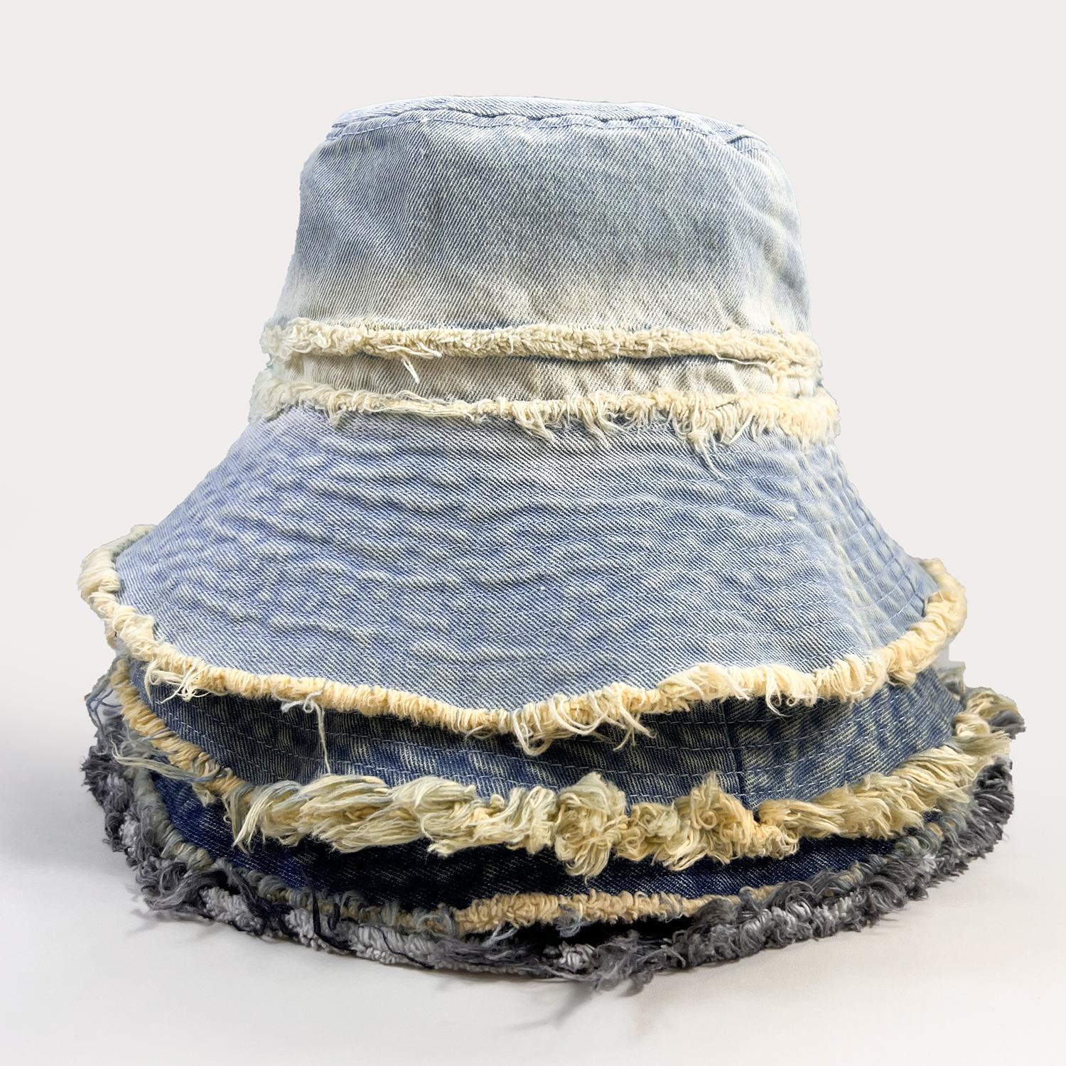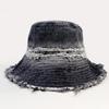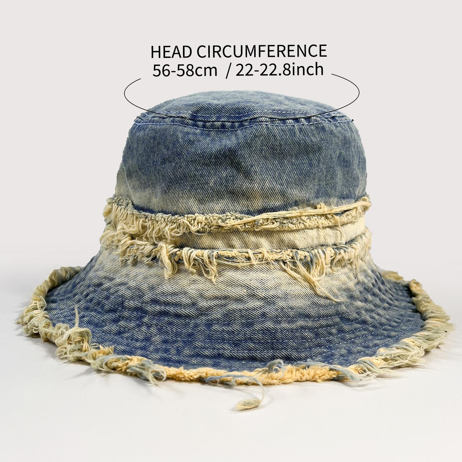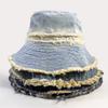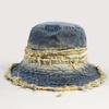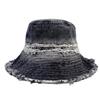 Sombrero de Cubo de Mezclilla Vintage Desgastado con Borde Crudo para Mujer, Otoño Versátil Moda Protección Solar Sombrero para el Sol para Viajes de Vacaciones