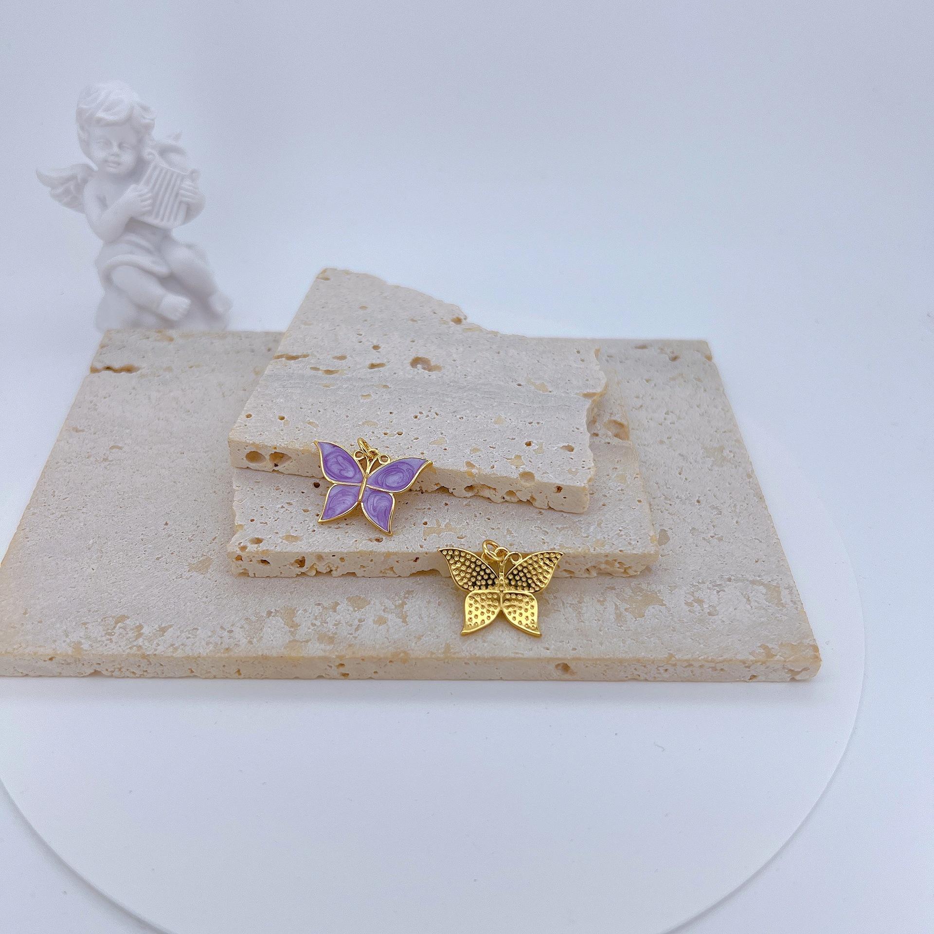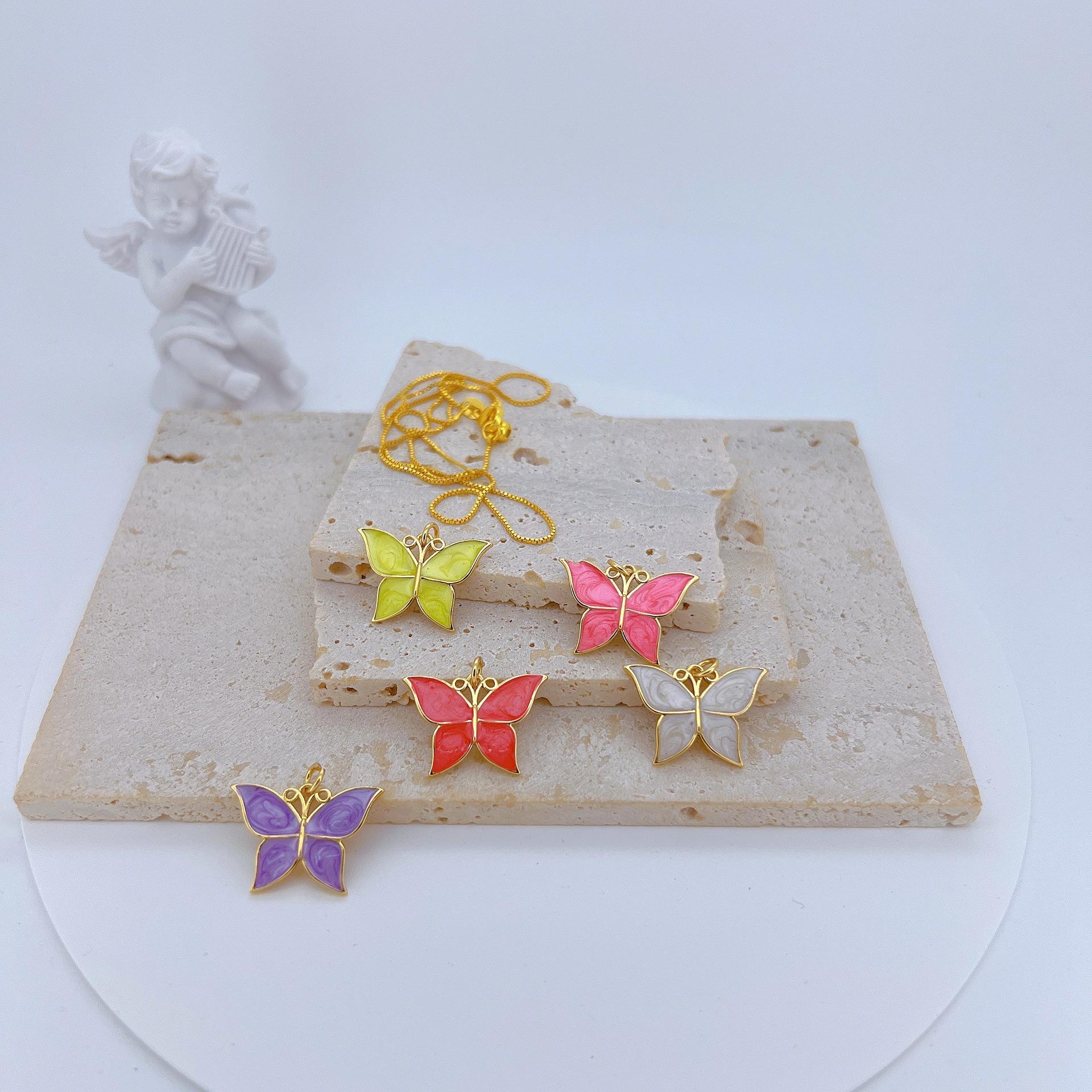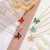 Collar Elegante de Cobre Chapado en Oro con Diseño de Mariposa Transfronterizo Ins Europeo y Americano, Zircón con Gota de Aceite, Diamante Completo