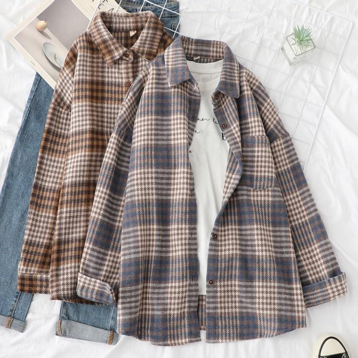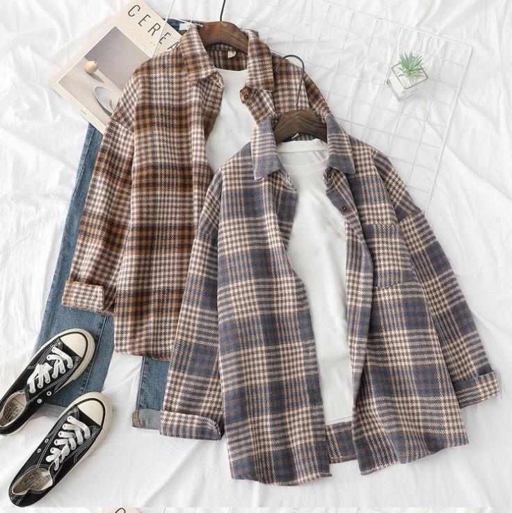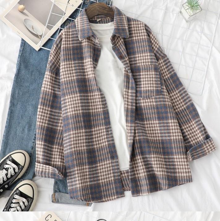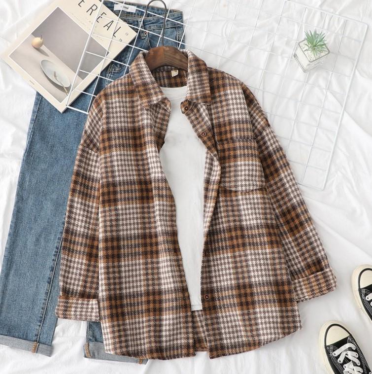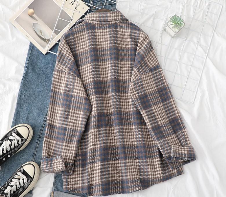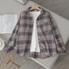 Chaqueta Camisa a Cuadros Gruesa Holgada Estilo Coreano Estilo Hong Kong Otoño y Primavera 2025 Ropa Exterior Top Retro para Mujer