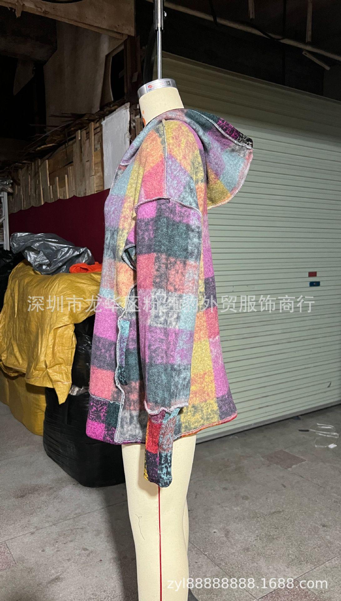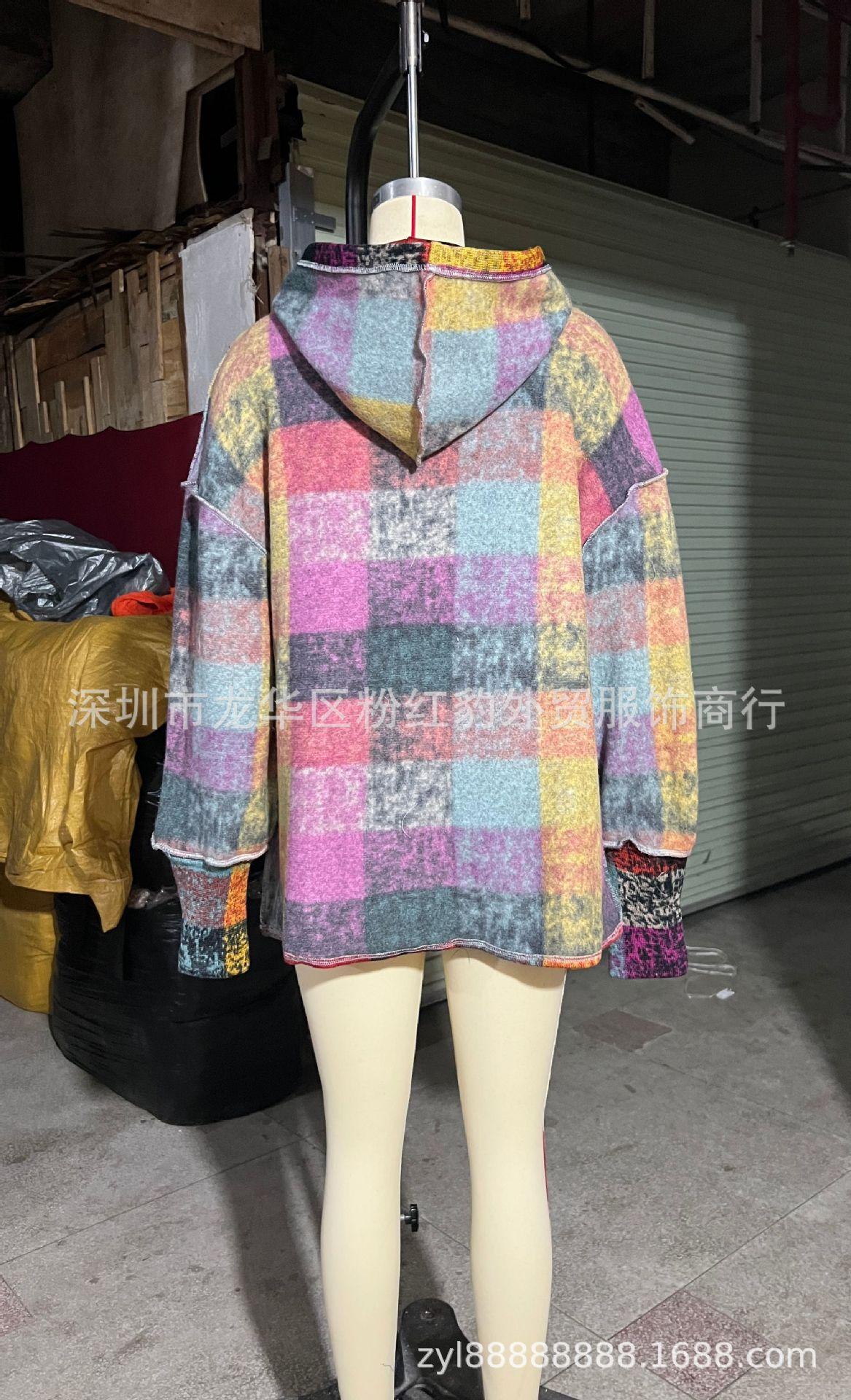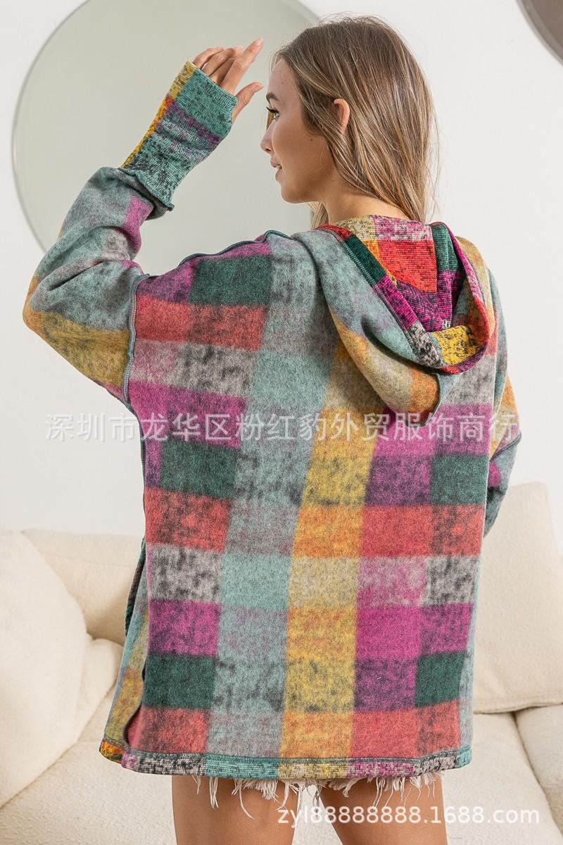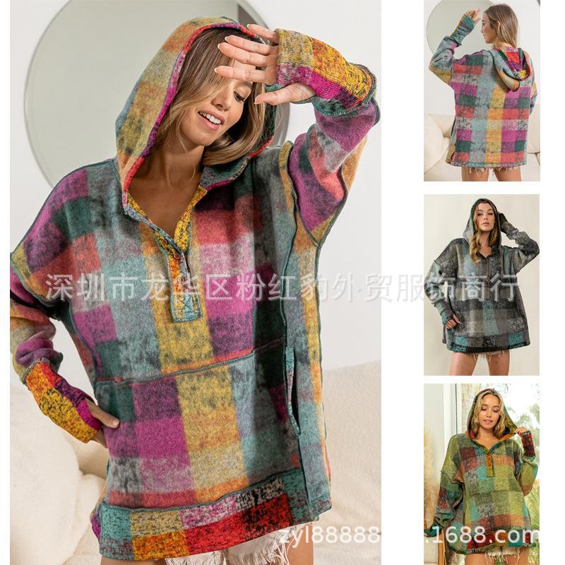 Popular europeo y americano eBay Amazon otoño e invierno nueva ropa de mujer moda color cuadros sudadera polar con capucha