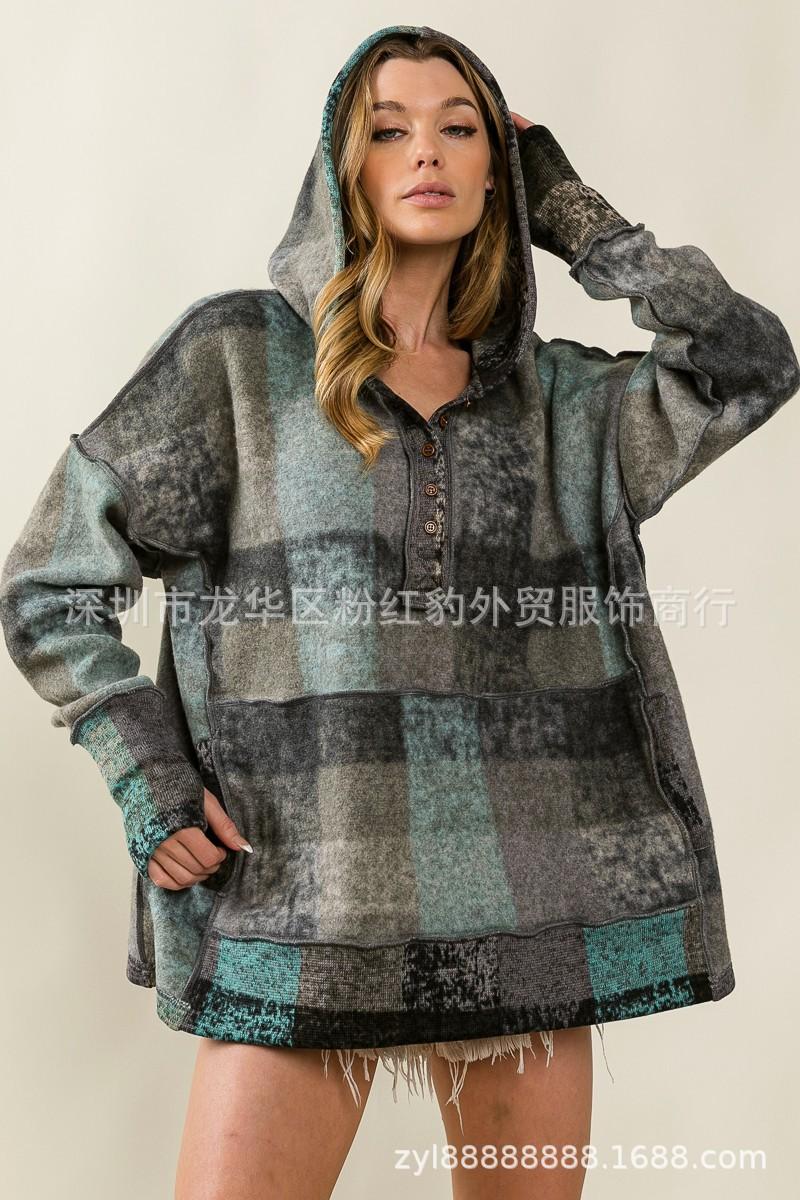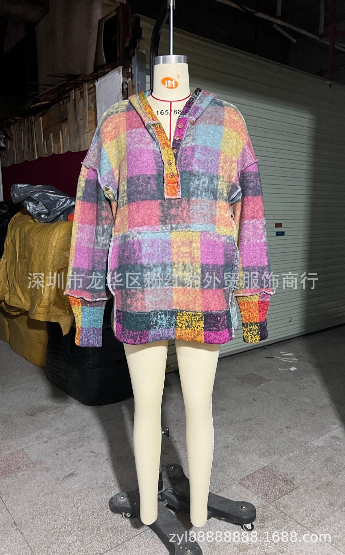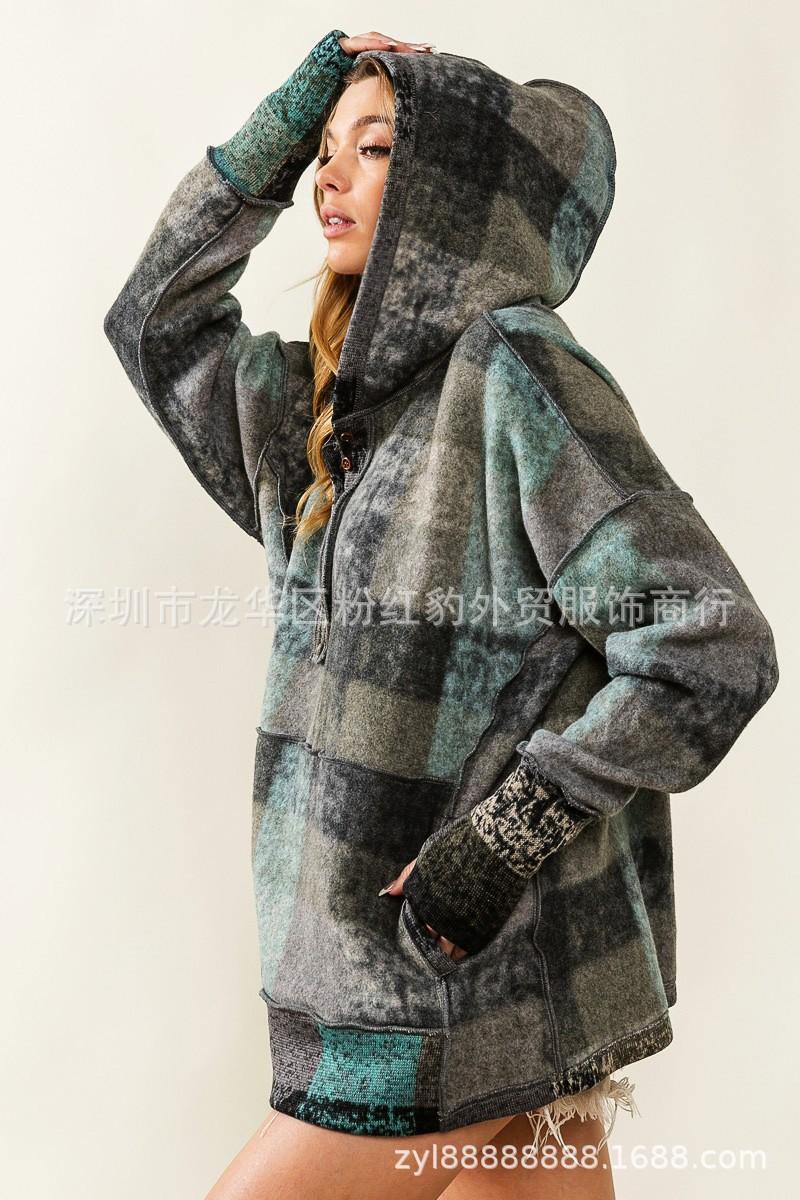 Popular europeo y americano eBay Amazon otoño e invierno nueva ropa de mujer moda color cuadros sudadera polar con capucha
