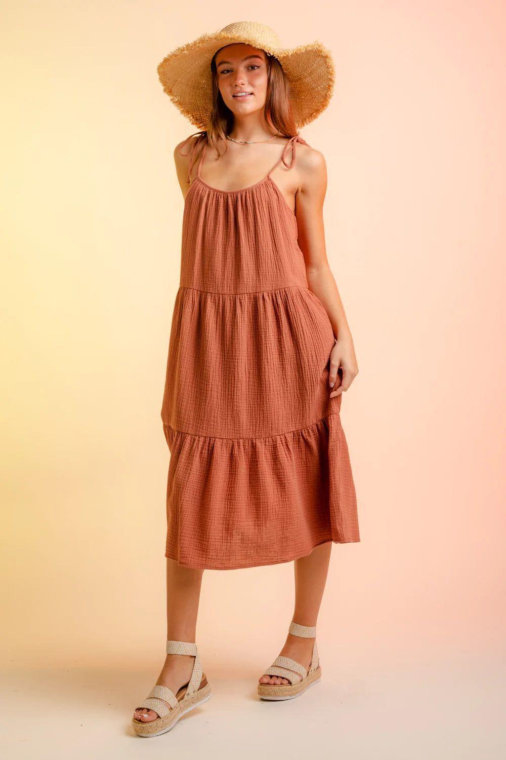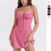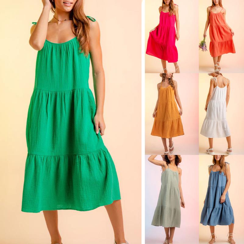 Estilo Caliente Europeo y Americano 2024Ebay Amazon Primavera y Verano Nuevo Vestido de Tirantes para Mujer Empalme Color Caramelo Color Puro