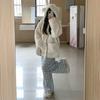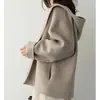 Cárdigan Nuevo Holgado Grueso 2025 con Capucha Abrigo Acolchado de Imitación de Cordero para Mujer Otoño e Invierno Abrigo con Botones de Cuerno Pequeños