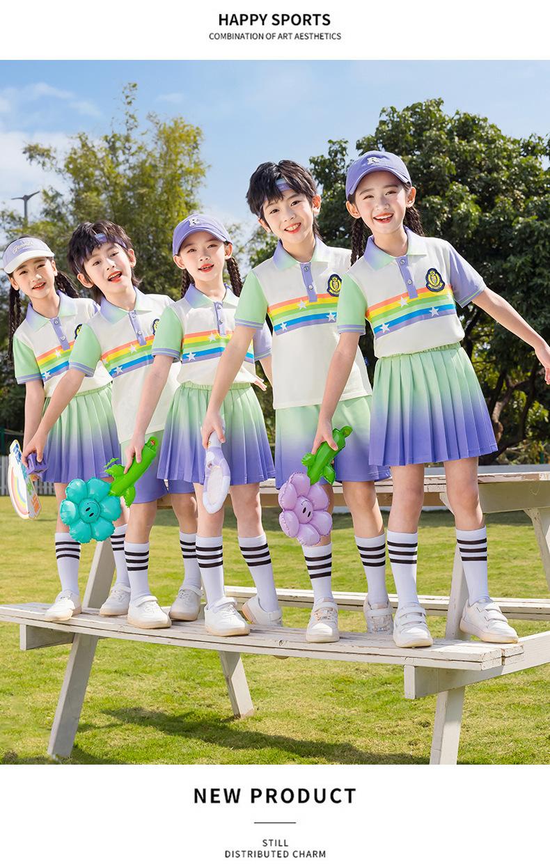 Uniforme de Clase Arcoíris Traje de Verano Uniforme de Jardín de Niños Uniforme de Escuela Primaria Uniforme de Actuación para Niños Uniforme para Foto de Graduación