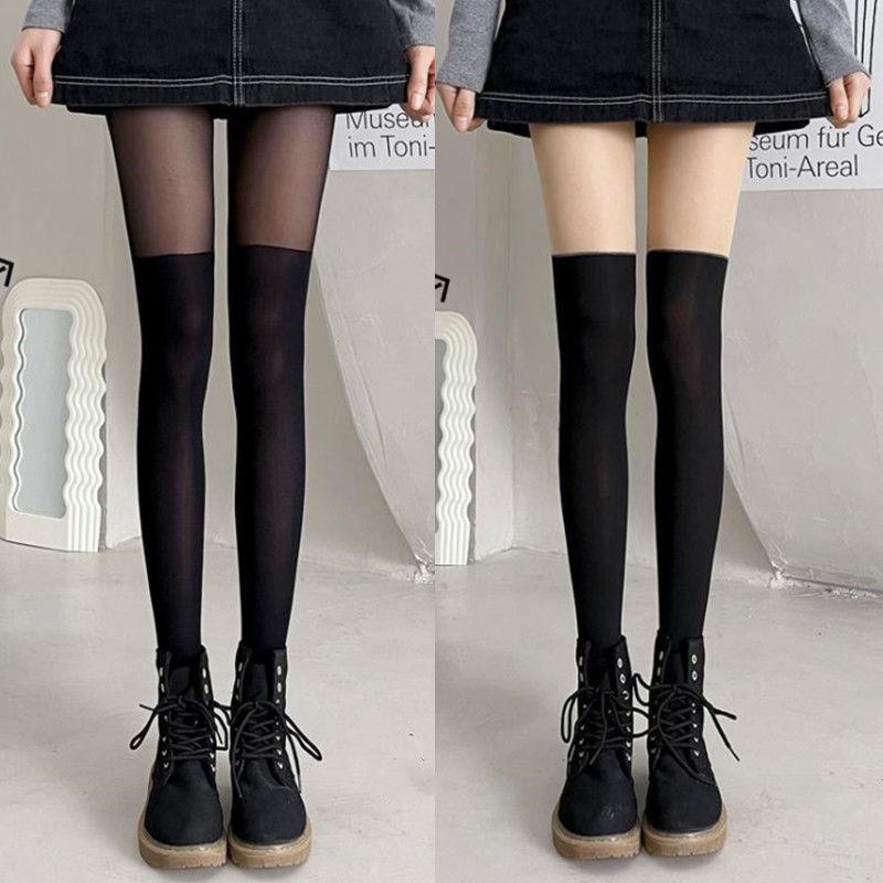 Calcetines de muslo falso hasta la rodilla con costuras en la base, medias negras JK, pantimedias blancas japonesas para mujer.