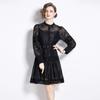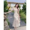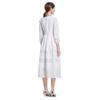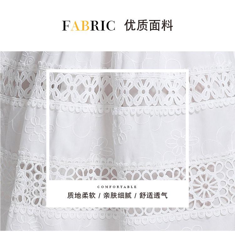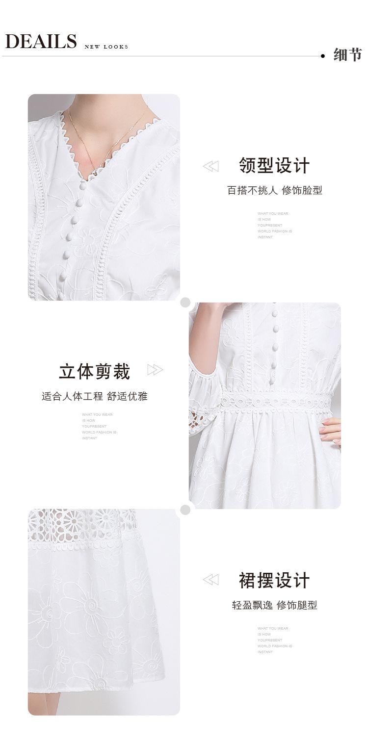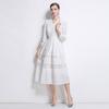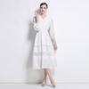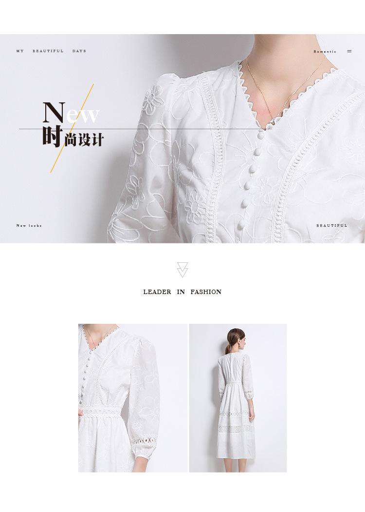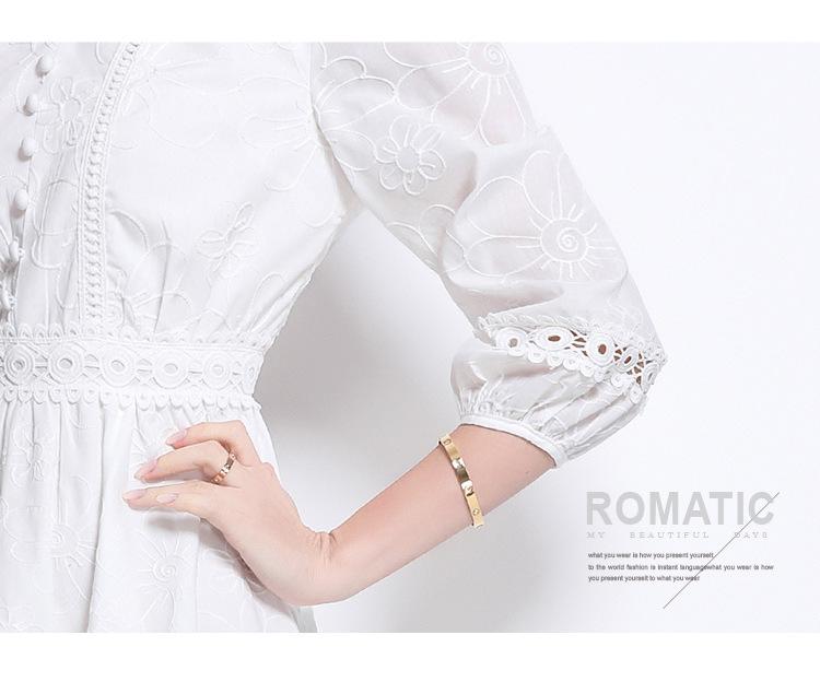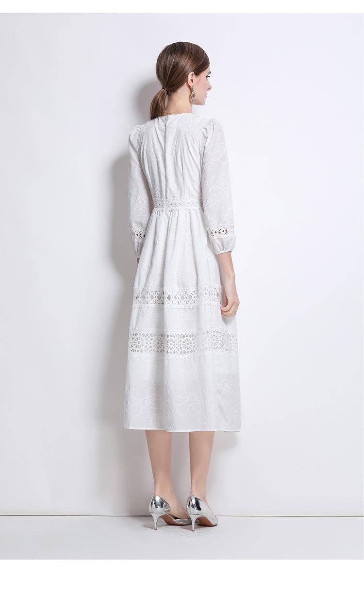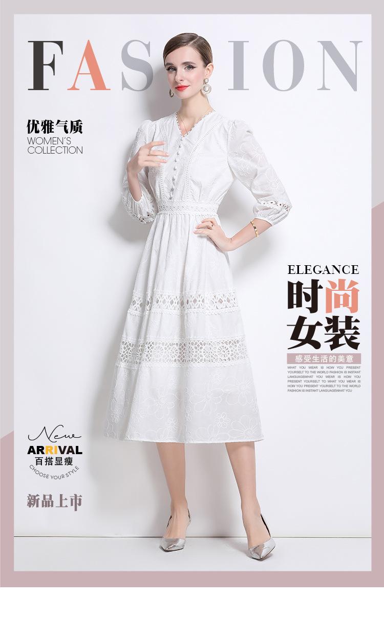 Vestido Blanco de Encaje Bordado con Cuello en V y Manga Larga 2025 Nuevo Estilo de Verano Look Adelgazante de Cintura Falda de Hada