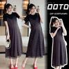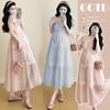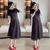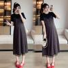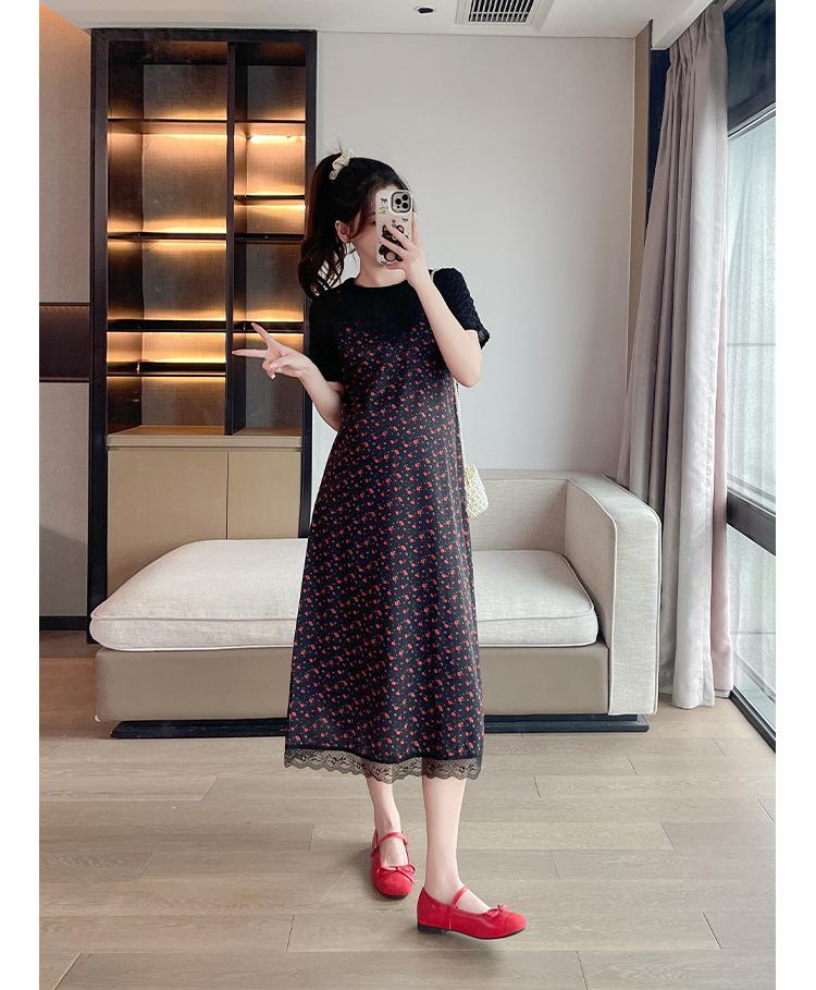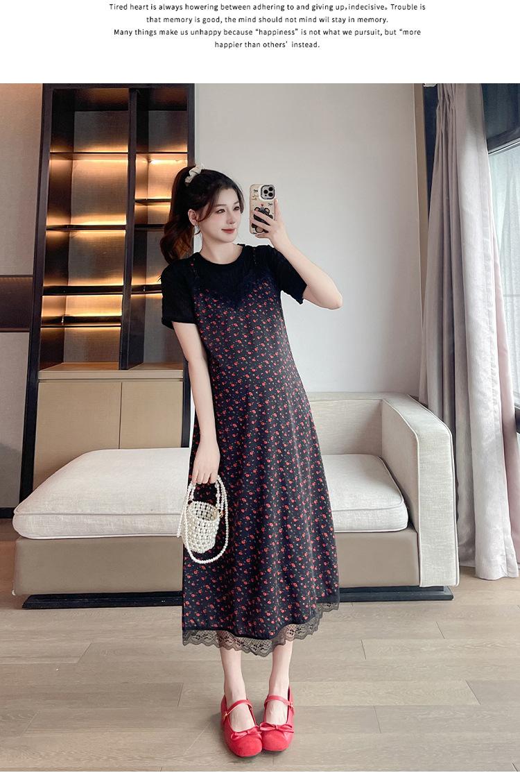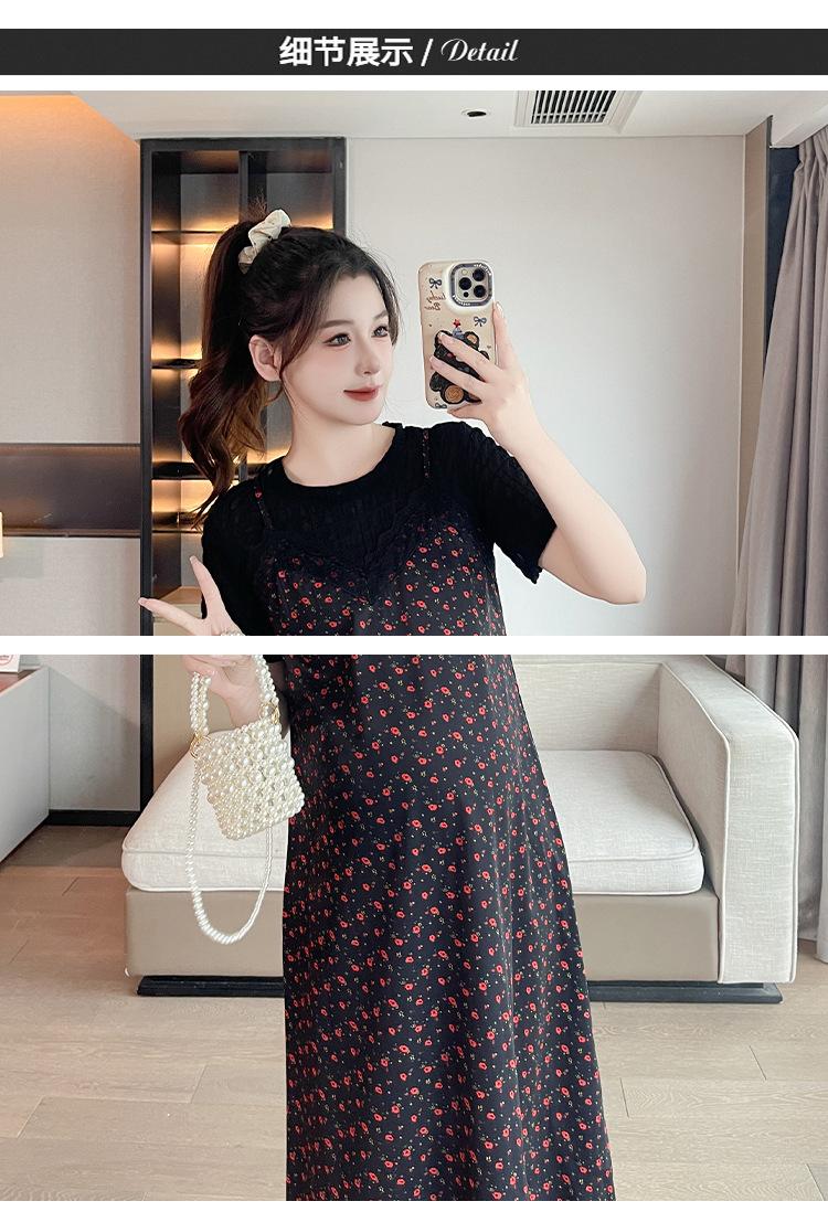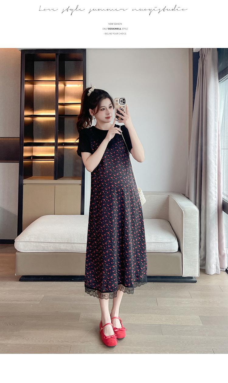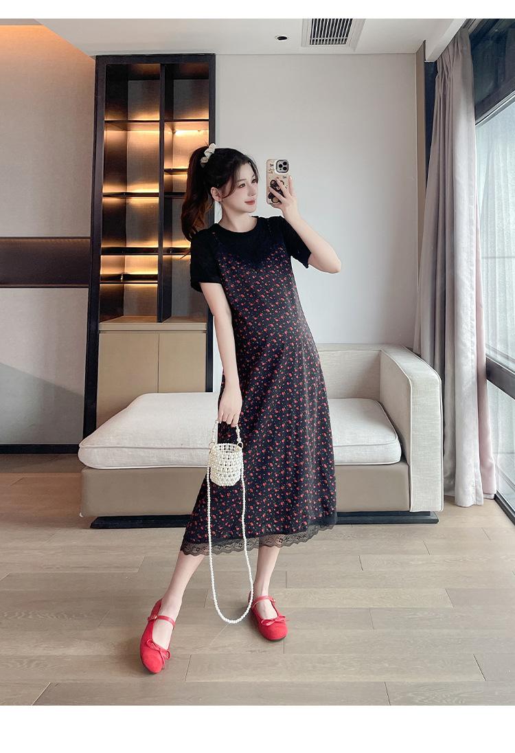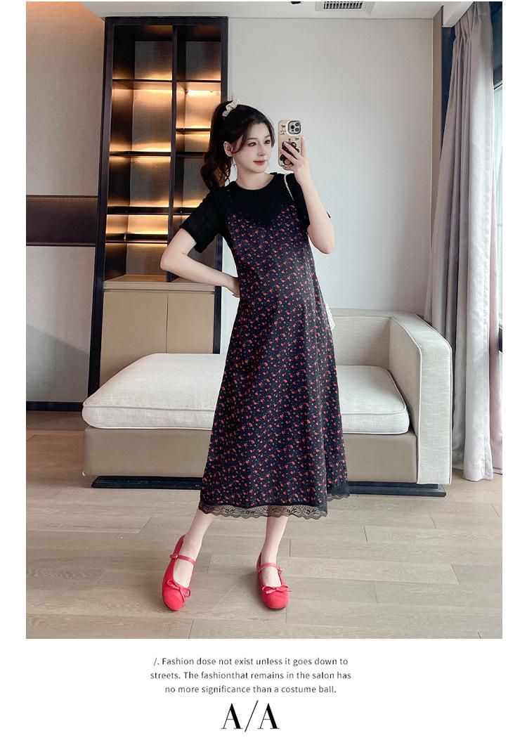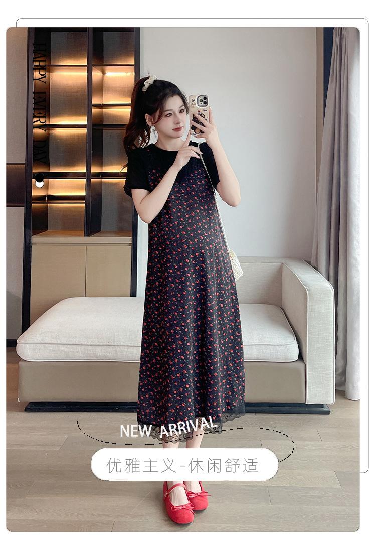 Ropa de Maternidad 2025 Verano Nuevo Estilo Dulce Francés Look Adelgazante Encaje Floral Falso Vestido de Maternidad de Dos Piezas