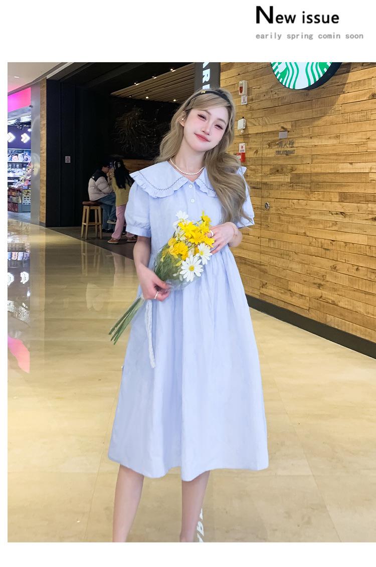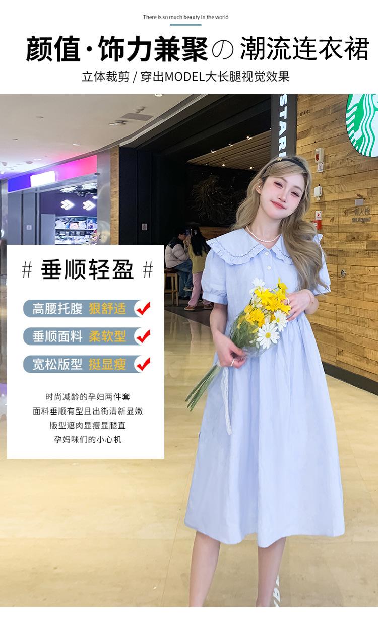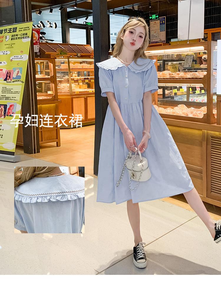 Maternidad 2025 Verano Nuevo Dulce Moda Pequeño Fresco Reductor de Edad Talla Grande Vestido para Mujeres Embarazadas Hebilla Lactancia