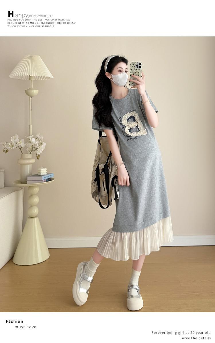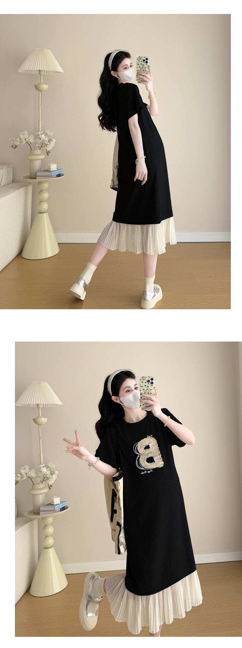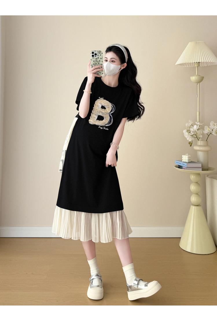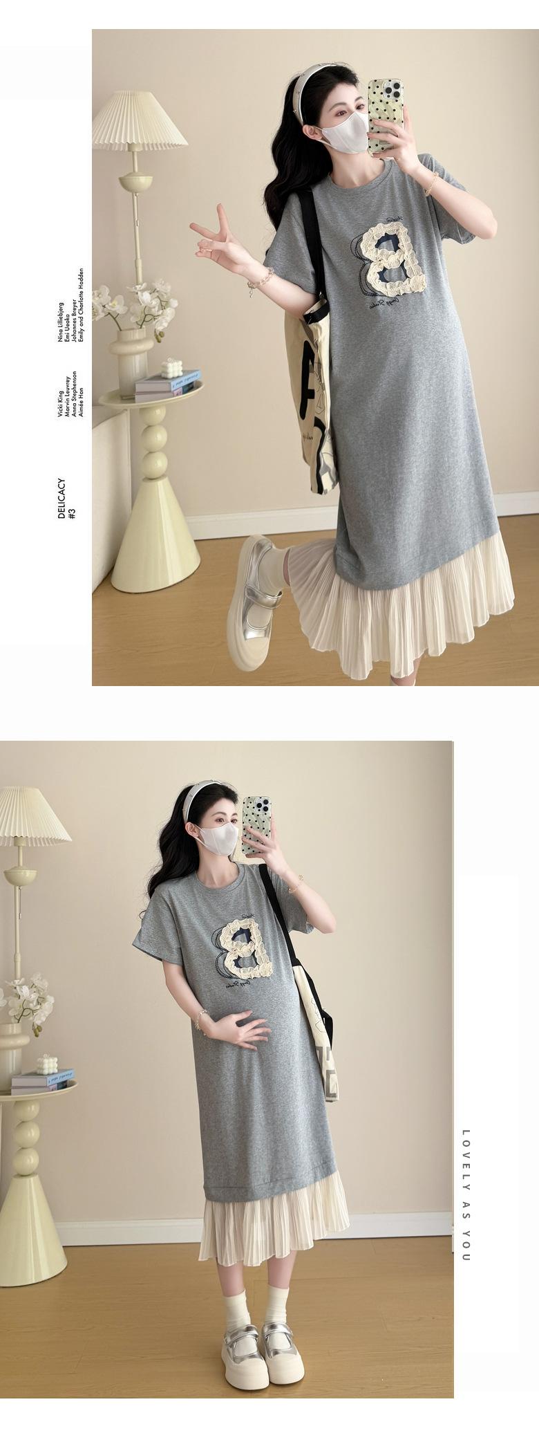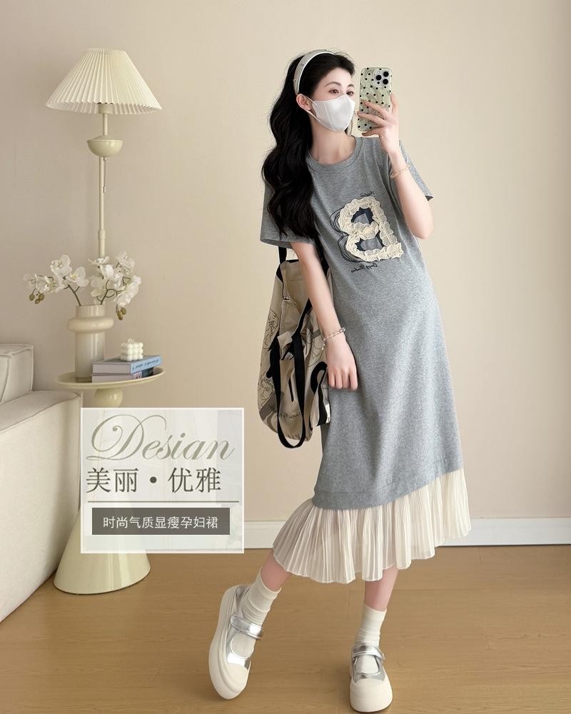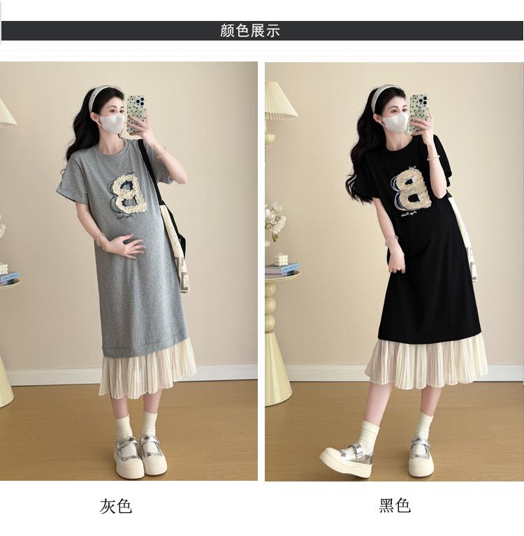 Ropa de Maternidad 2025 Verano Nuevo Casual Suelto Chifón Empalmado Media Longitud Versátil Vestido de Maternidad
