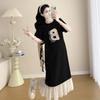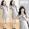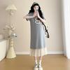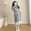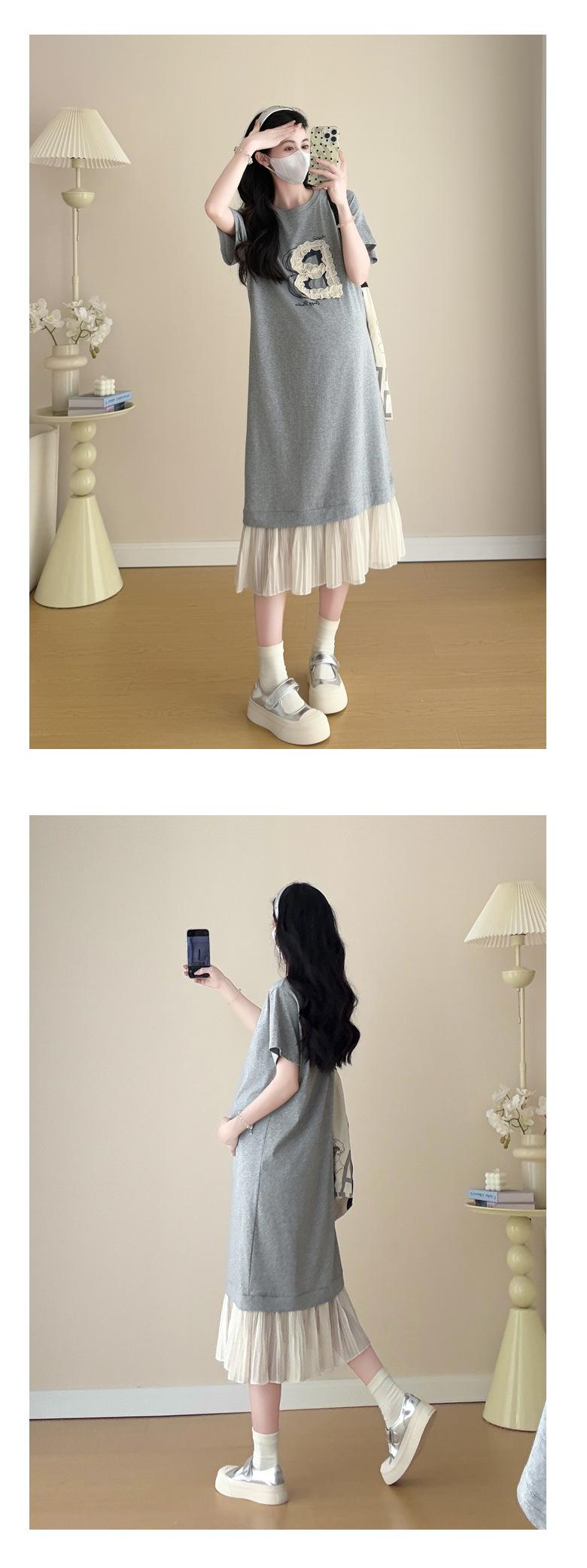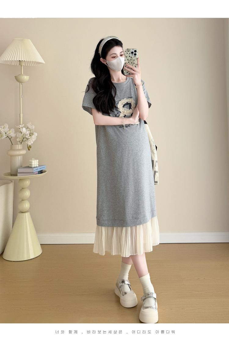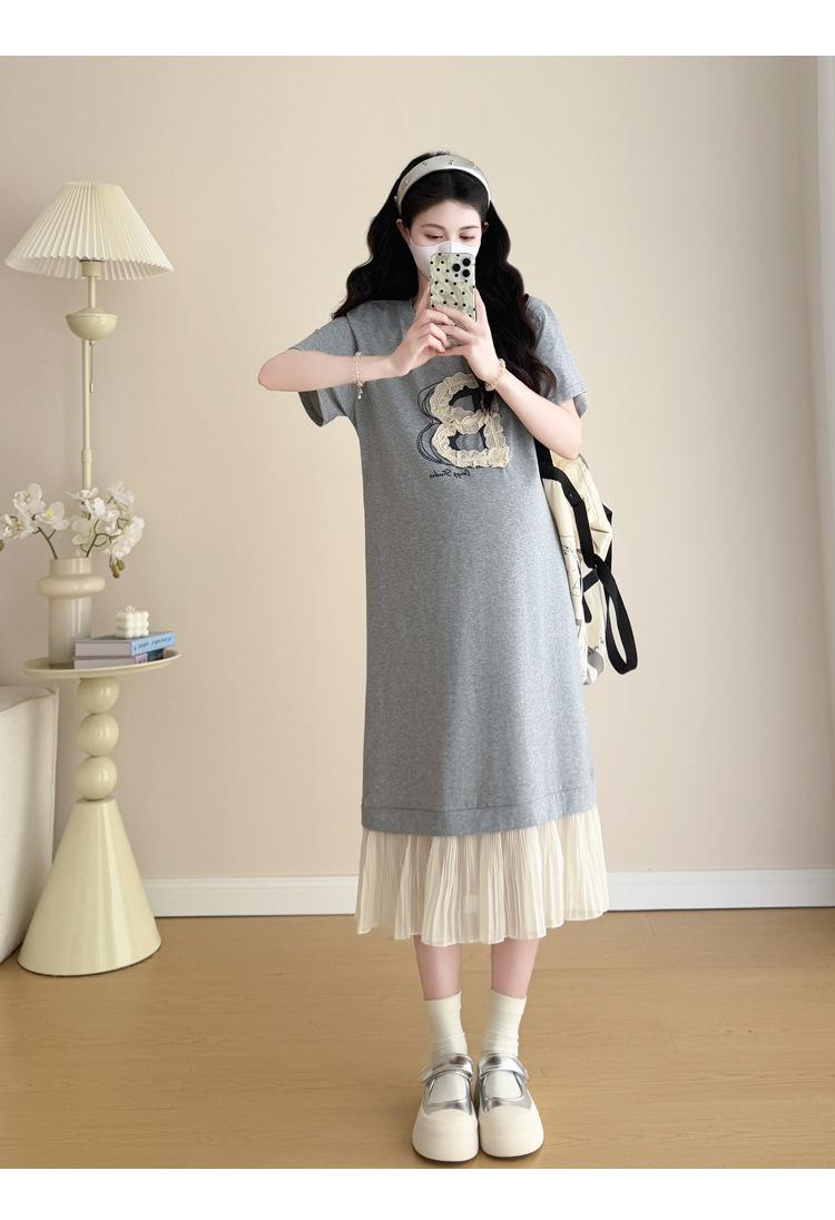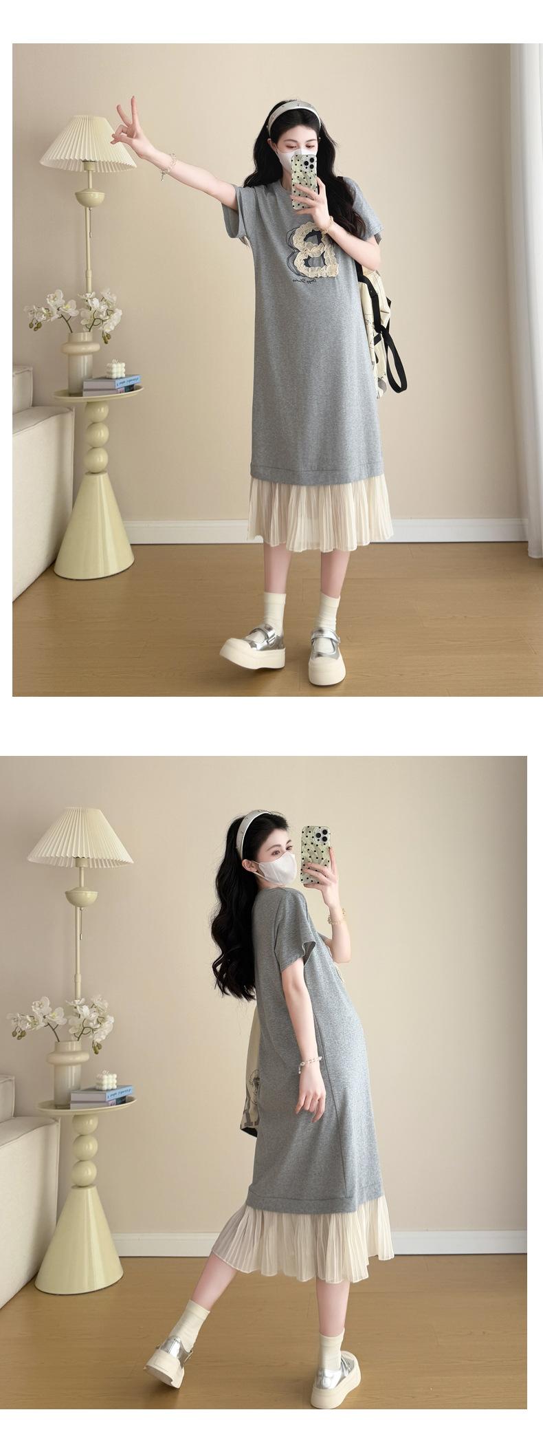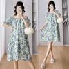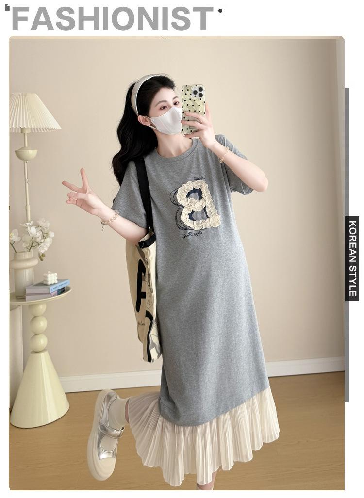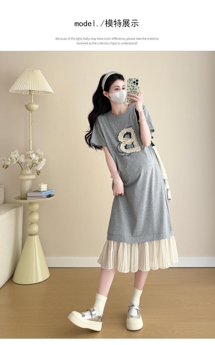 Ropa de Maternidad 2025 Verano Nuevo Casual Suelto Chifón Empalmado Media Longitud Versátil Vestido de Maternidad