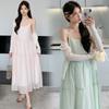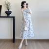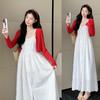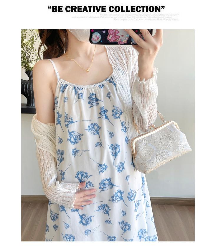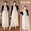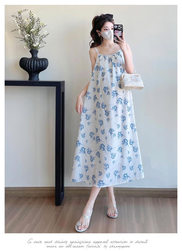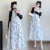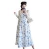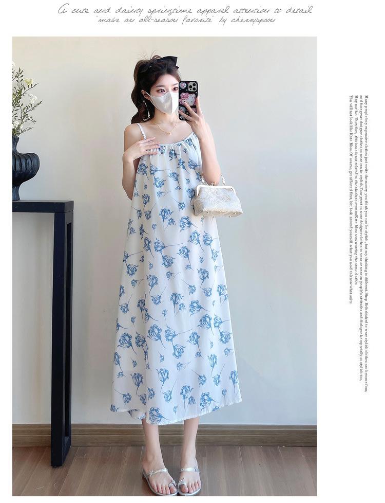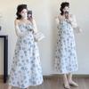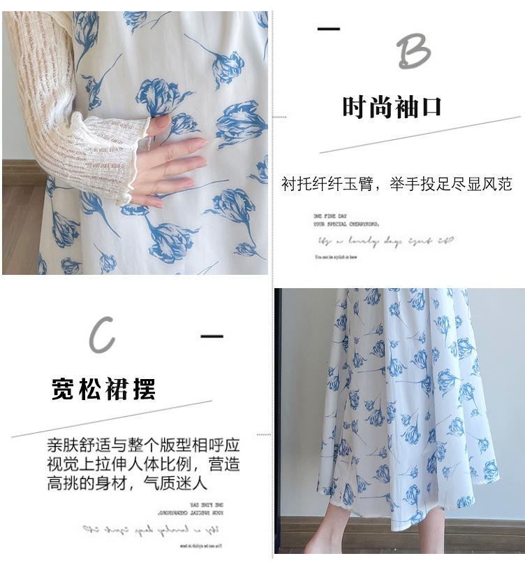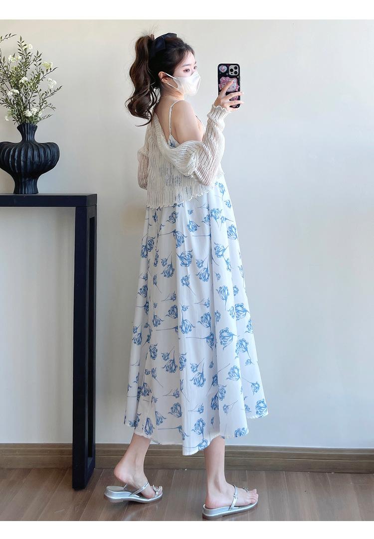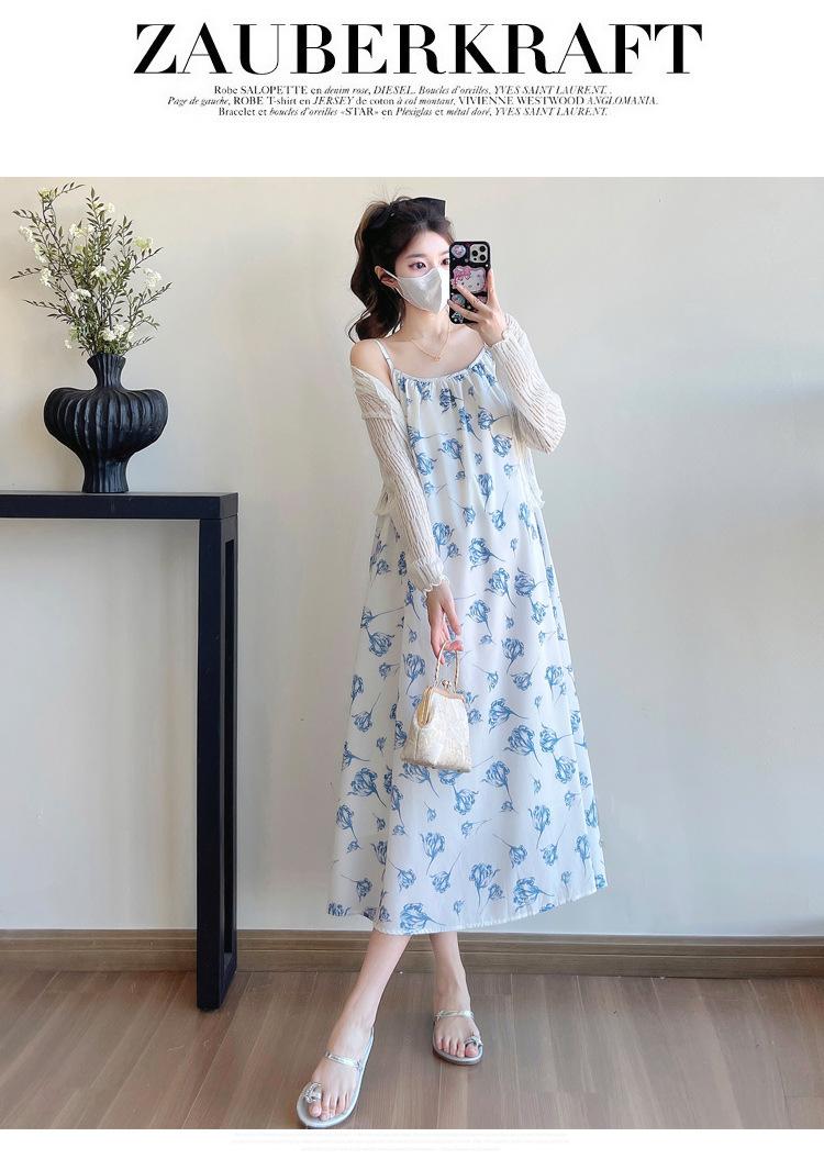 Ropa de Maternidad 2025 Verano Nuevo Estilo Francés Retro Floral Elegante Falda Larga + Cárdigan Vestido de Maternidad de Dos Piezas