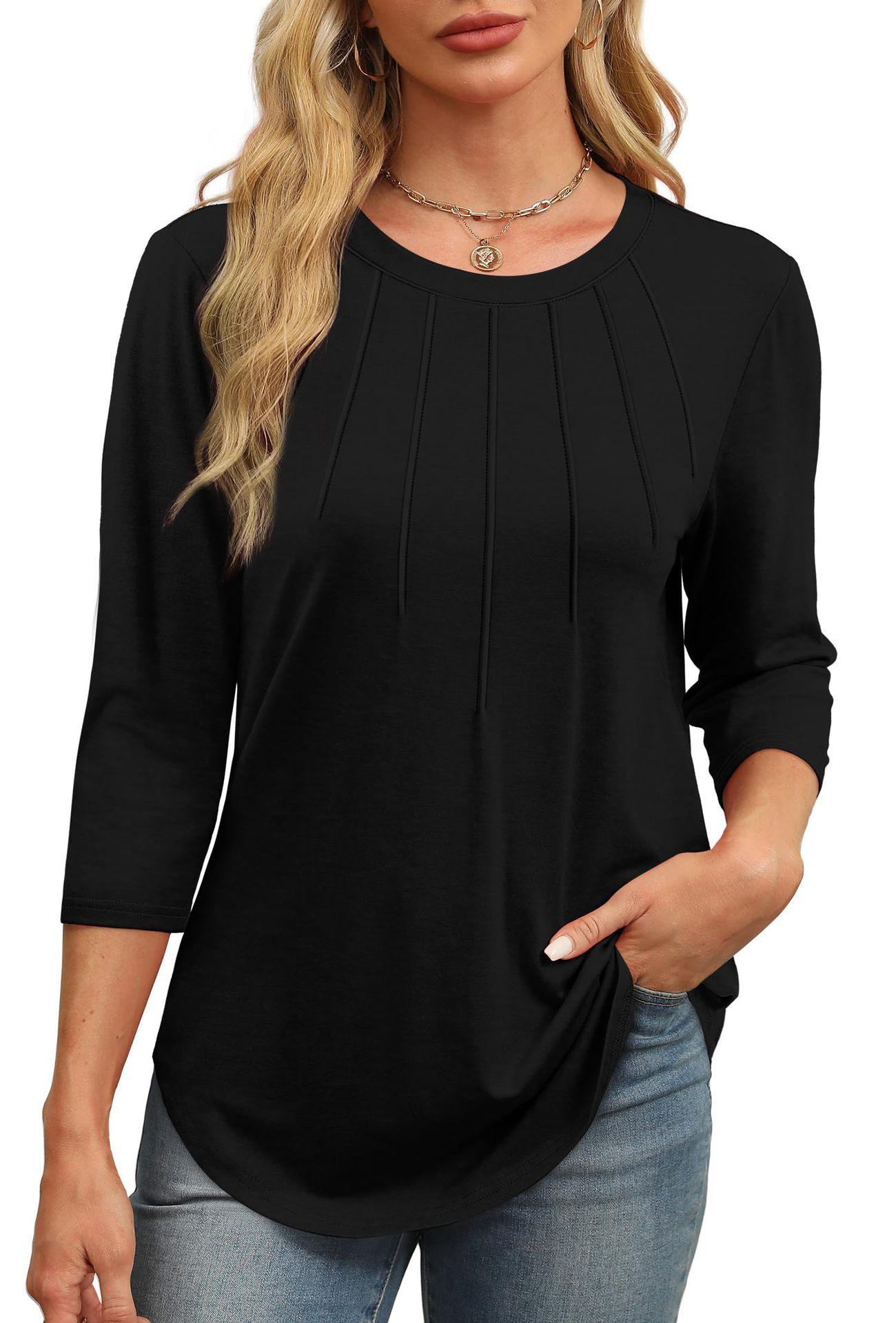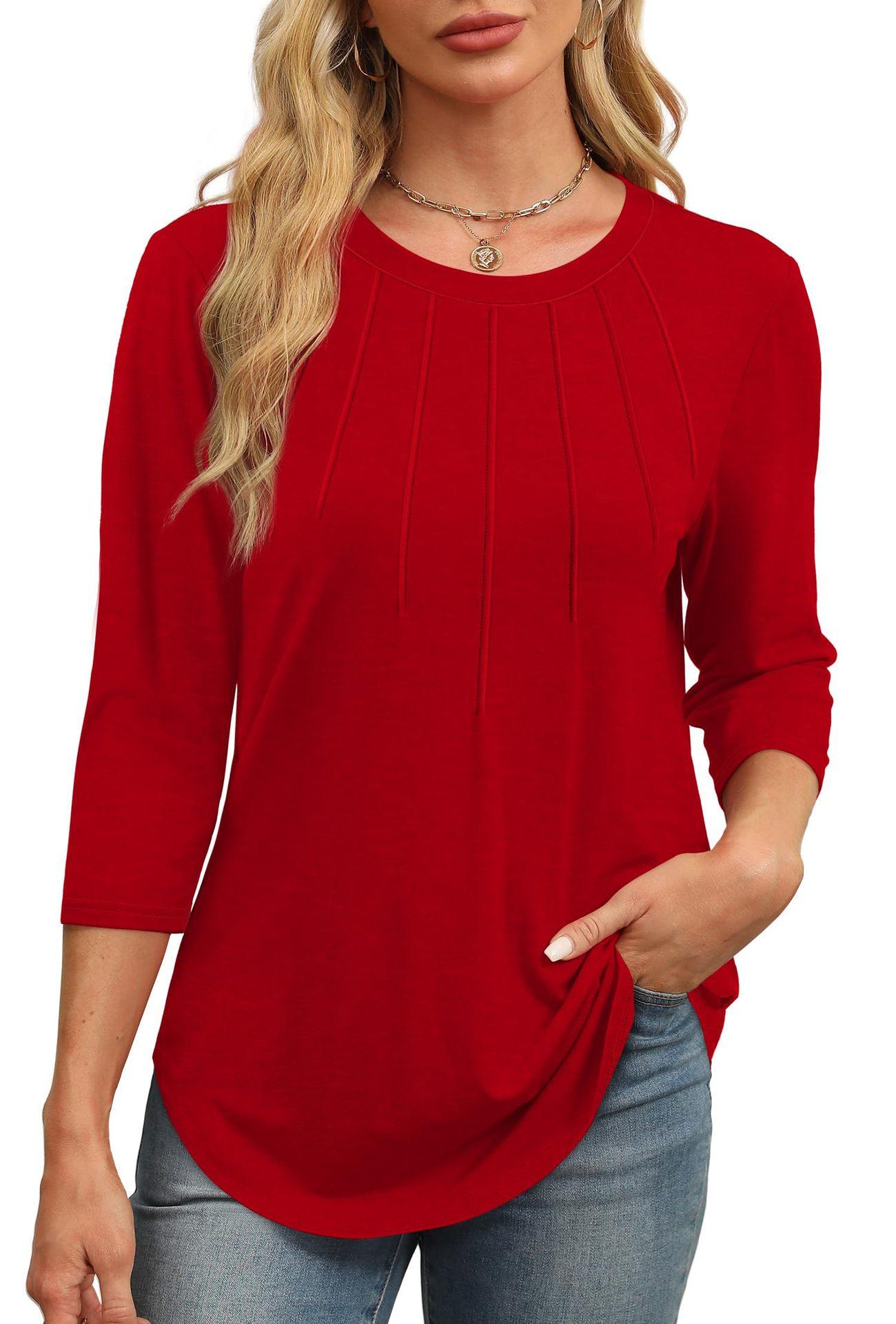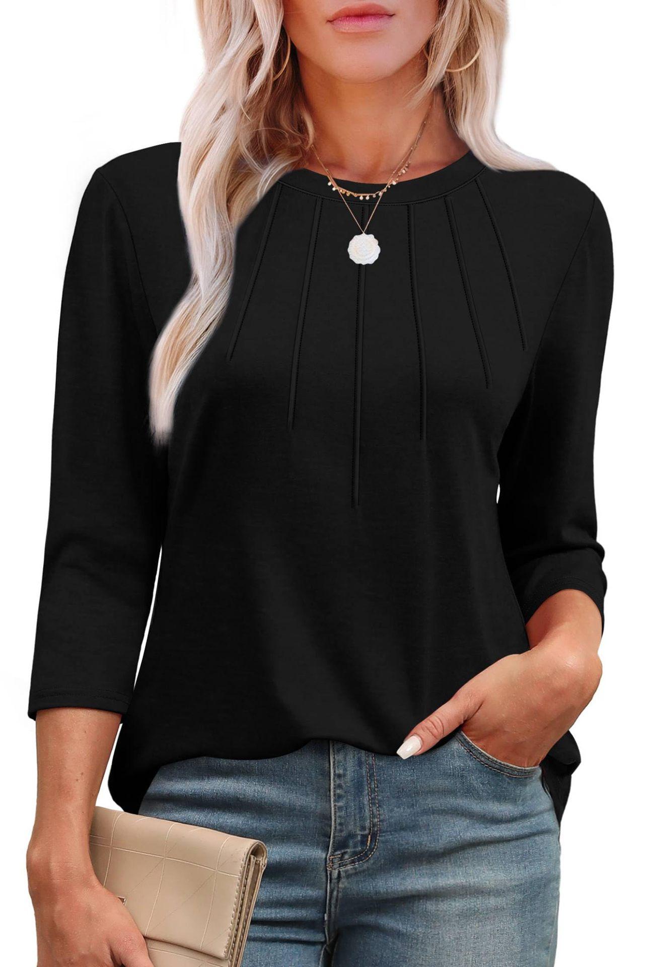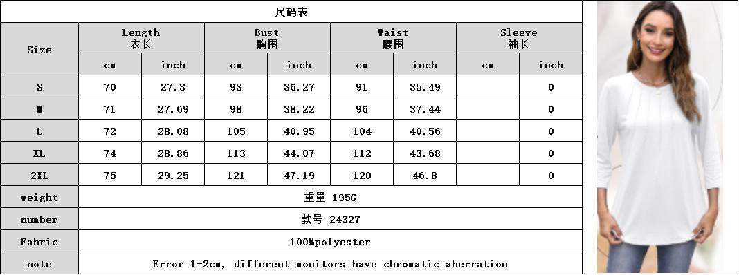 Europeo y Americano Transfronterizo TEMU Amazon 2024 Nueva Moda Casual Plisado Cuello Redondo Manga Siete Puntos Top Camiseta Base