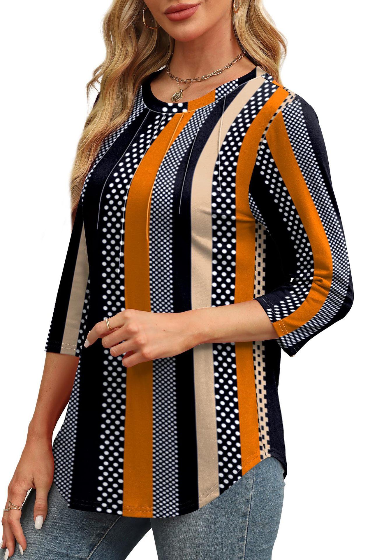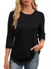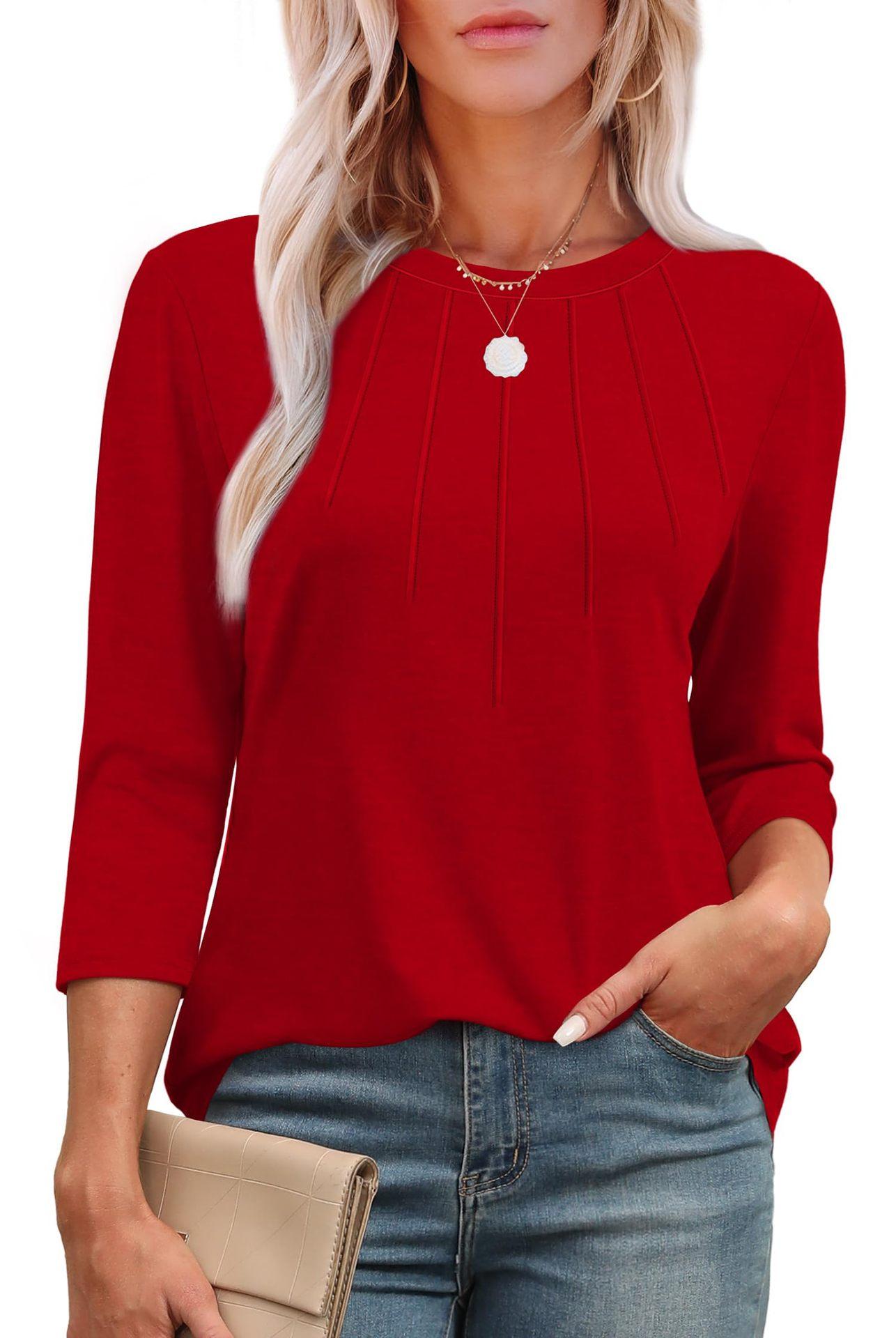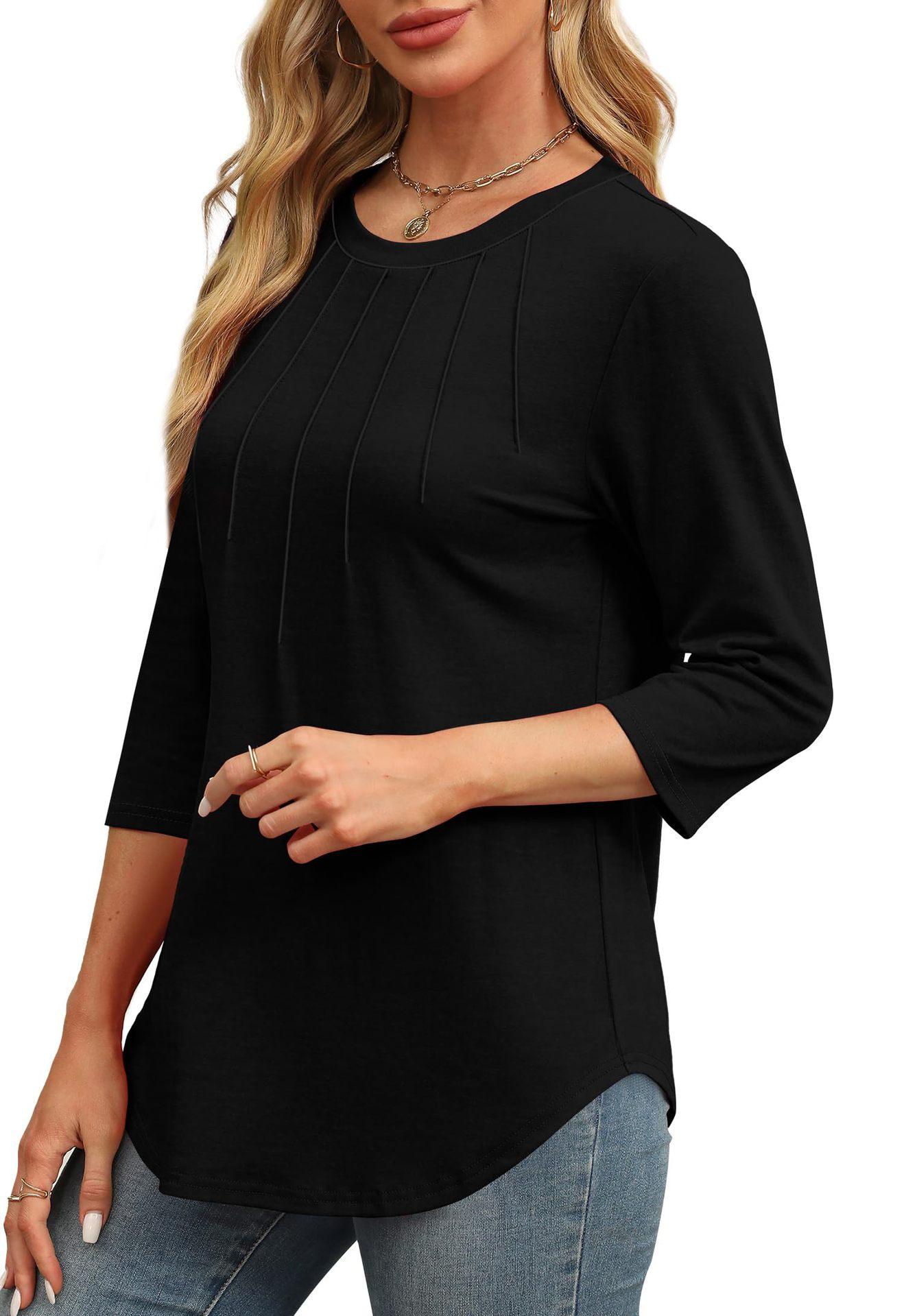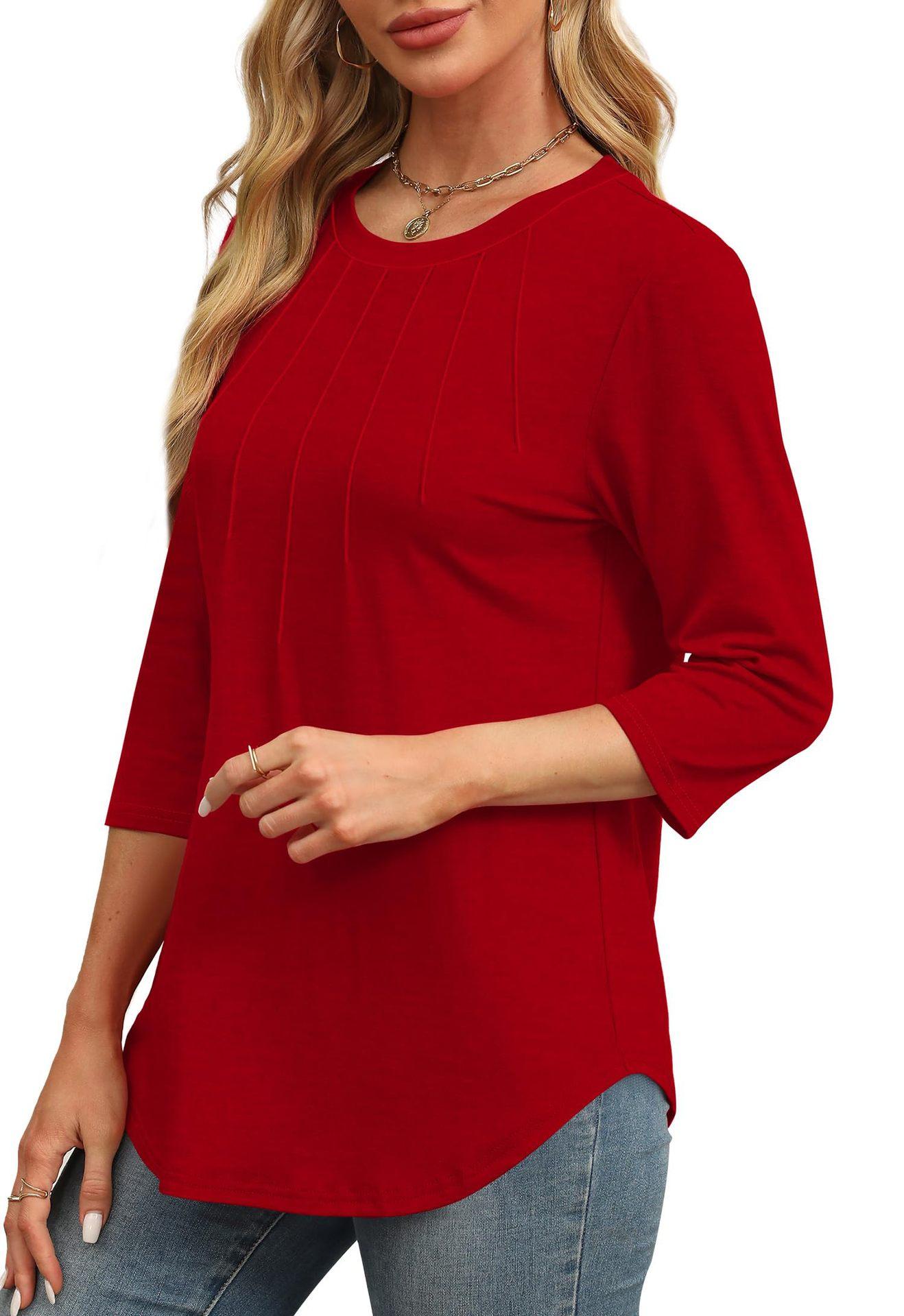 Europeo y Americano Transfronterizo TEMU Amazon 2024 Nueva Moda Casual Plisado Cuello Redondo Manga Siete Puntos Top Camiseta Base