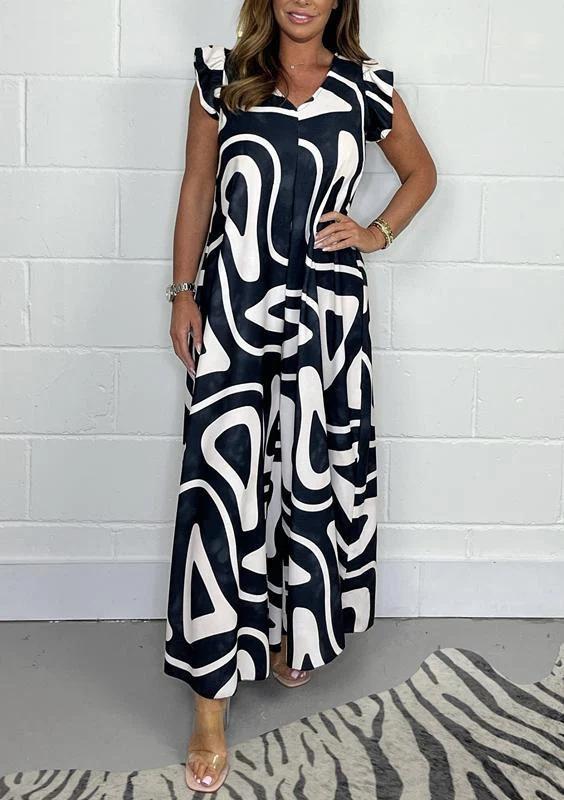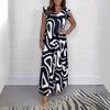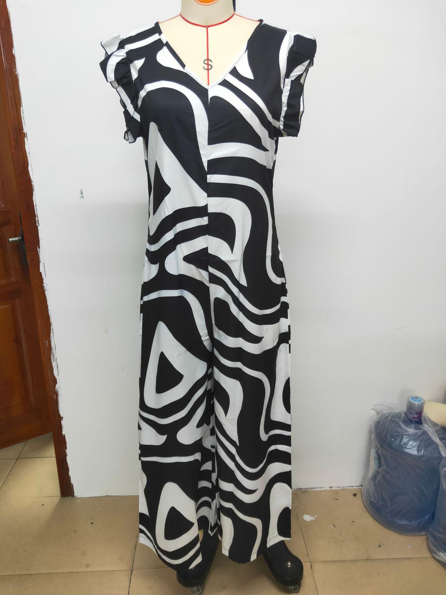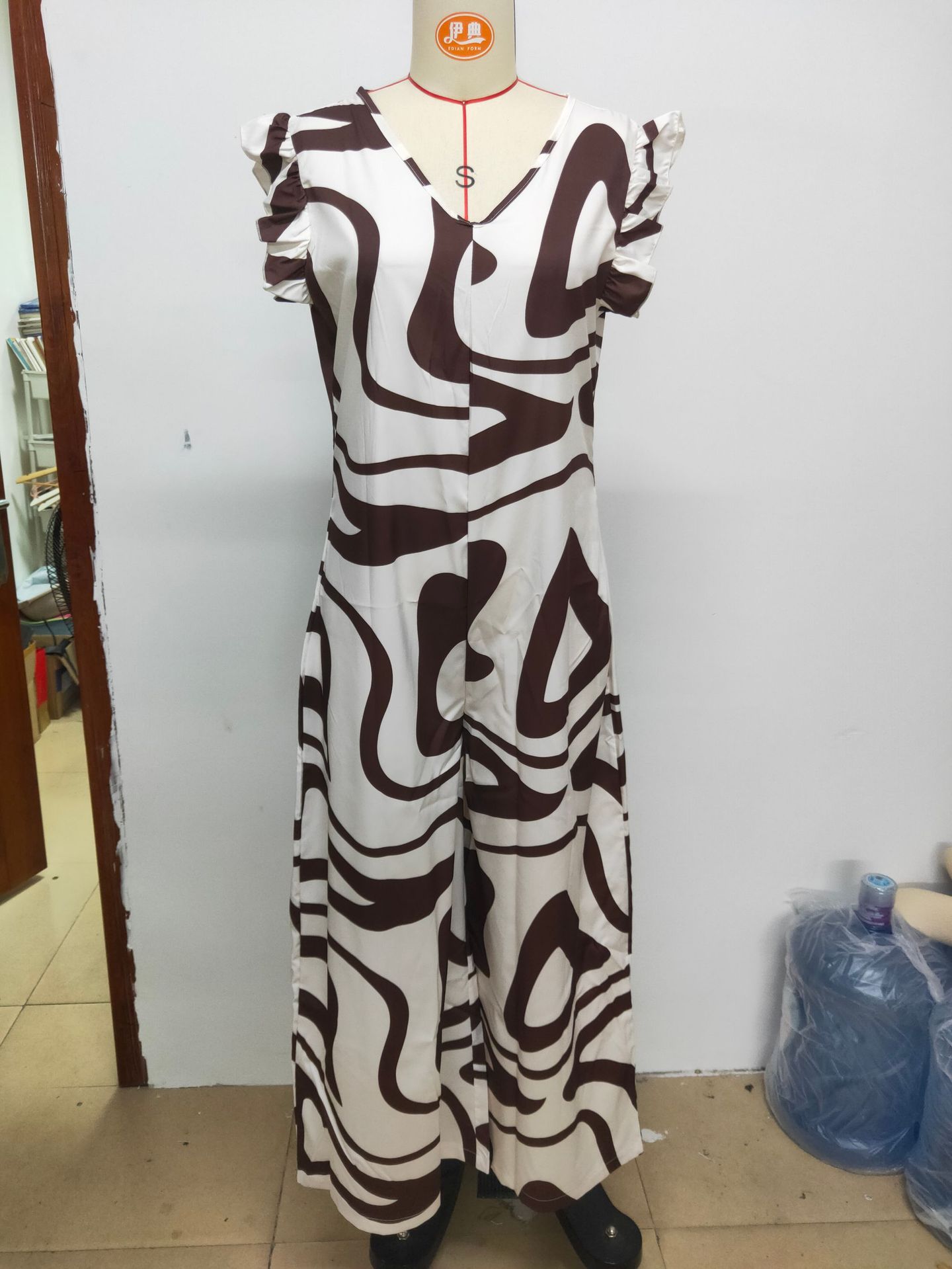 2025 Amazon Verano Nuevo Ropa Europea y Americana Pantalones de Pierna Ancha con Volantes y Cordones Monos Casuales Estampados para Mujer