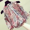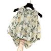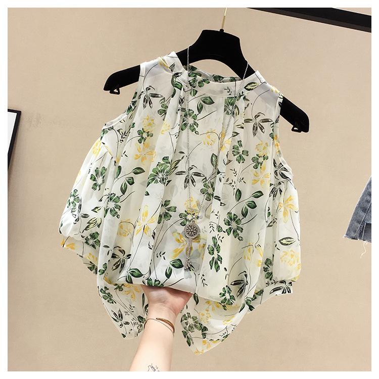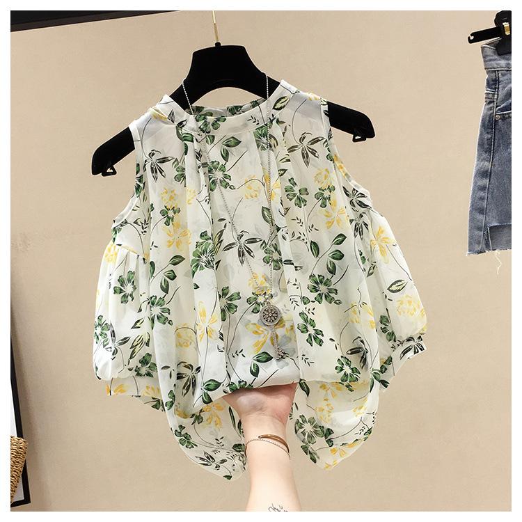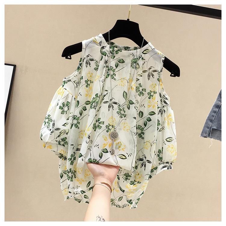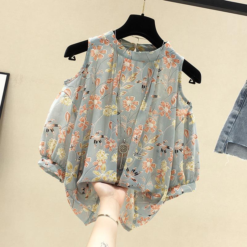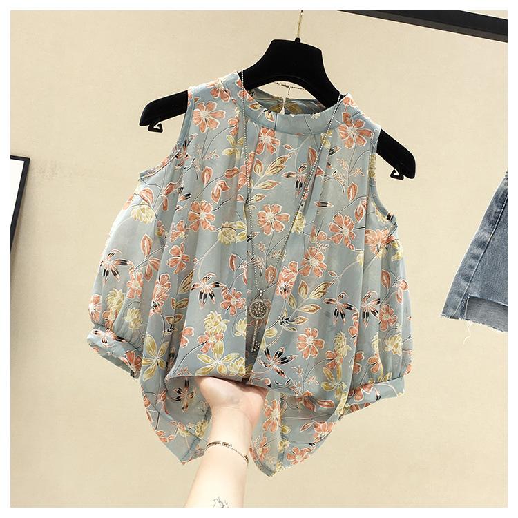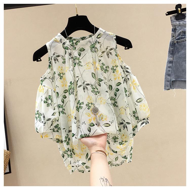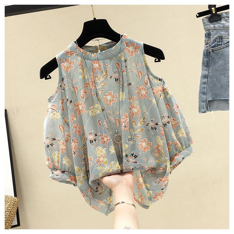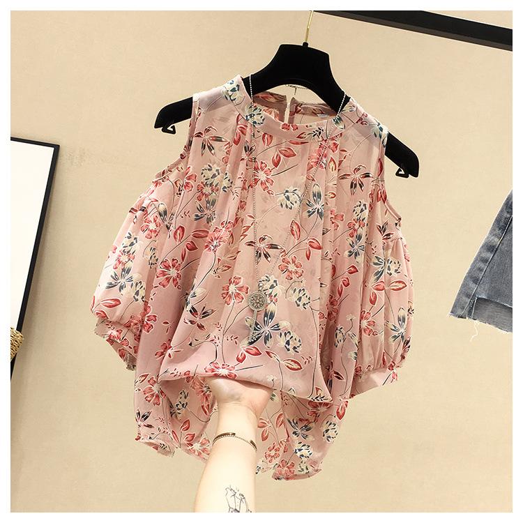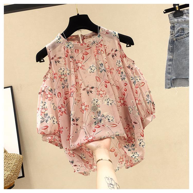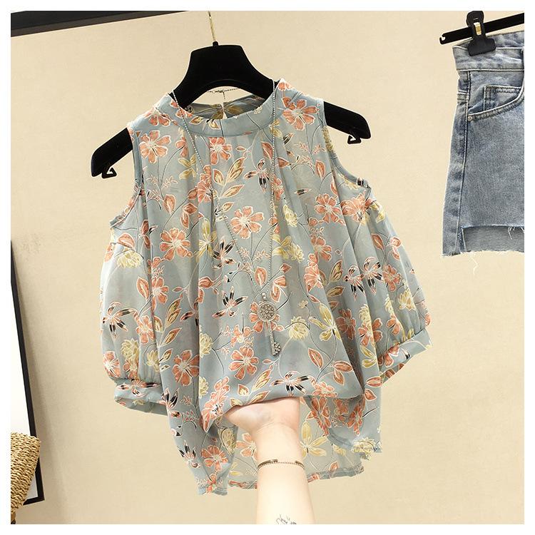 Camisa de Chifón de Verano de Manga Corta para Mujeres de Talla Grande, Top Floral con Hombros Descubiertos, Camisa de Moda Adelgazante que Cubre el Vientre