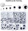 764 piezas Ojos Googly Negros Autoadhesivos, 4mm 6mm 8mm 10mm 12mm 15mm 20mm Ojos Googly Grandes y Pequeños para Manualidades