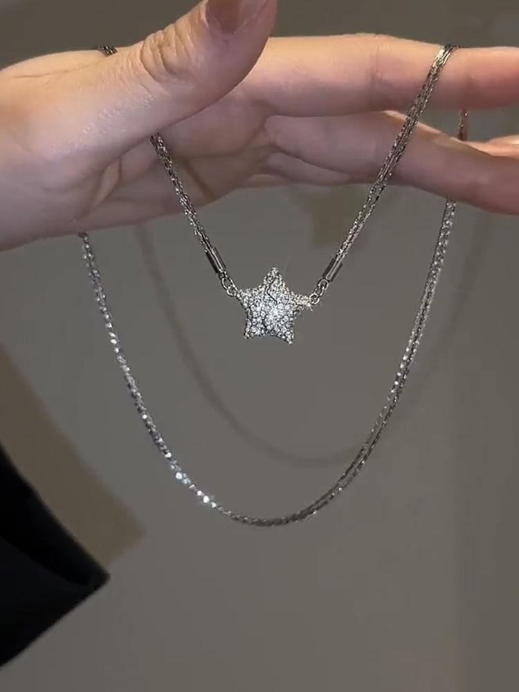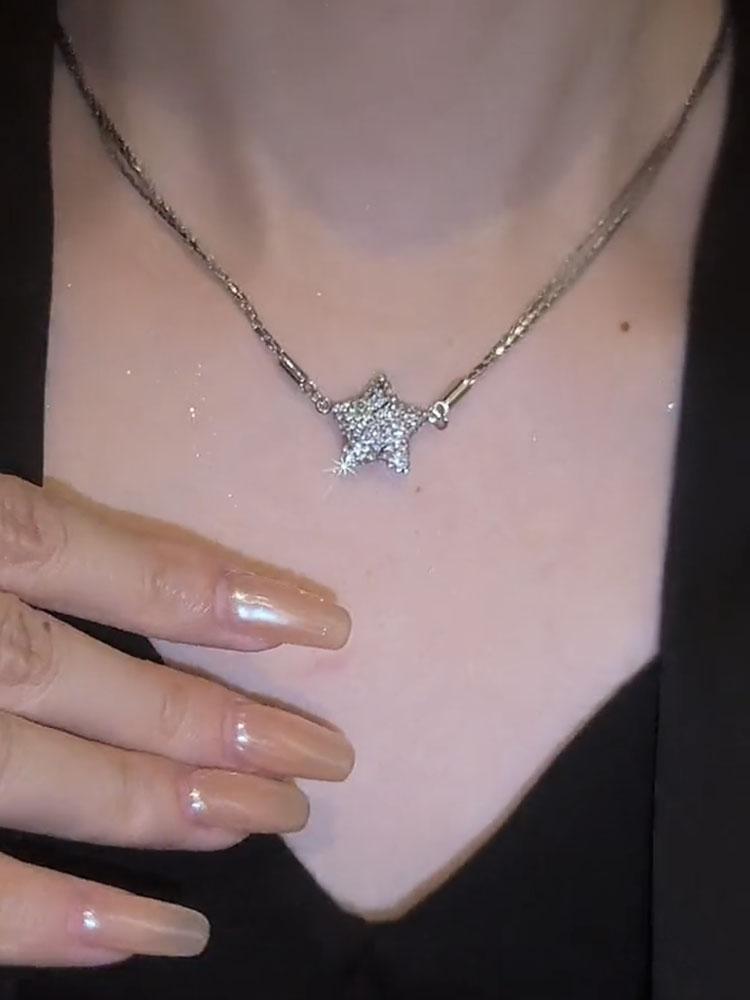 Exquisito Collar Magnético Multicapa de Estrella de Cinco Puntas con Micropavé para Mujer, Elegante, Dulce, Cool, a la Moda, Versátil, de Alta Gama, Cadena para Clavícula
