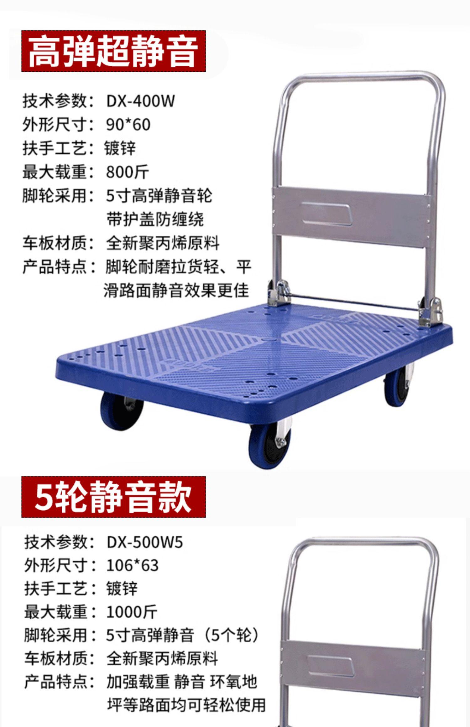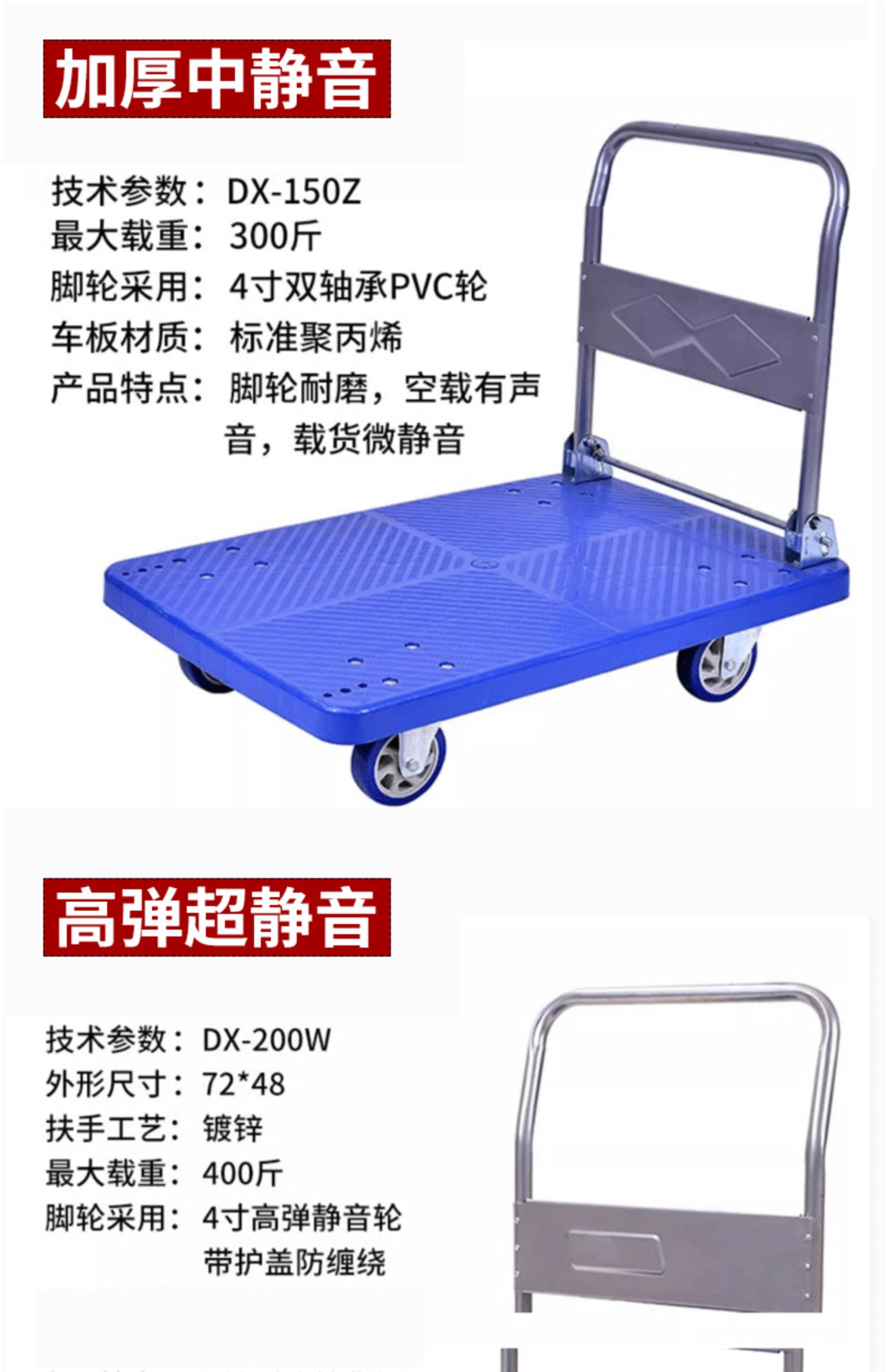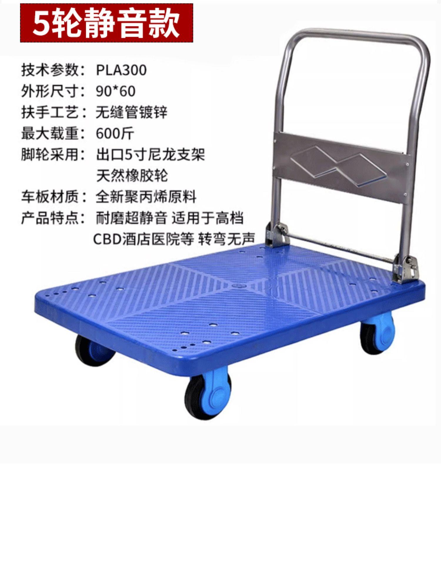 Carretilla de Mano al por Mayor Plegable de Plataforma Plana Carro Remolque Pequeño para Transportar Mercancías, Silencioso Carro Doméstico Grande de 5 Ruedas
