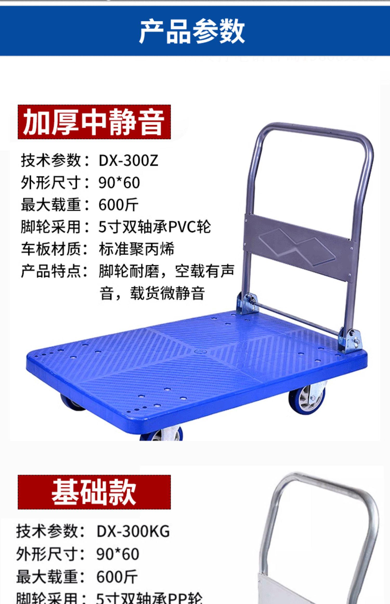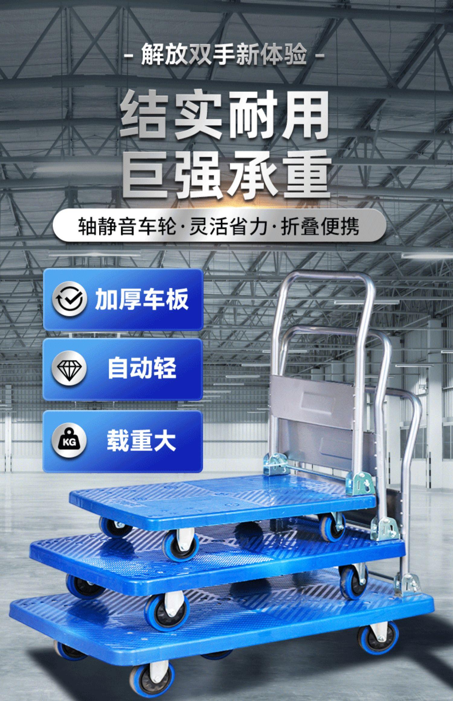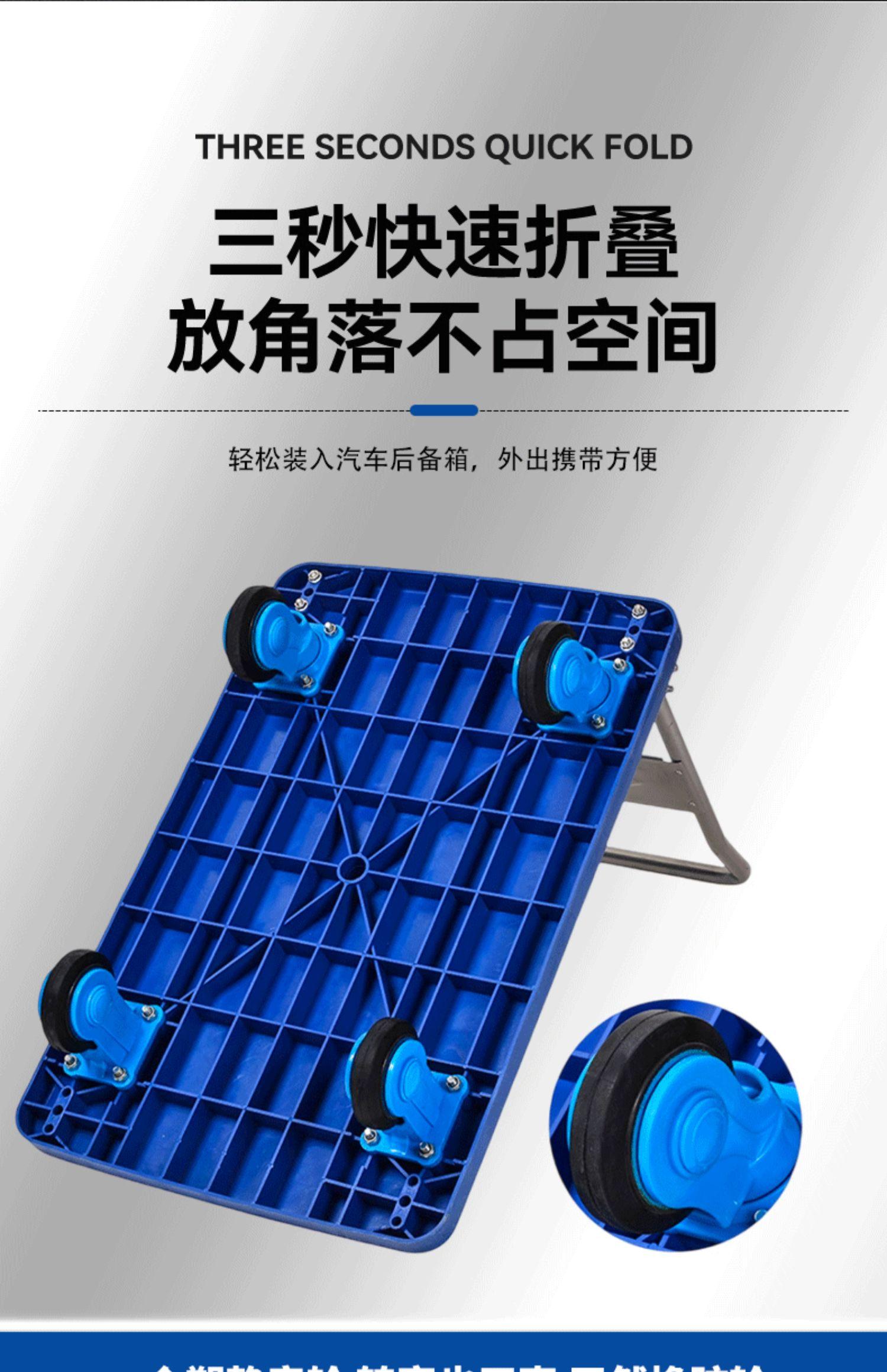 Carretilla de Mano al por Mayor Plegable de Plataforma Plana Carro Remolque Pequeño para Transportar Mercancías, Silencioso Carro Doméstico Grande de 5 Ruedas
