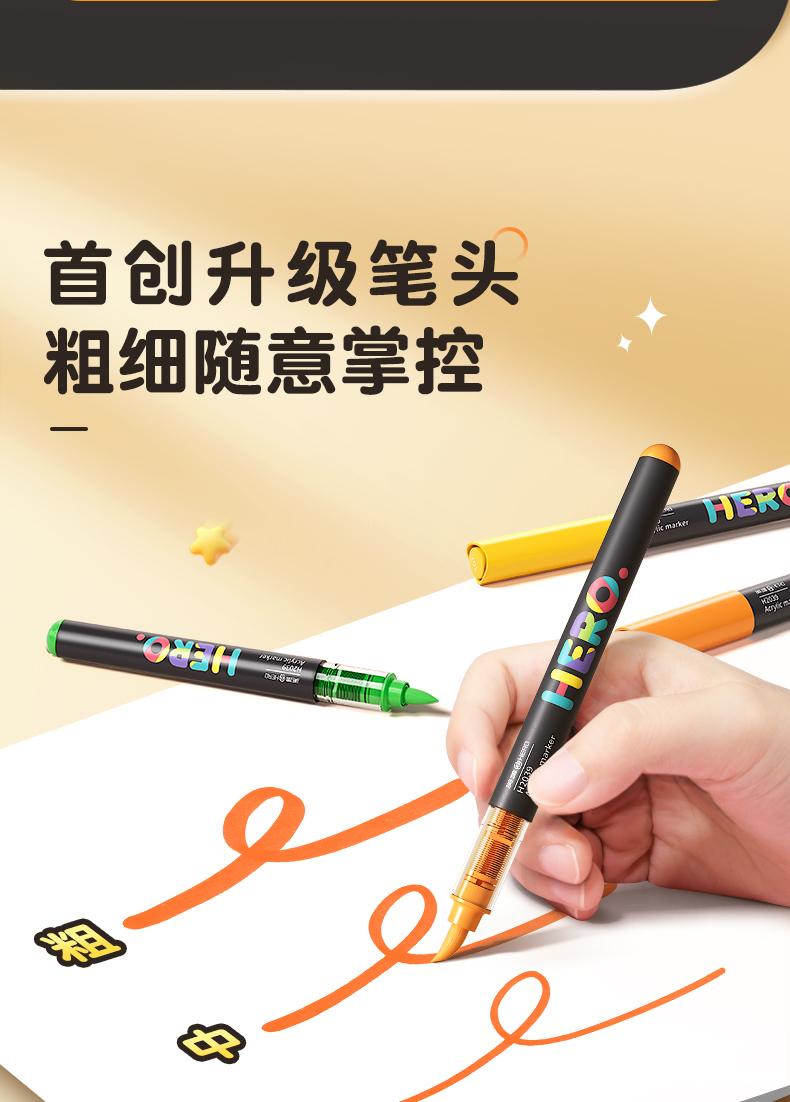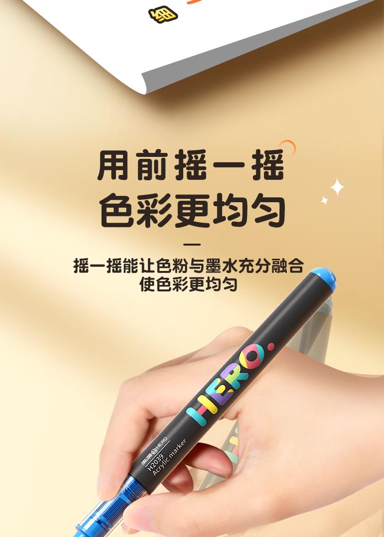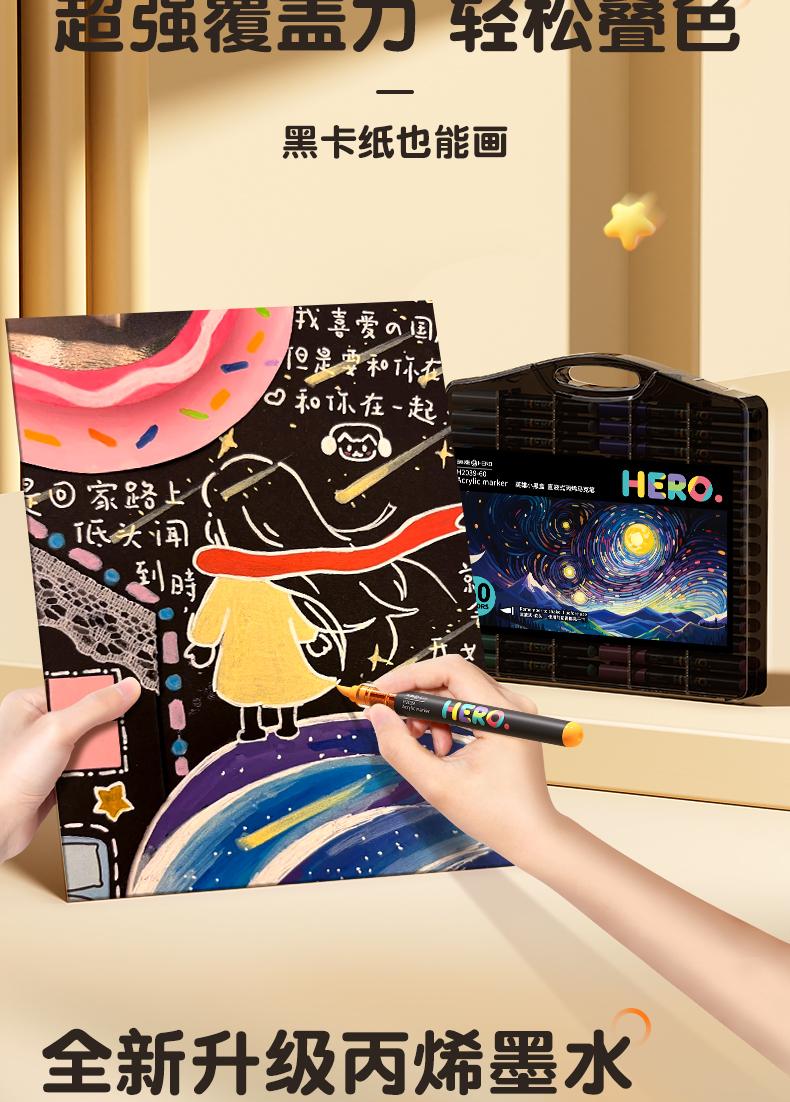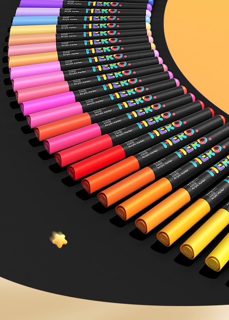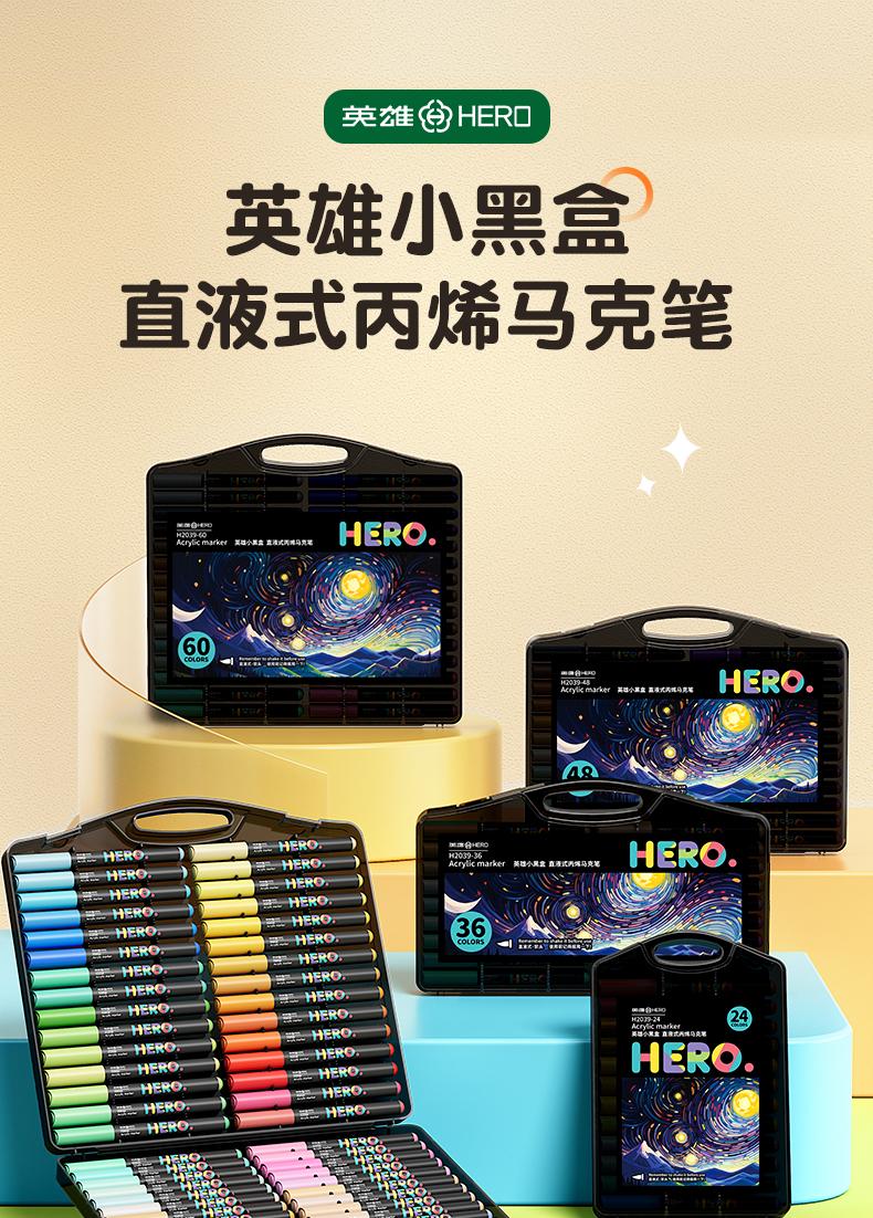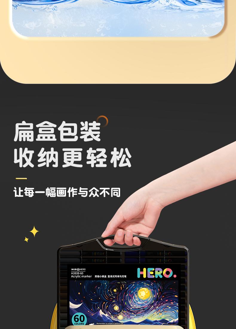 Hero Marcador Acrílico Líquido Directo Caja Negra Pequeña Punta Suave Pluma Acuarela 60 Colores Pluma de Color para Dibujo de Escuela Primaria y Jardín de Niños