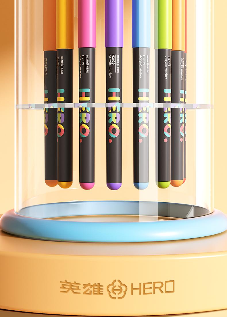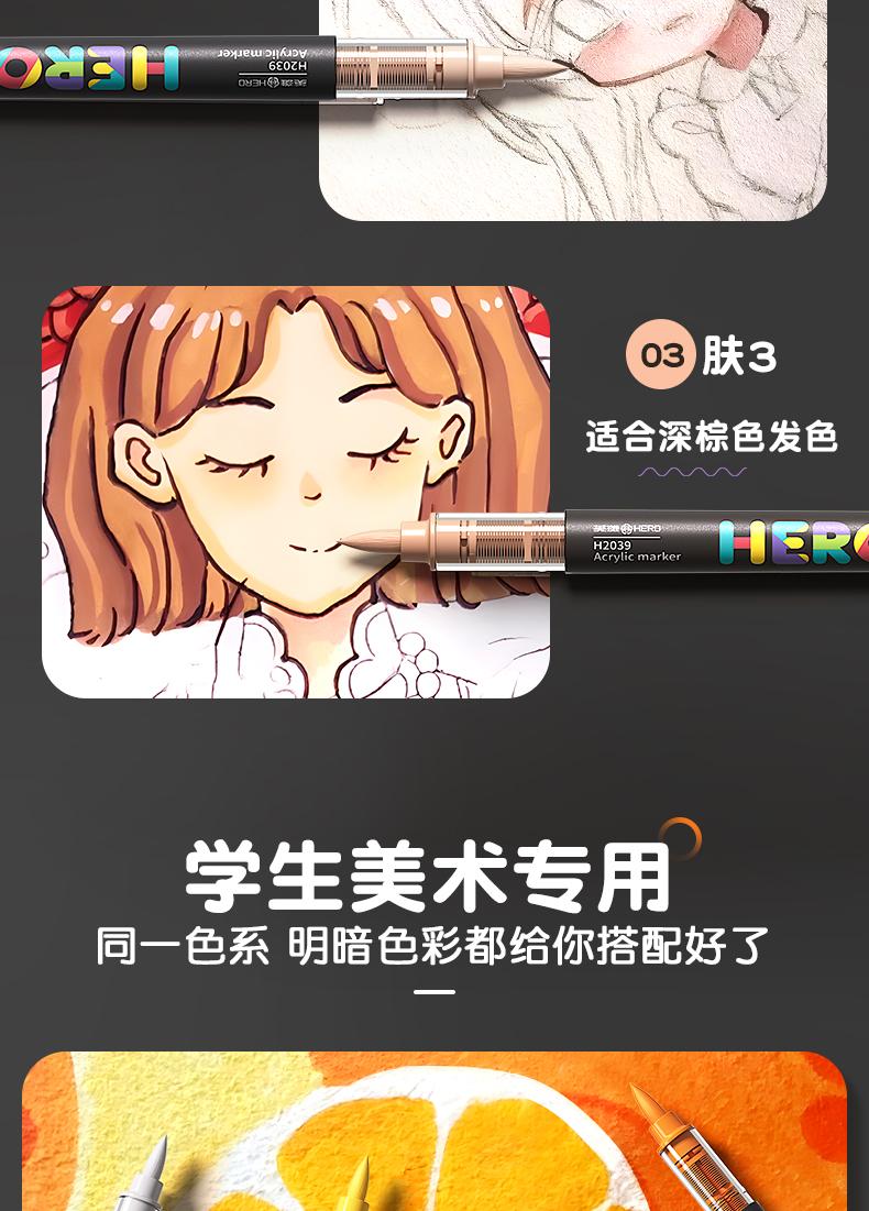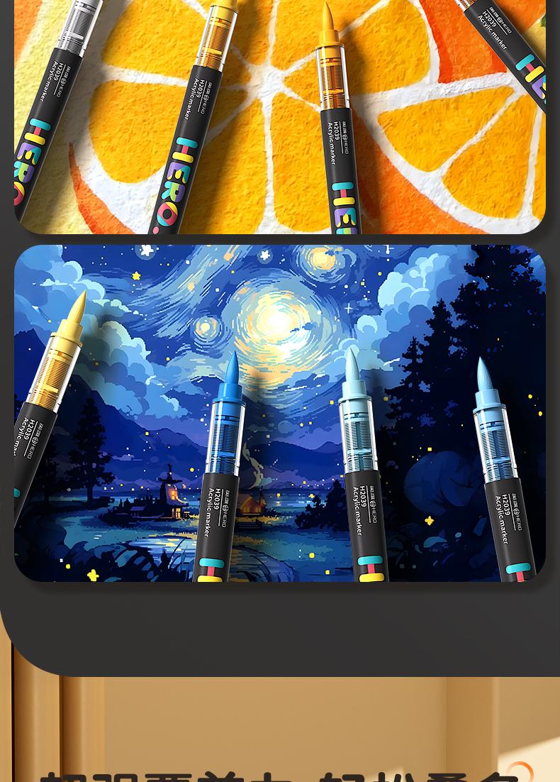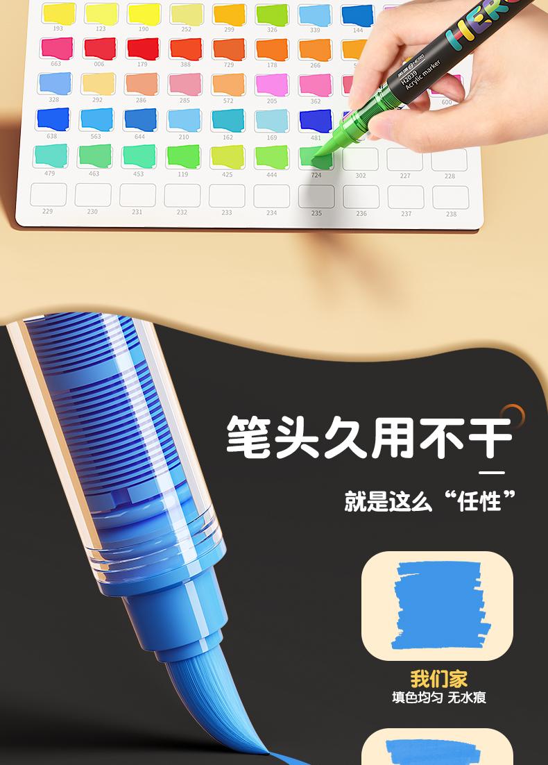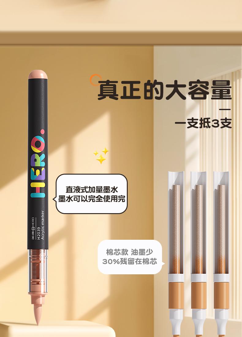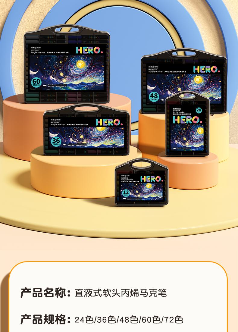Hero Marcador Acrílico Líquido Directo Caja Negra Pequeña Punta Suave Pluma Acuarela 60 Colores Pluma de Color para Dibujo de Escuela Primaria y Jardín de Niños