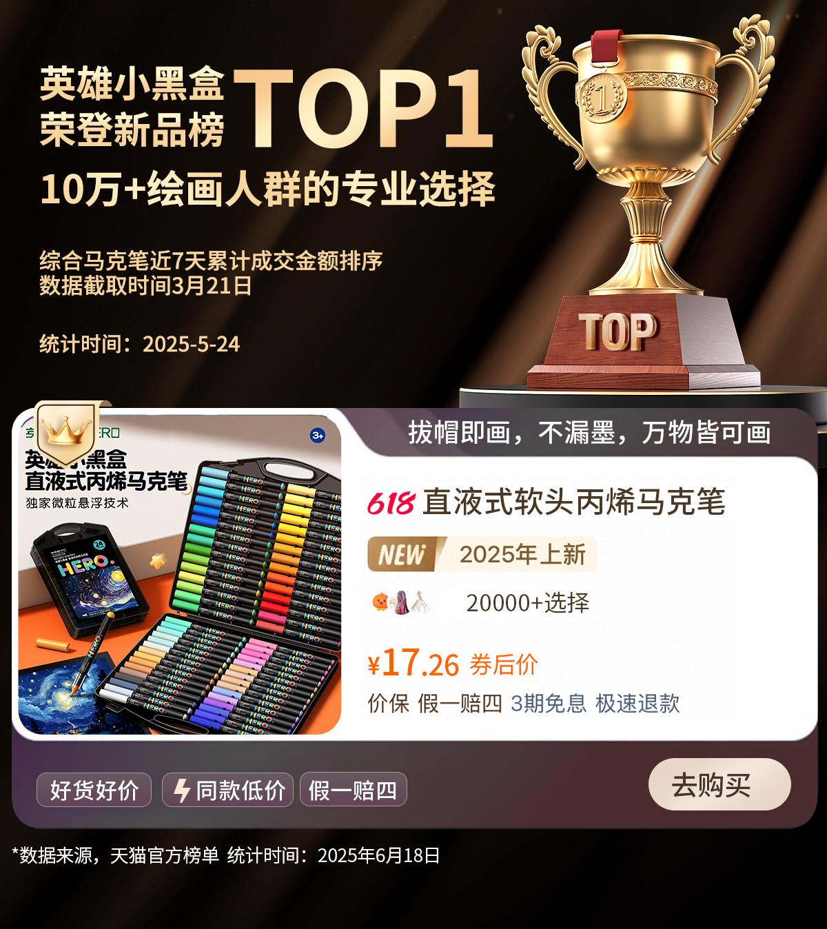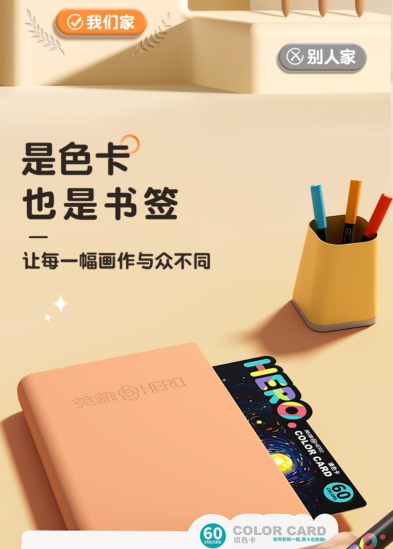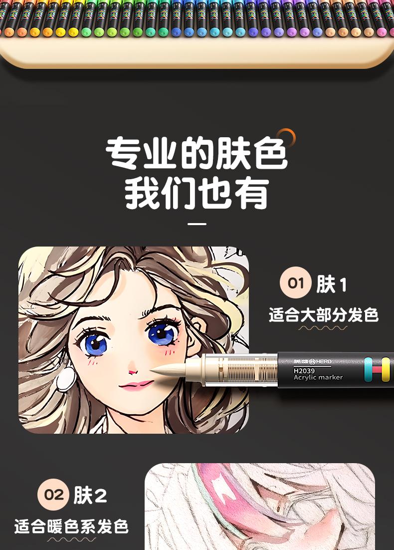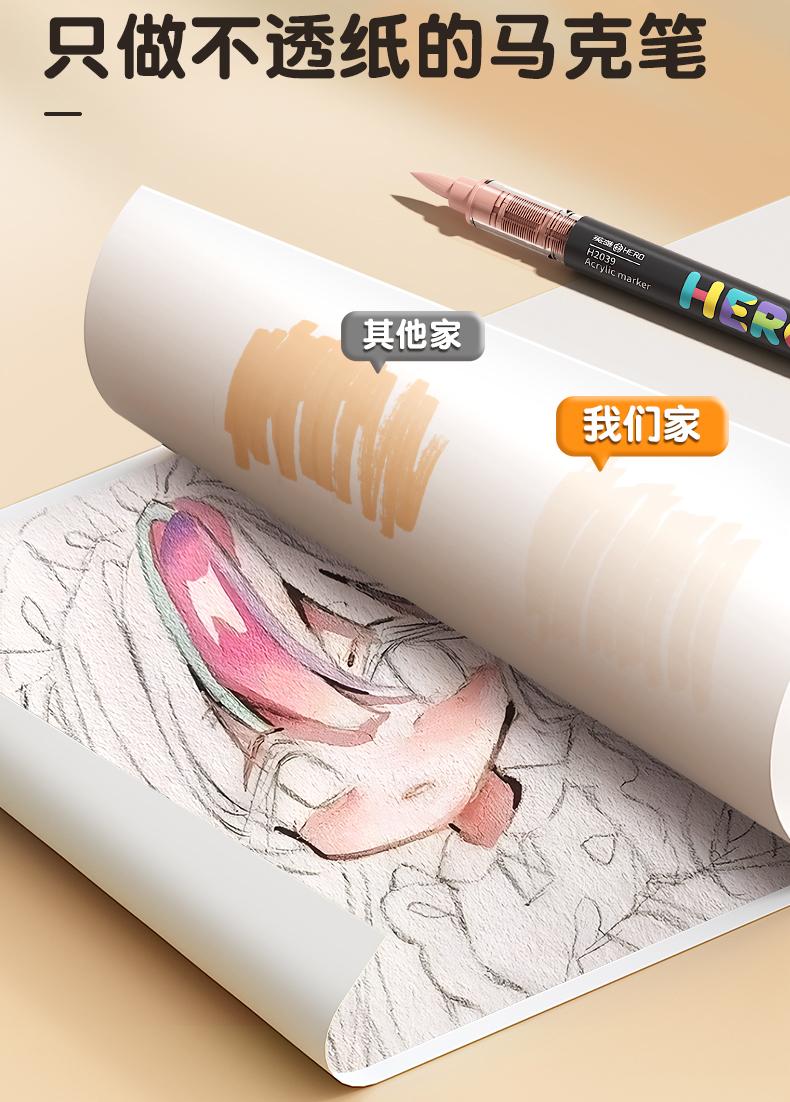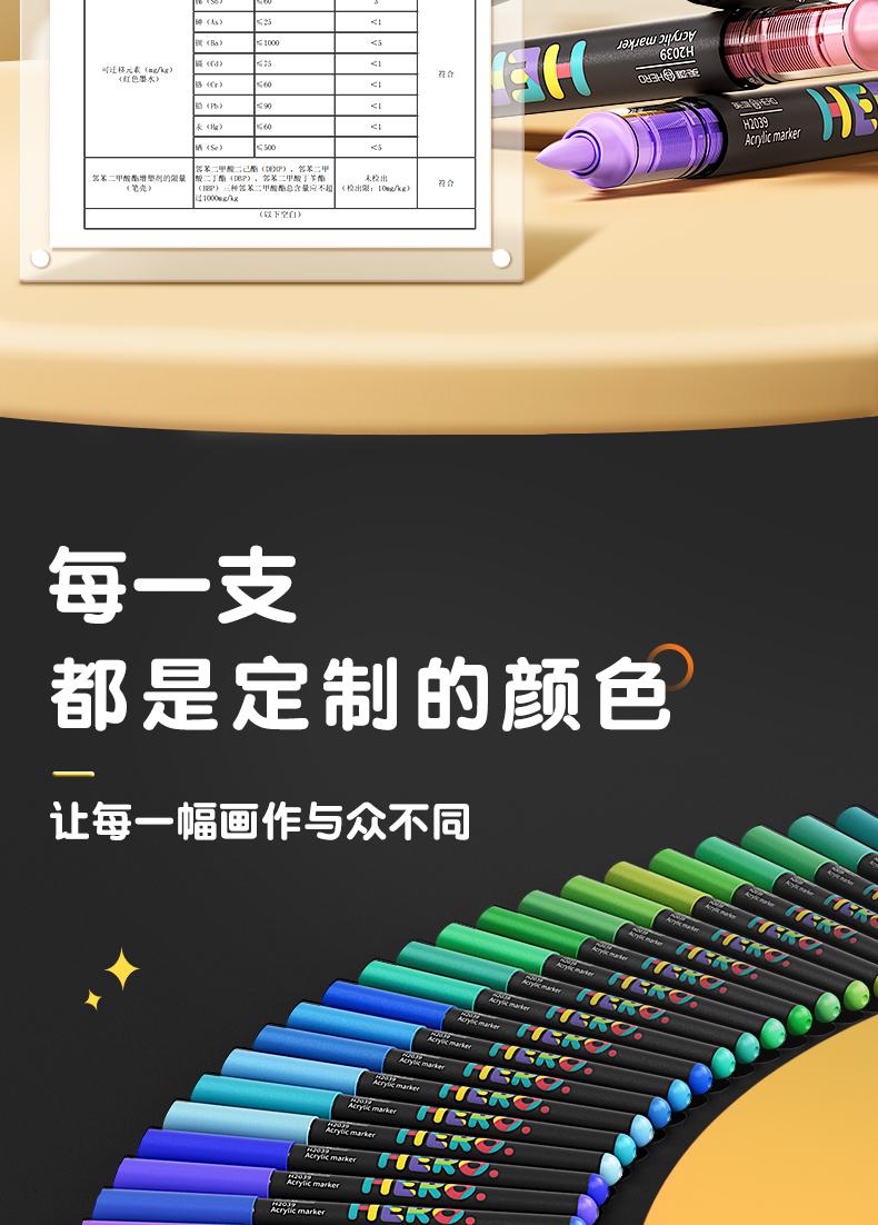 Hero Marcador Acrílico Líquido Directo Caja Negra Pequeña Punta Suave Pluma Acuarela 60 Colores Pluma de Color para Dibujo de Escuela Primaria y Jardín de Niños